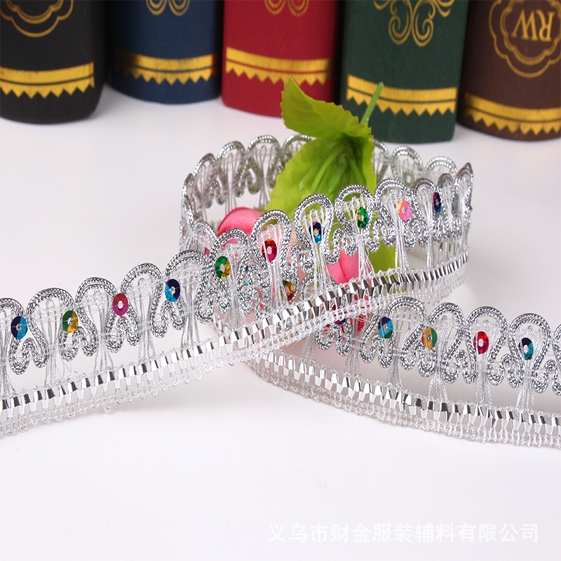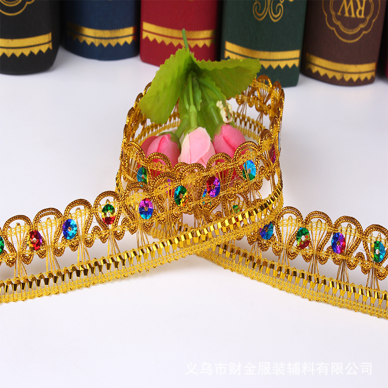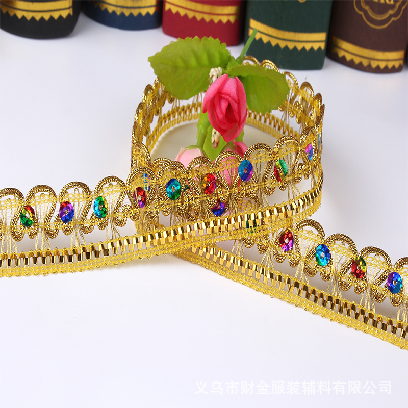 厂家爆款皇冠金银丝花边 环保服装辅料亮片花边 舞台配饰金色花边
