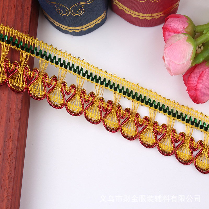 厂家新款金银丝波浪花边 民族风金色花边 窗帘服装辅料彩色花边