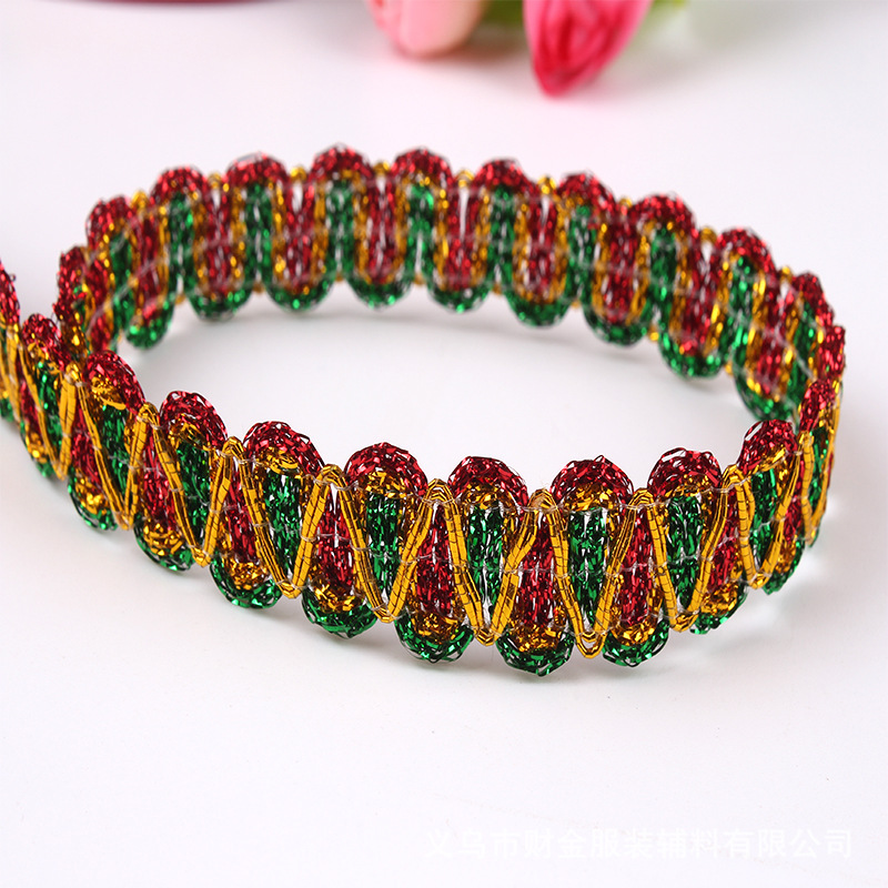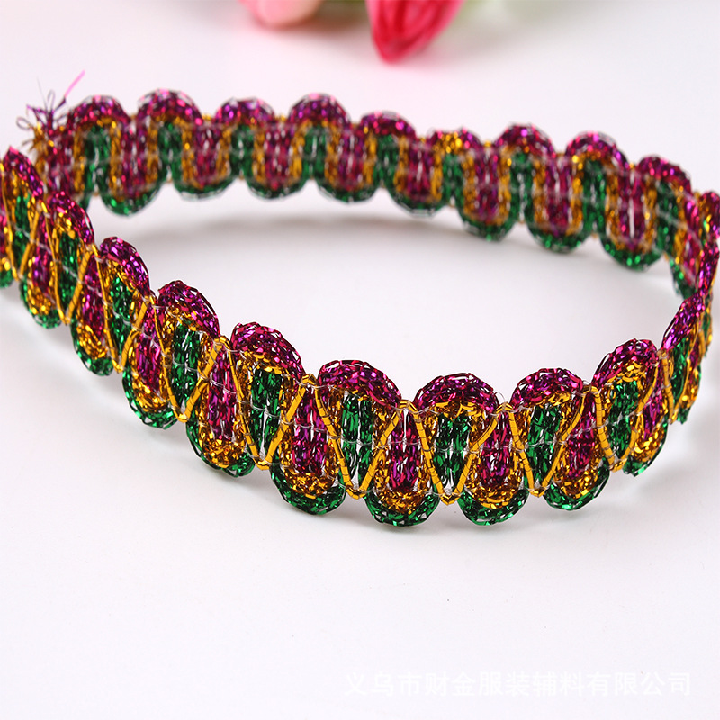 义乌财金辅料批发金色花边 金银丝花边 民族风服装辅料波浪花边