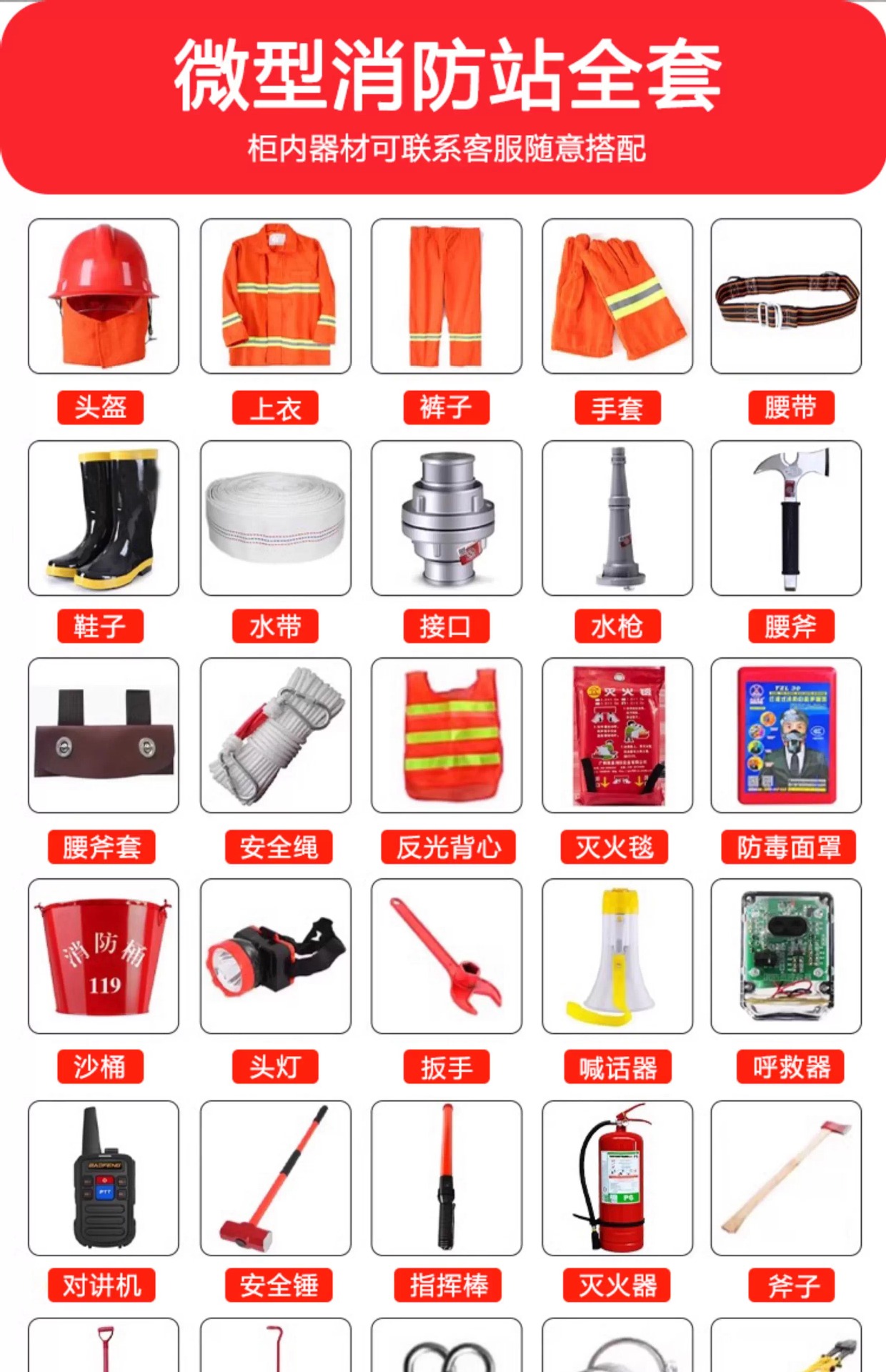 소형 소방서 소방 장비 풀 세트 두꺼운 세트 비상 소방 도구 용품 캐비닛 디스플레이 캐비닛 소방 캐비닛