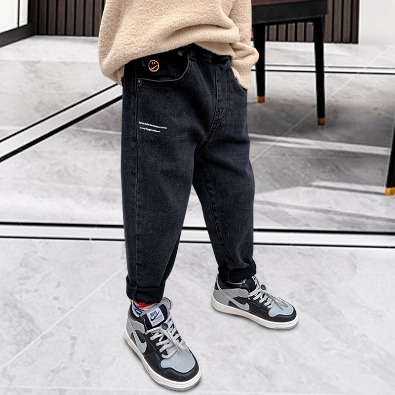 남아용 청바지 2025 봄 신상 유행 아동 바지 가을 겨울 일체형 벨벳 한국 스타일 블랙 캐주얼 긴바지스토어 가기