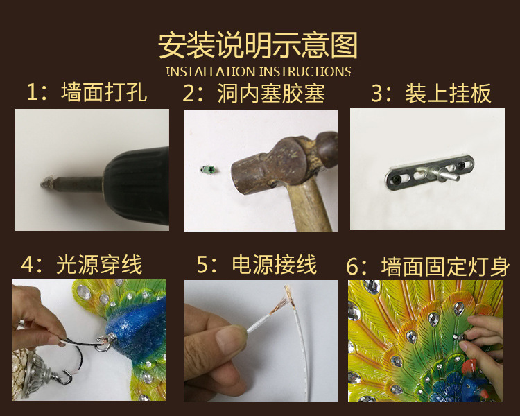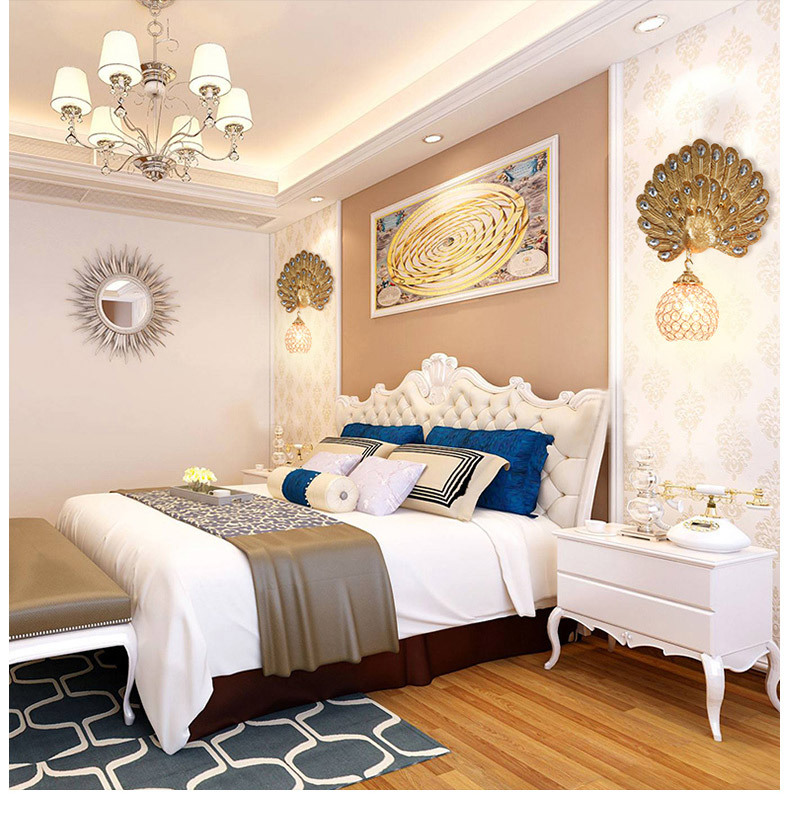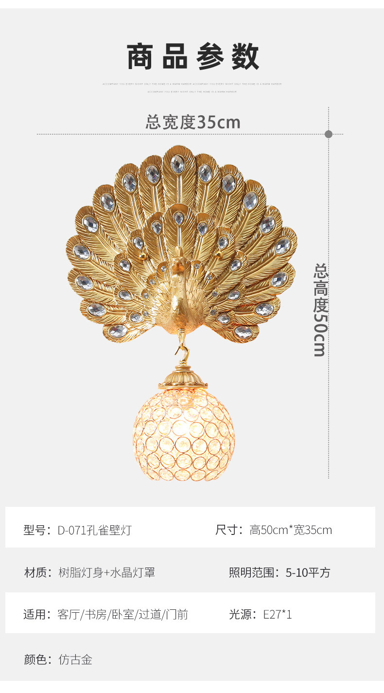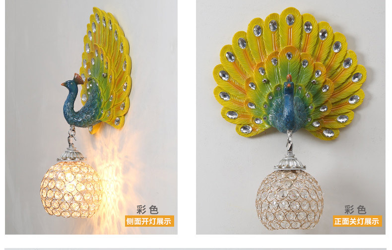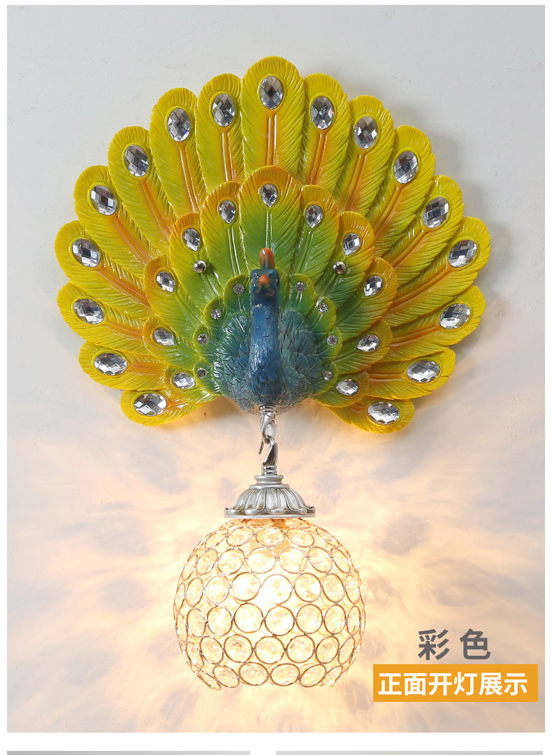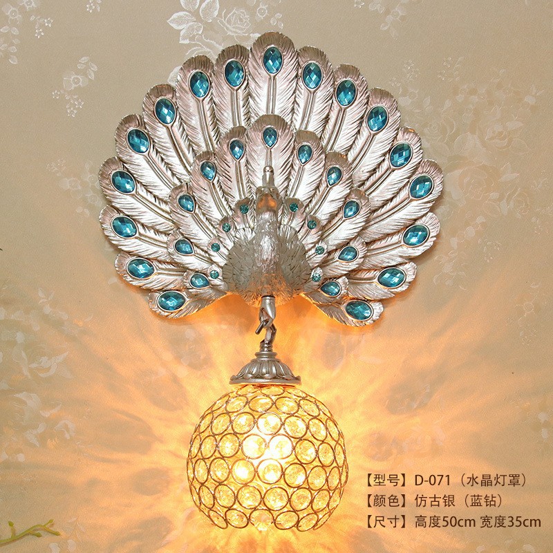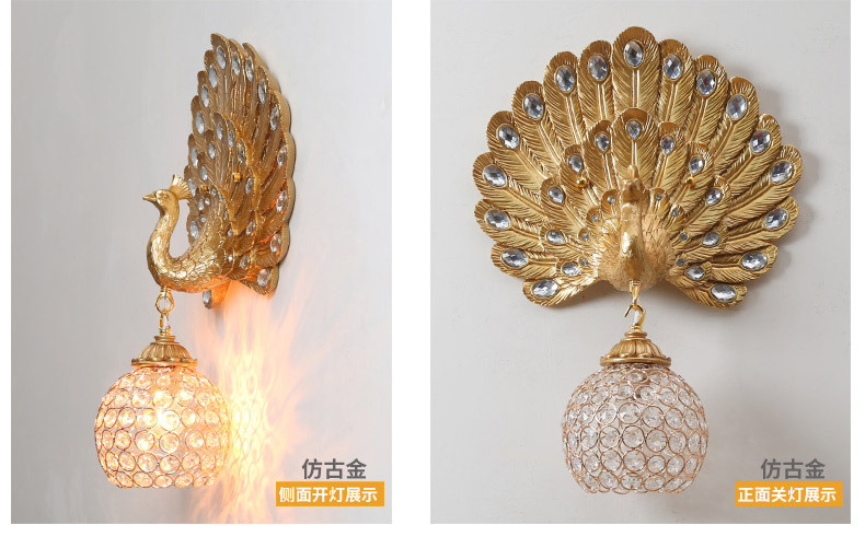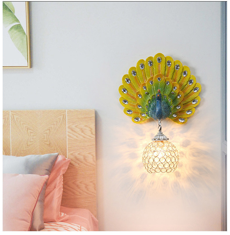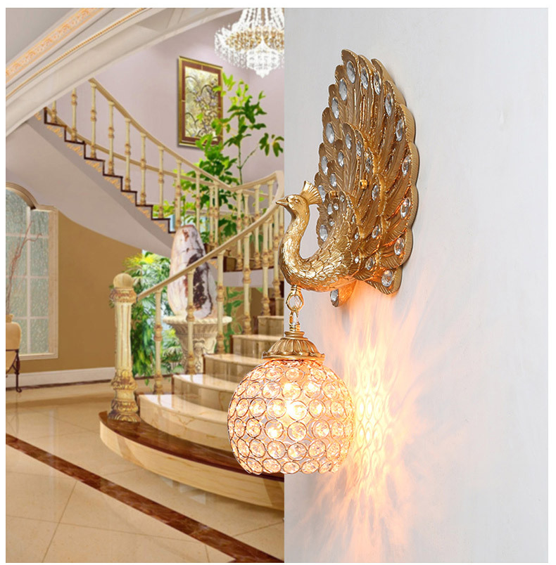 유럽식 복고풍 창조적 인 크리스탈 공작 모양 벽 램프 거실 배경 벽 침대 옆 계단 통로 침실 침대 옆 램프