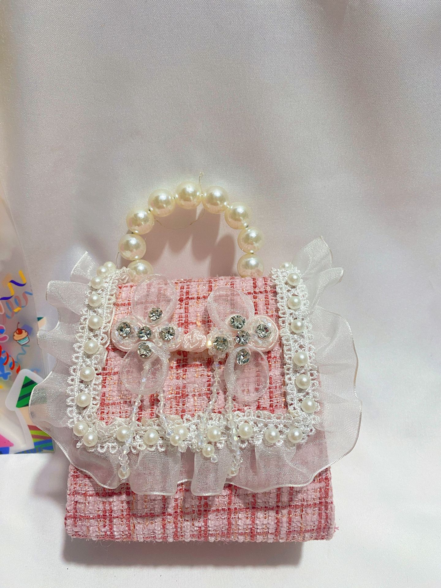 • 빨간색 체크무늬 진주 리본