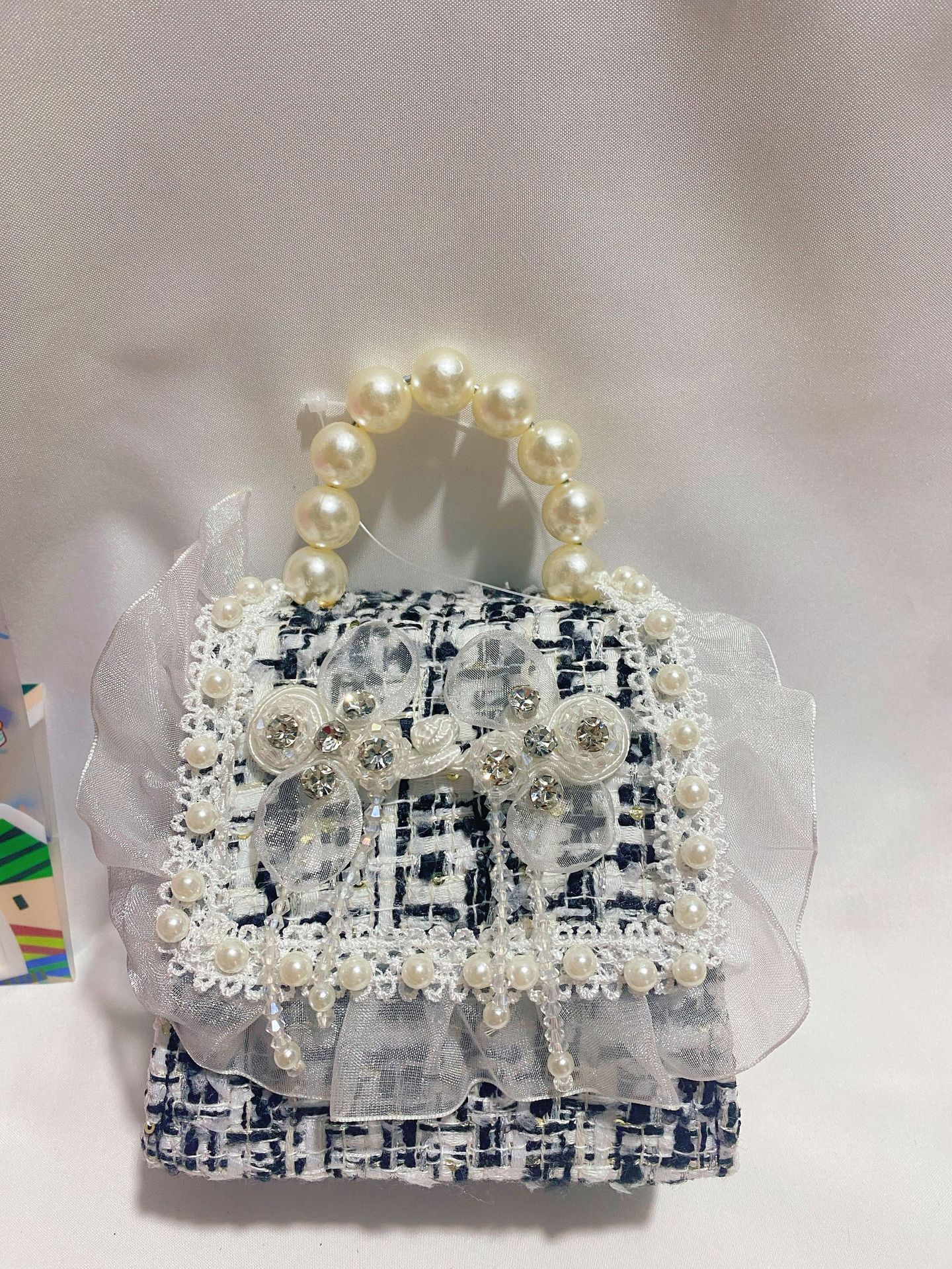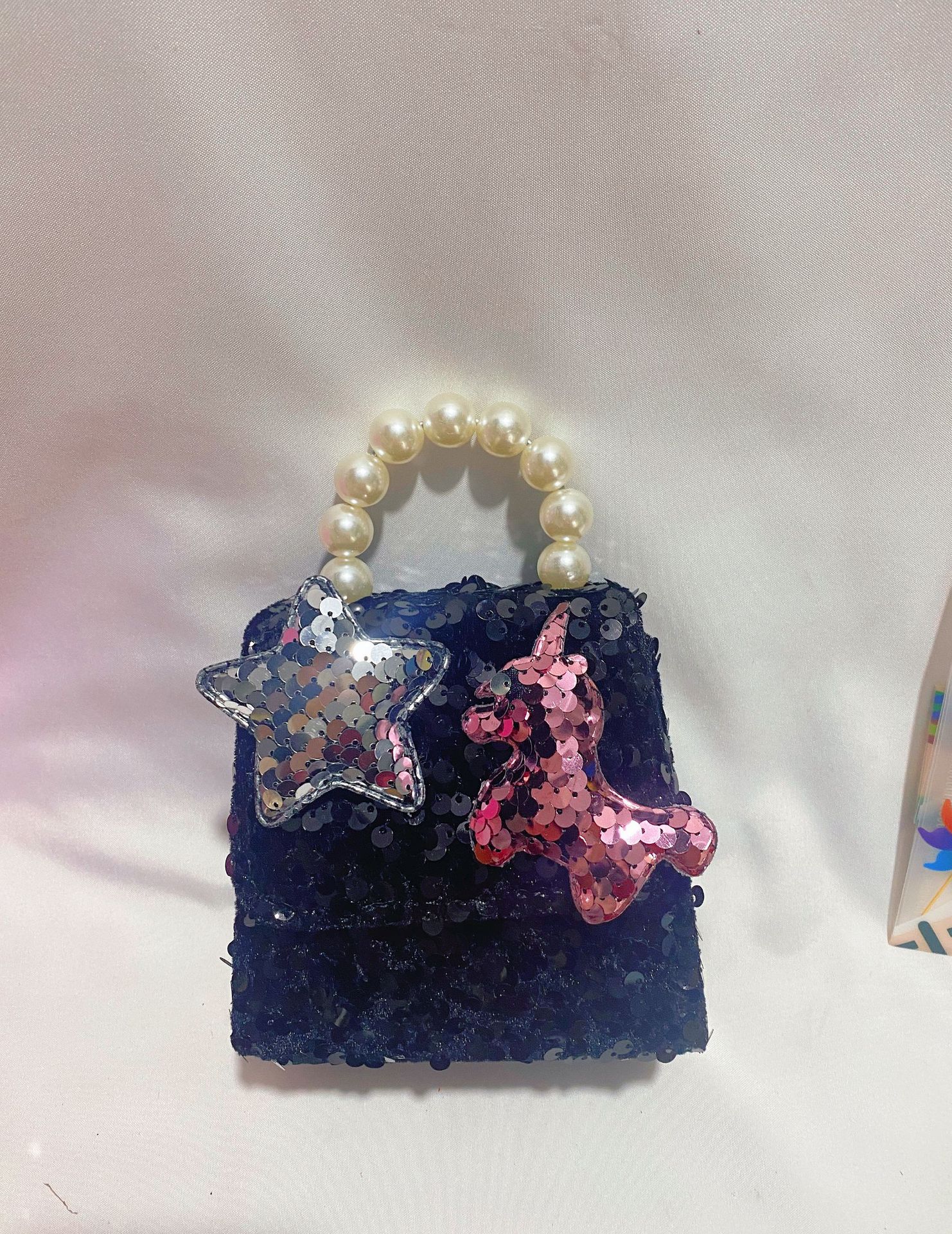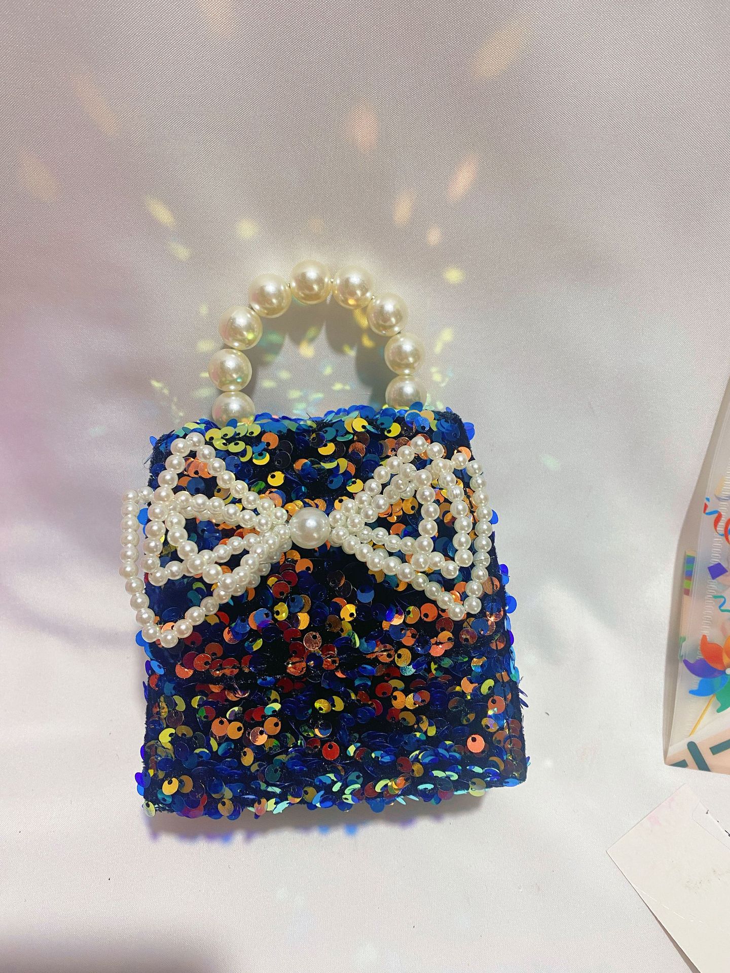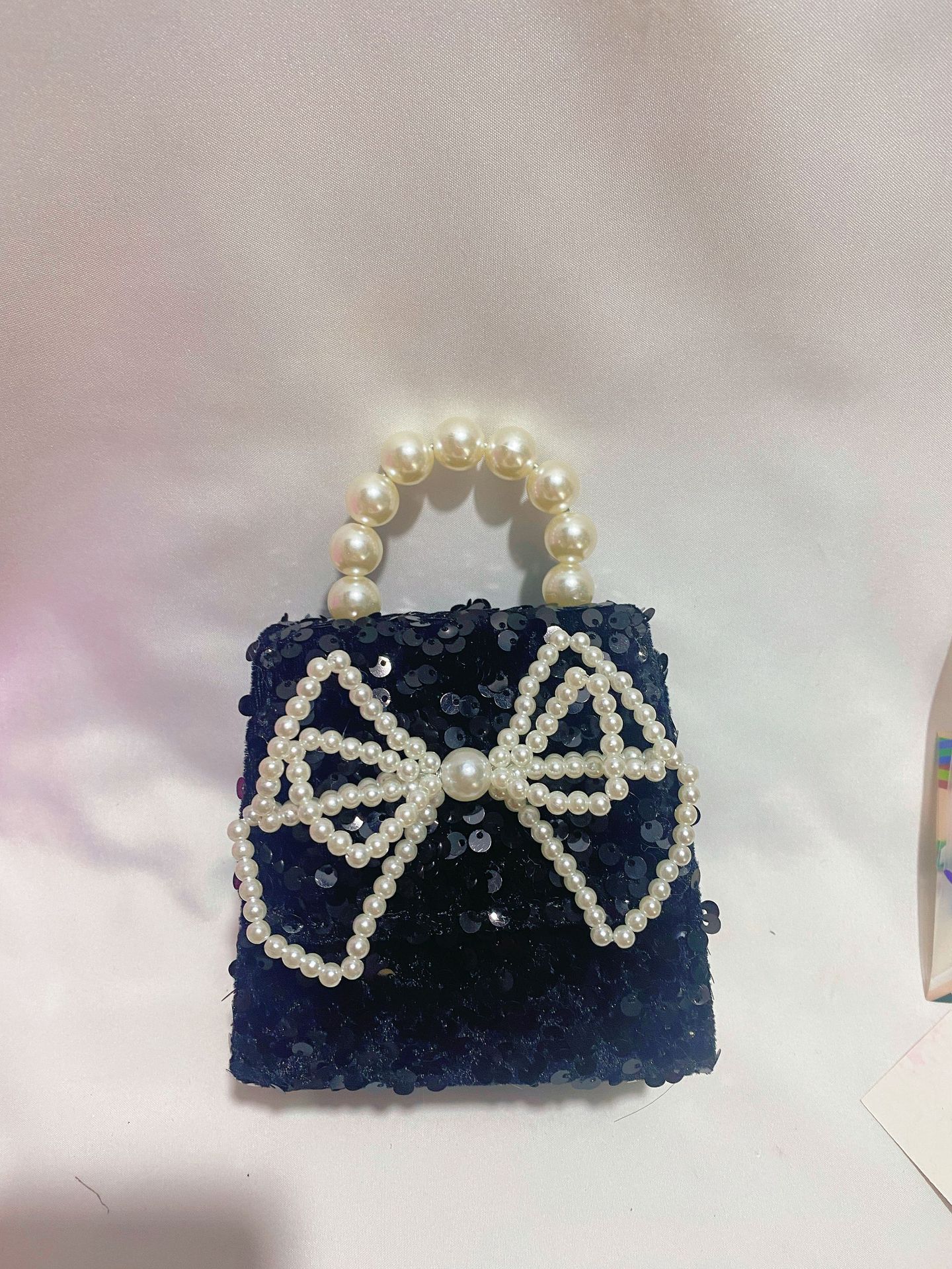 • 네이비 블루 진주 리본 스팽글 스타일