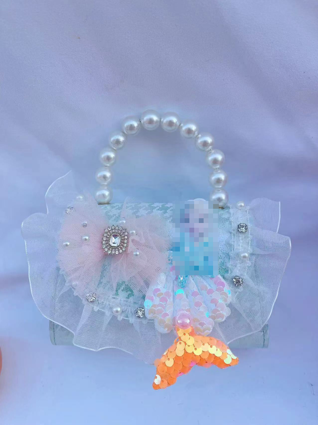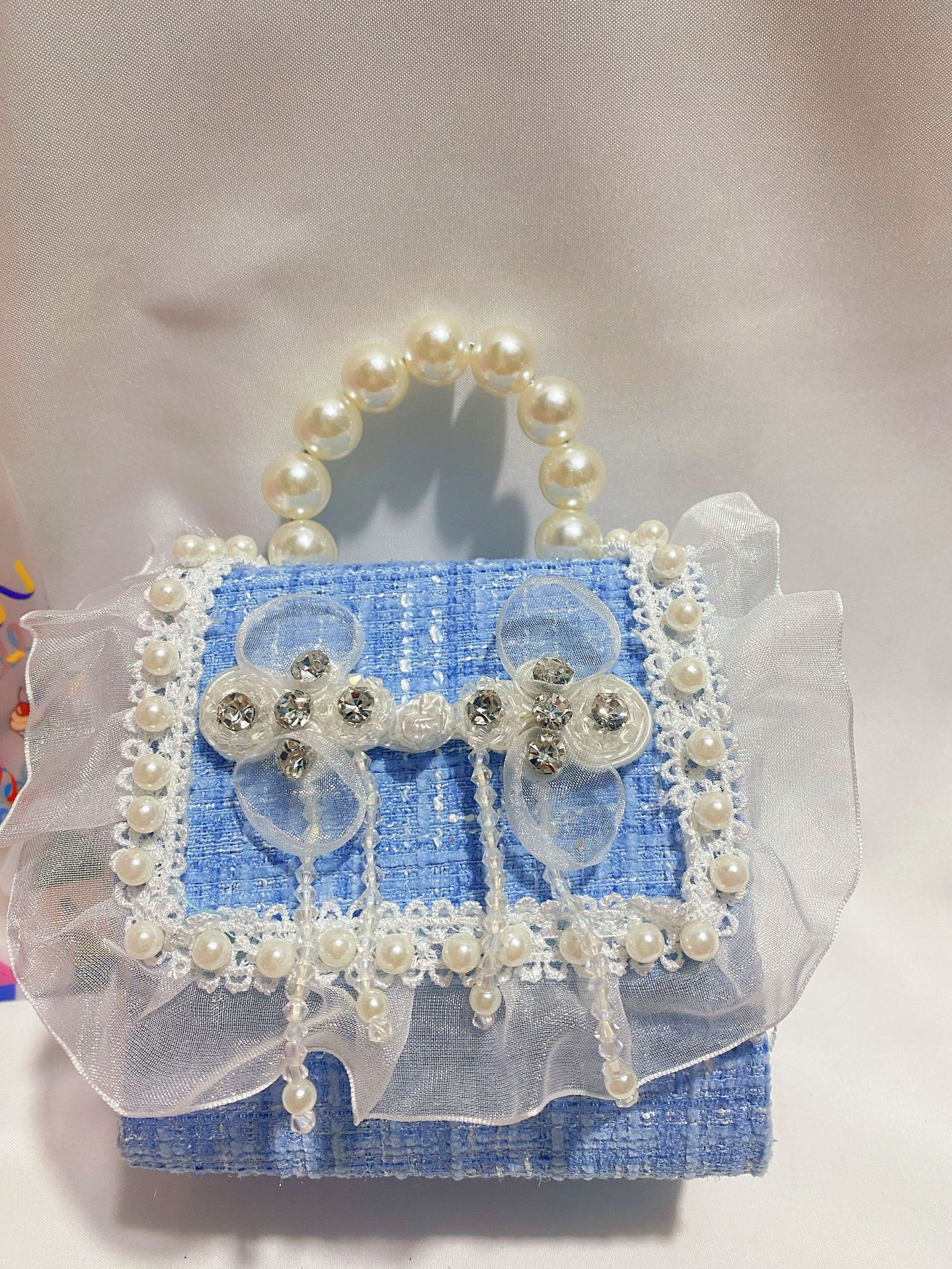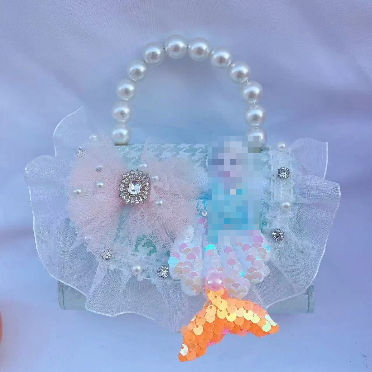 • 화려한 블루 펄 리본 스팽글 스타일