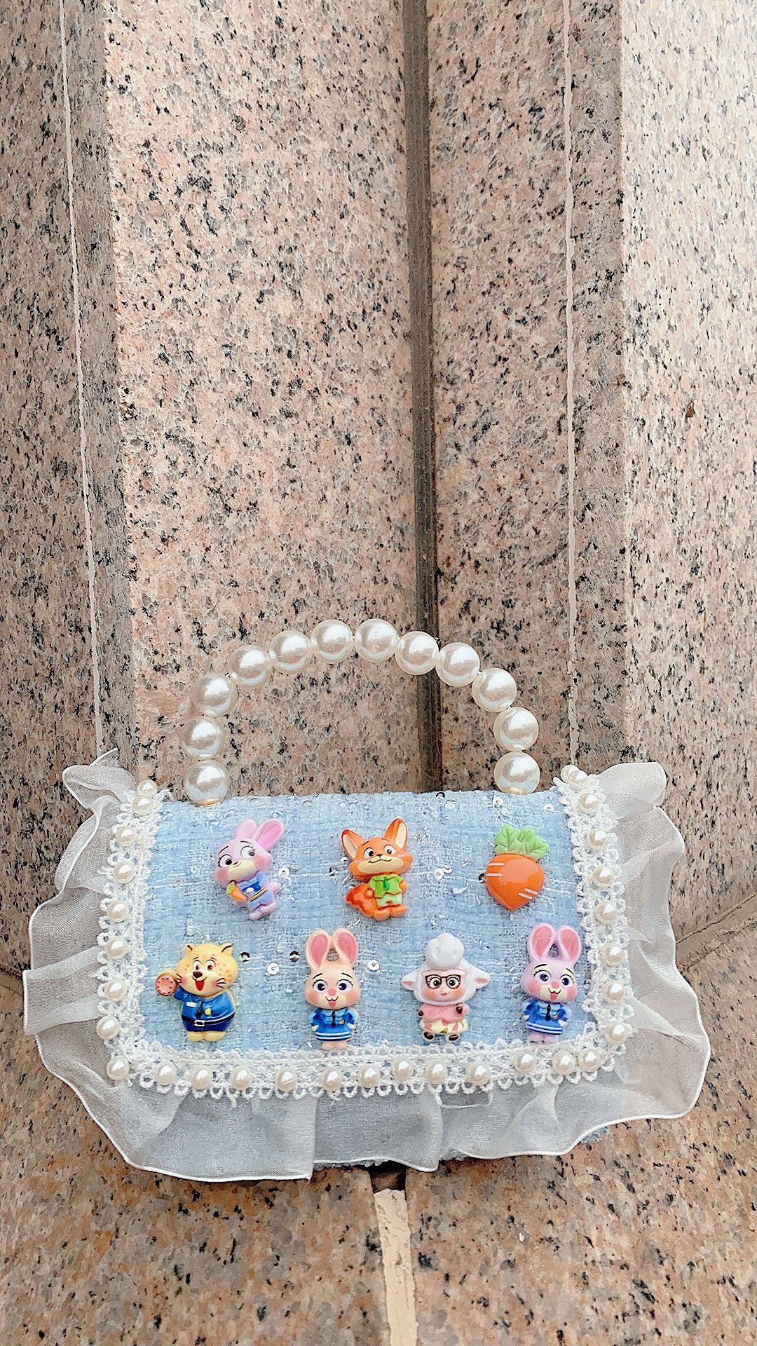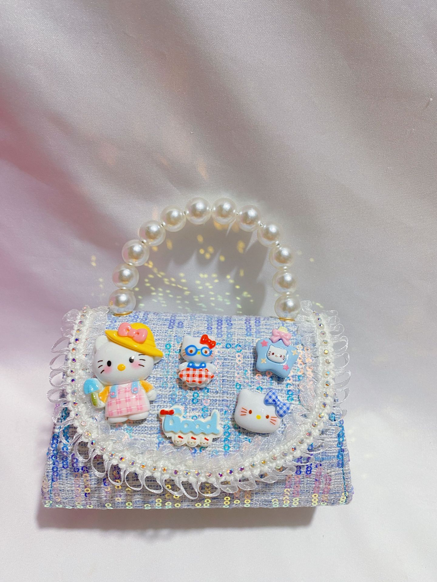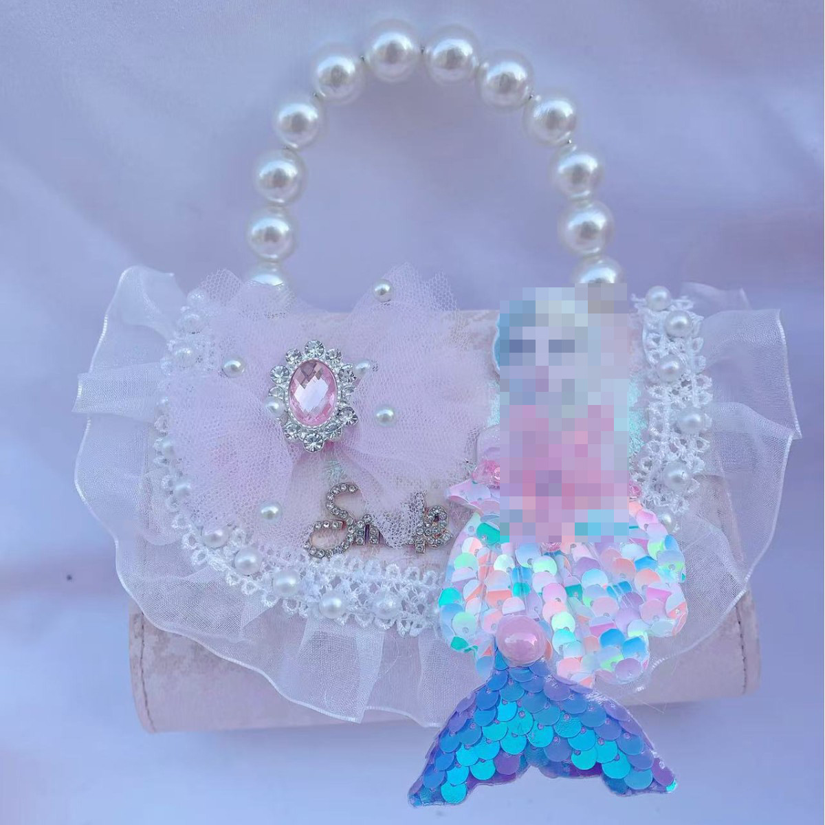 • 화려한 블루 펄 리본 스팽글 스타일