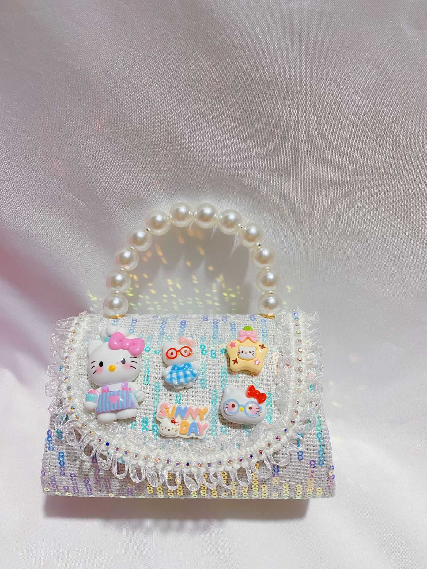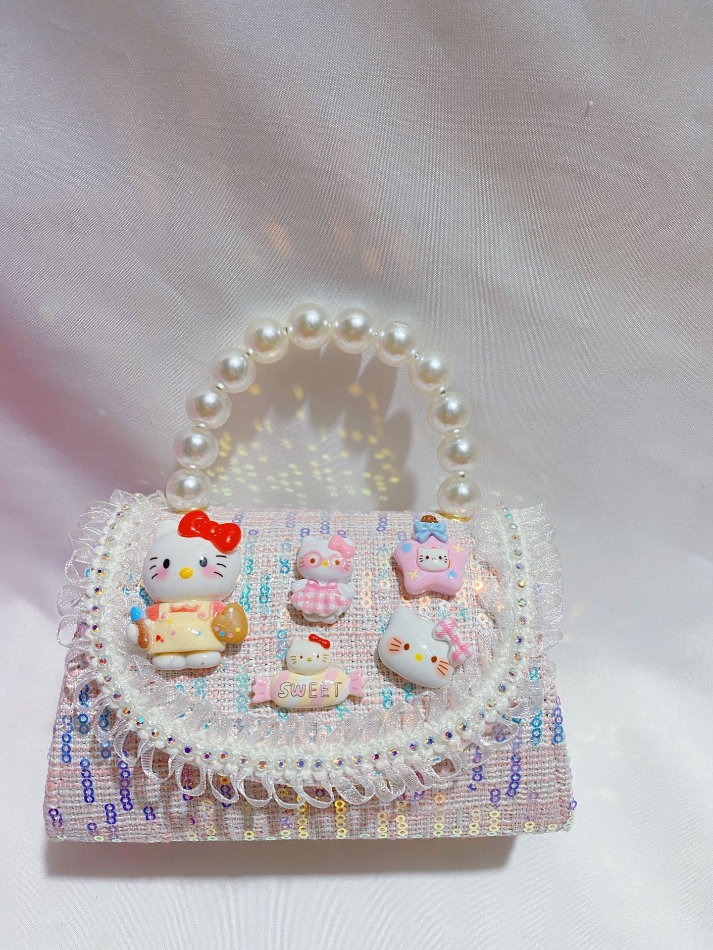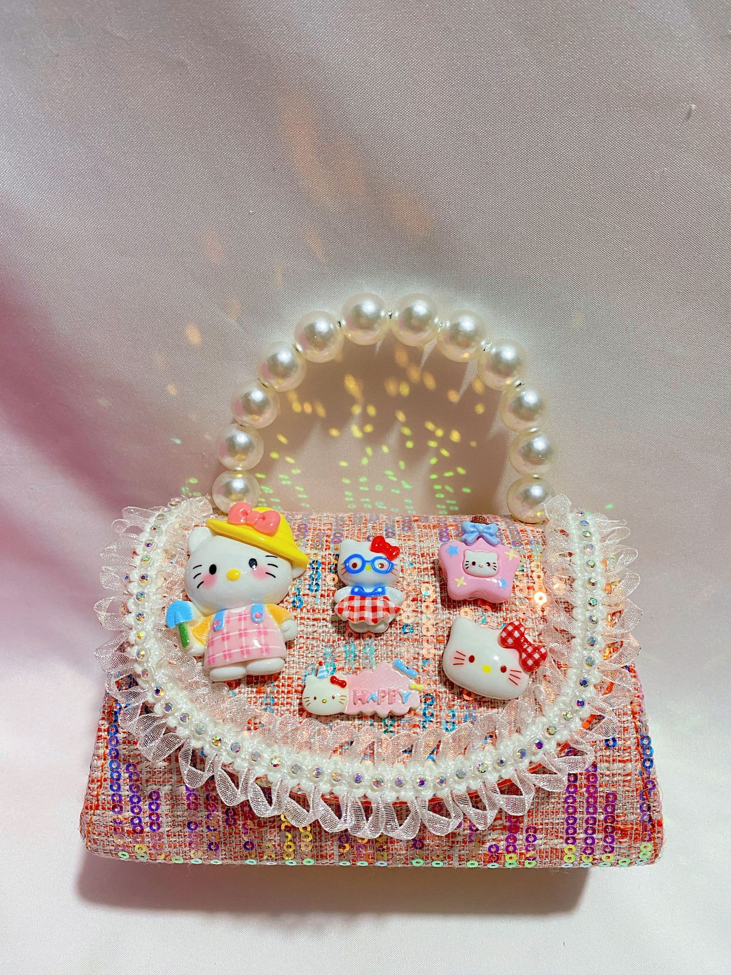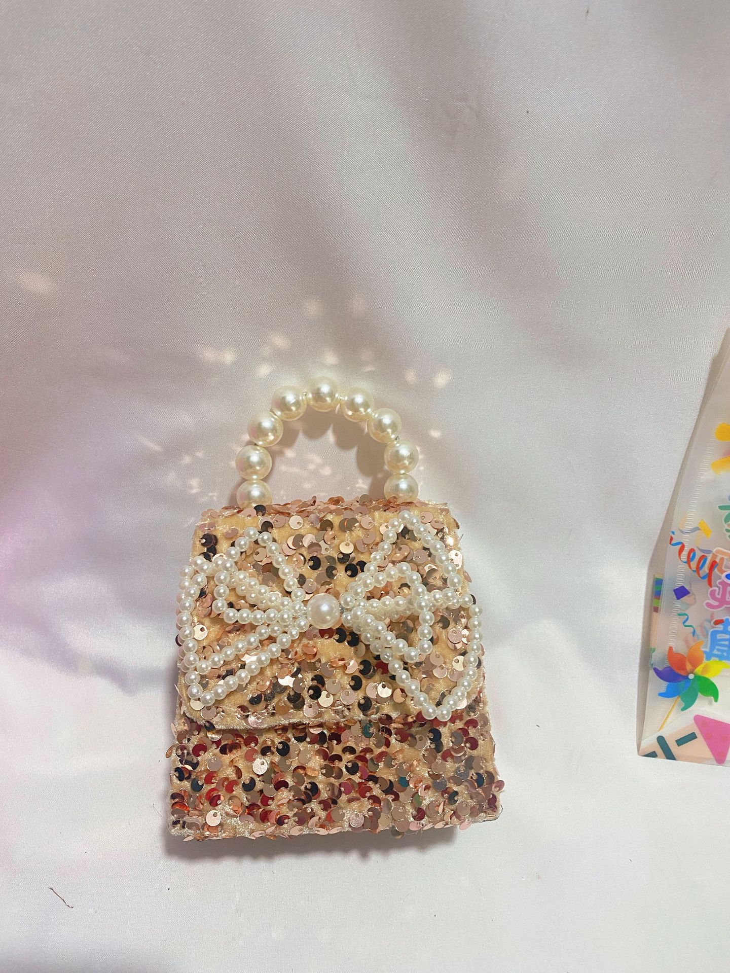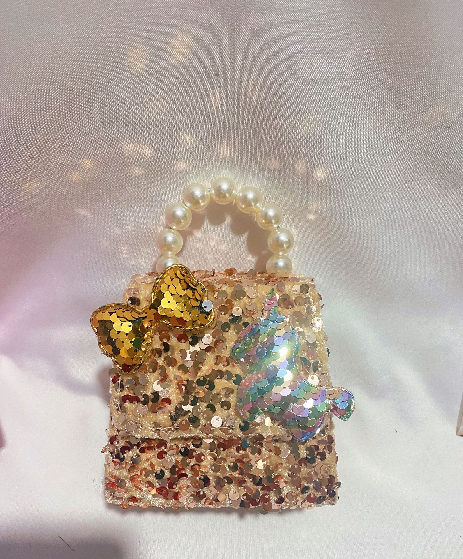 • 화려한 금빛 진주 나비 리본 스팽글 스타일