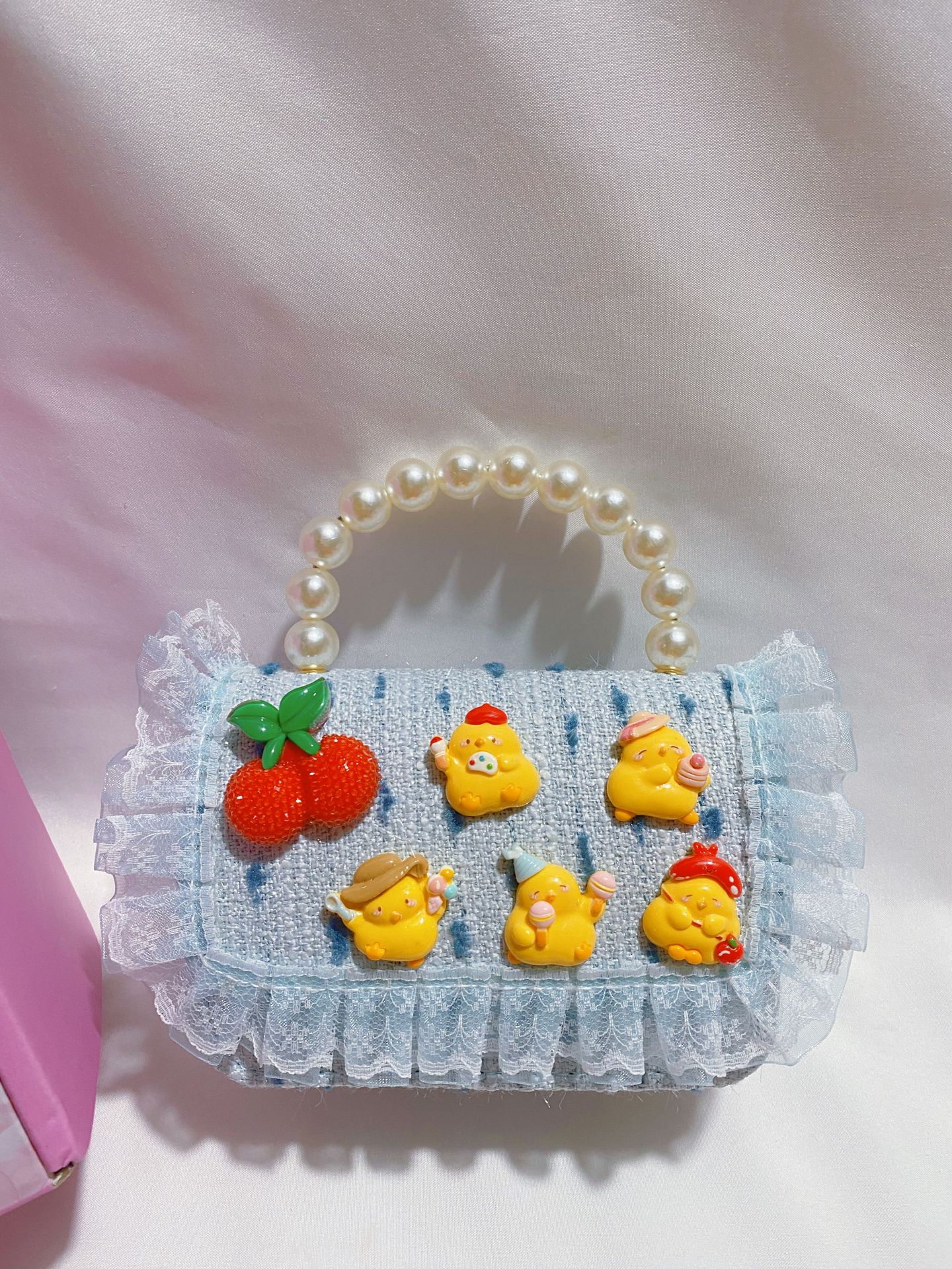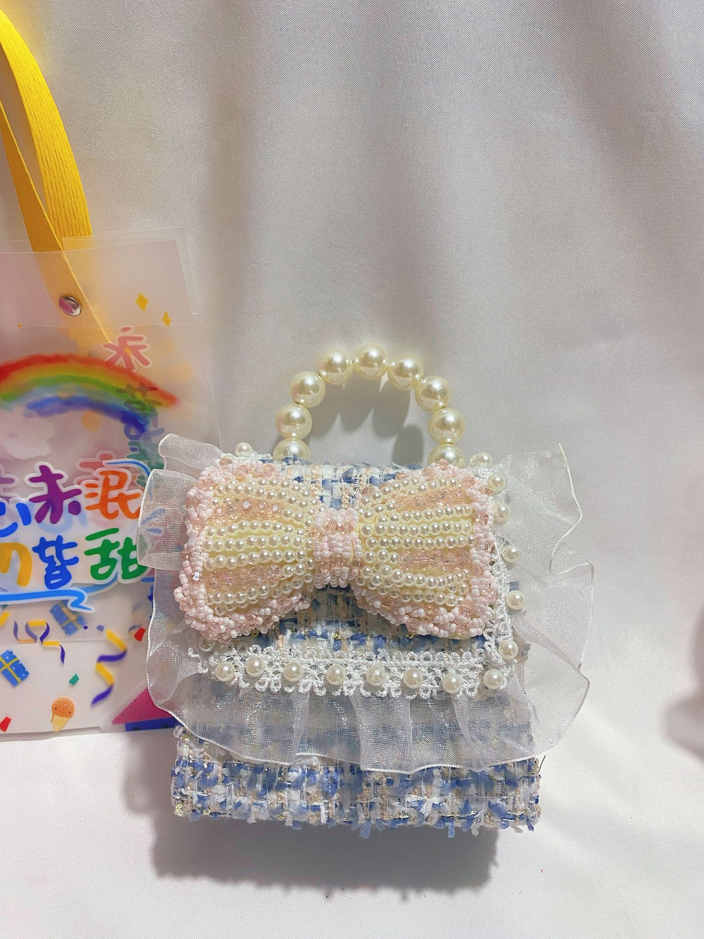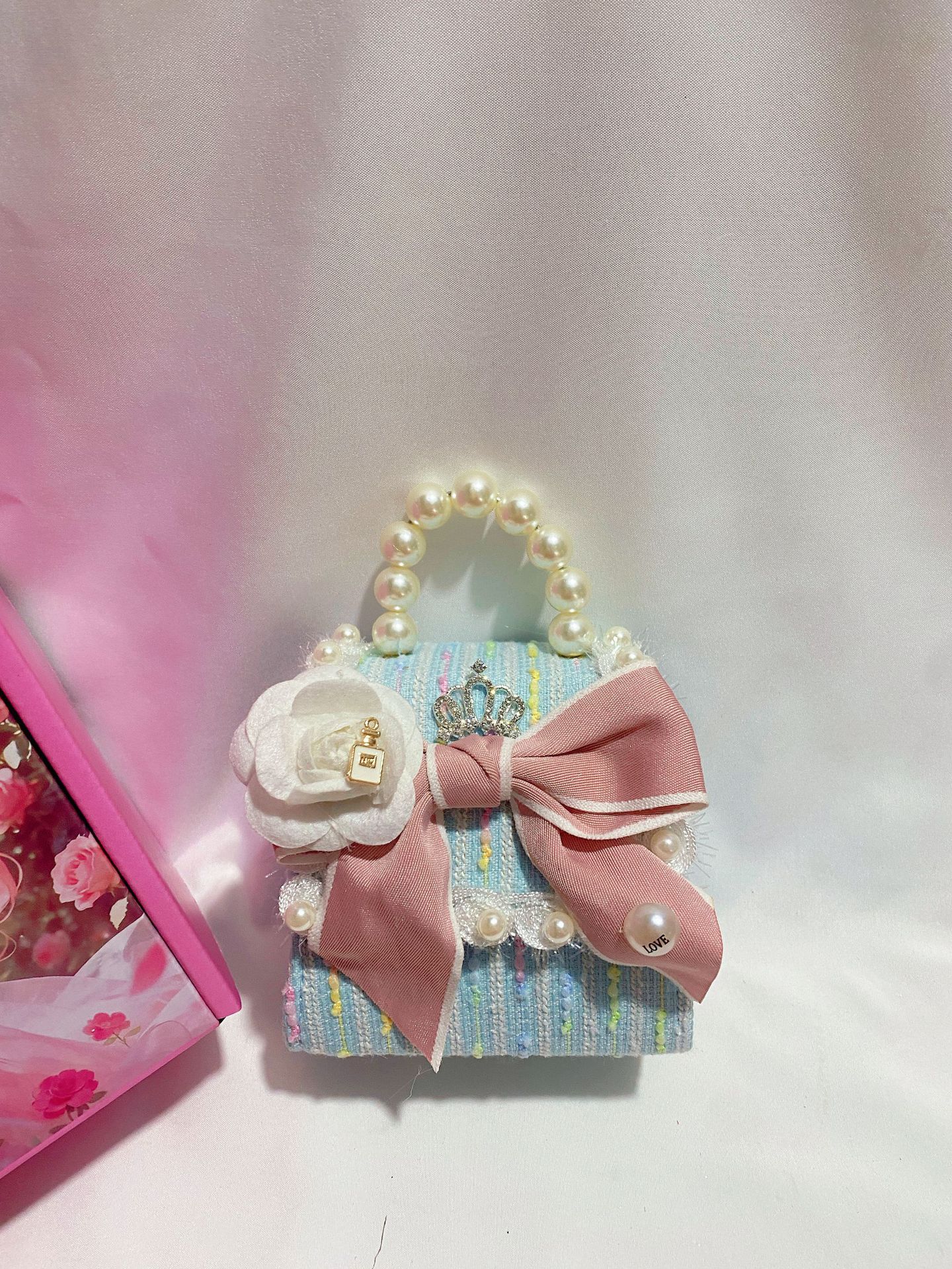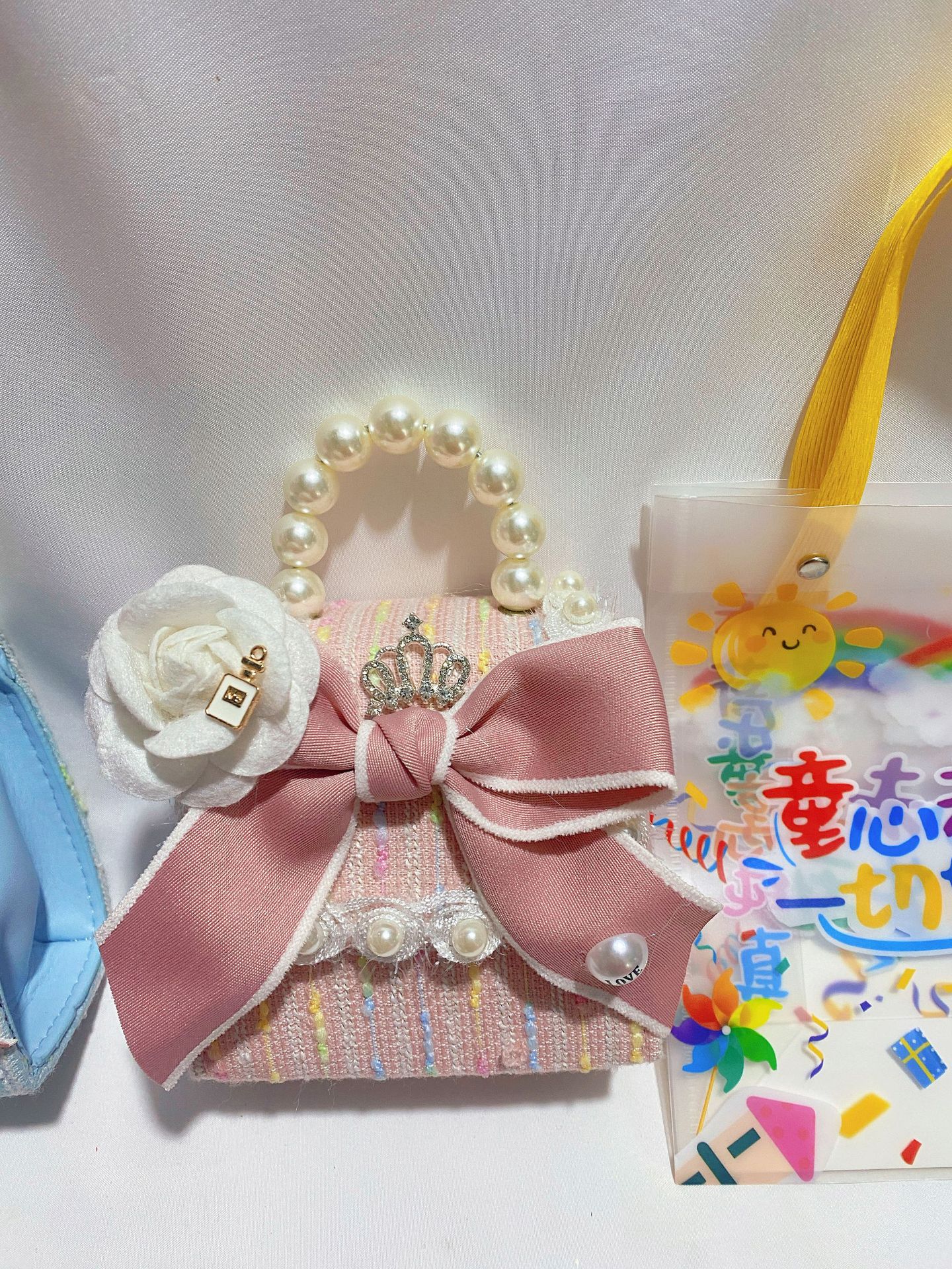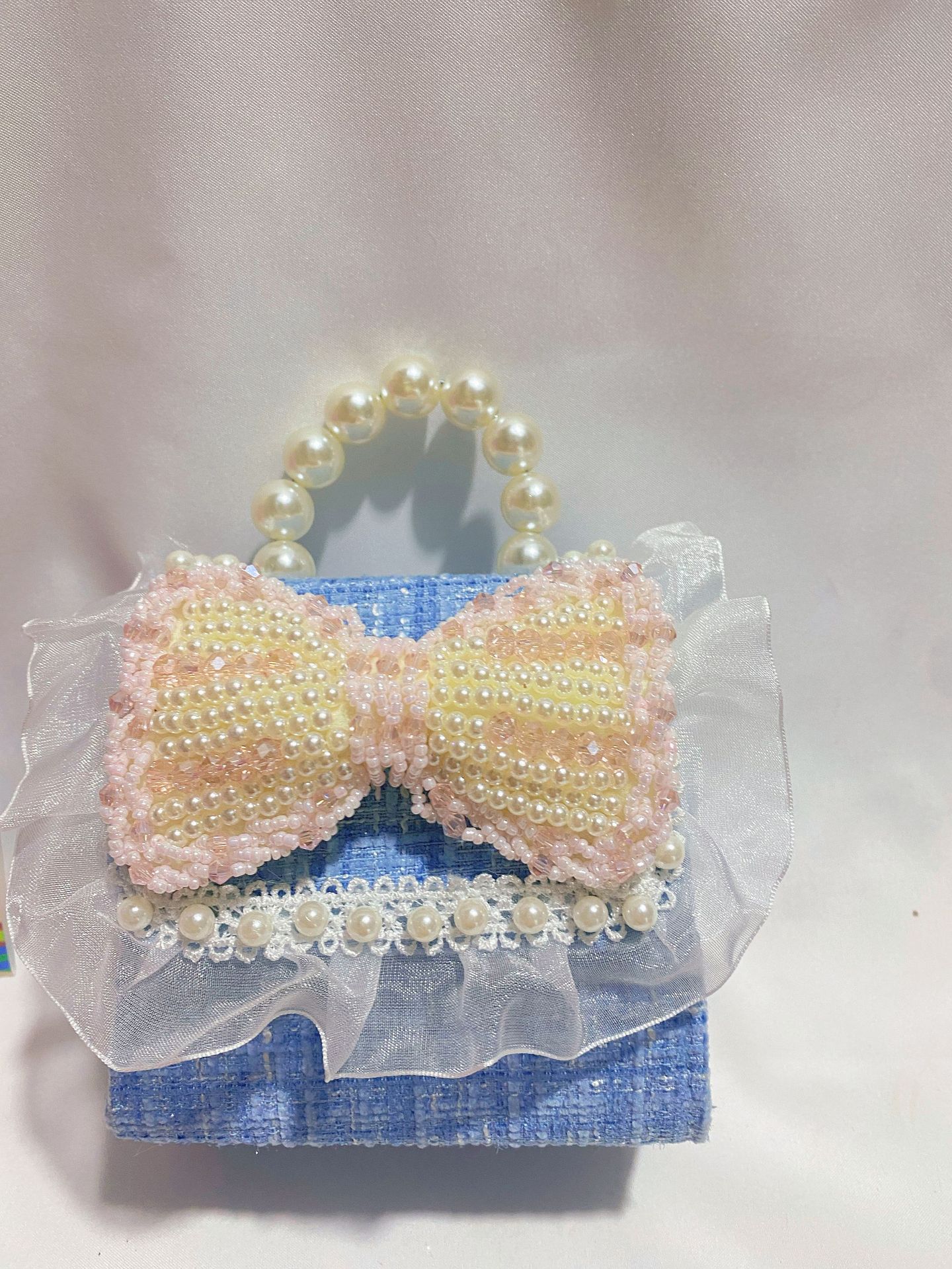 • 라이트 블루 진주 리본
