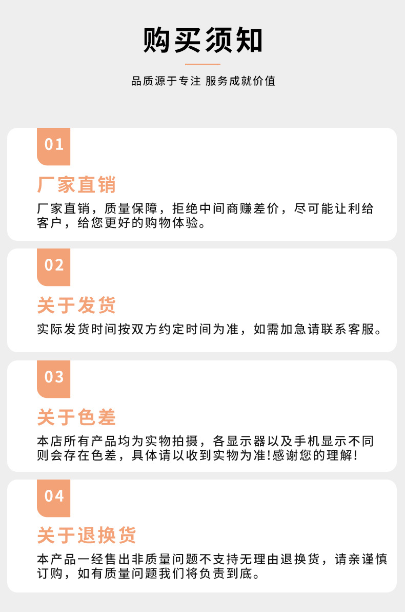 5、不满意、以想象中为理由,实际没有质量问题退货的,不予受理,退货运输费用由客户自己支付