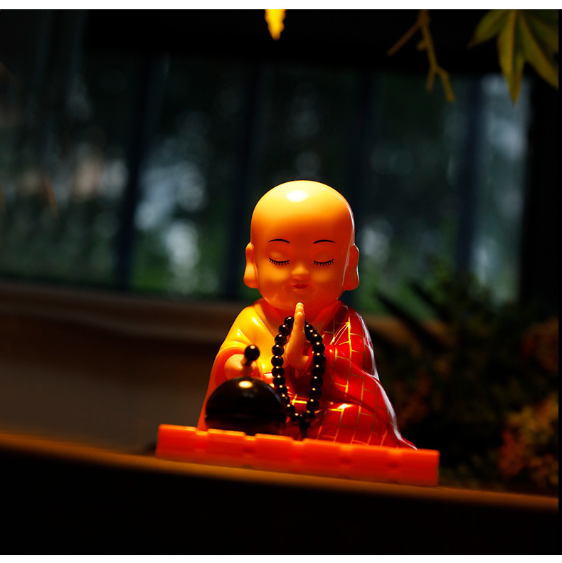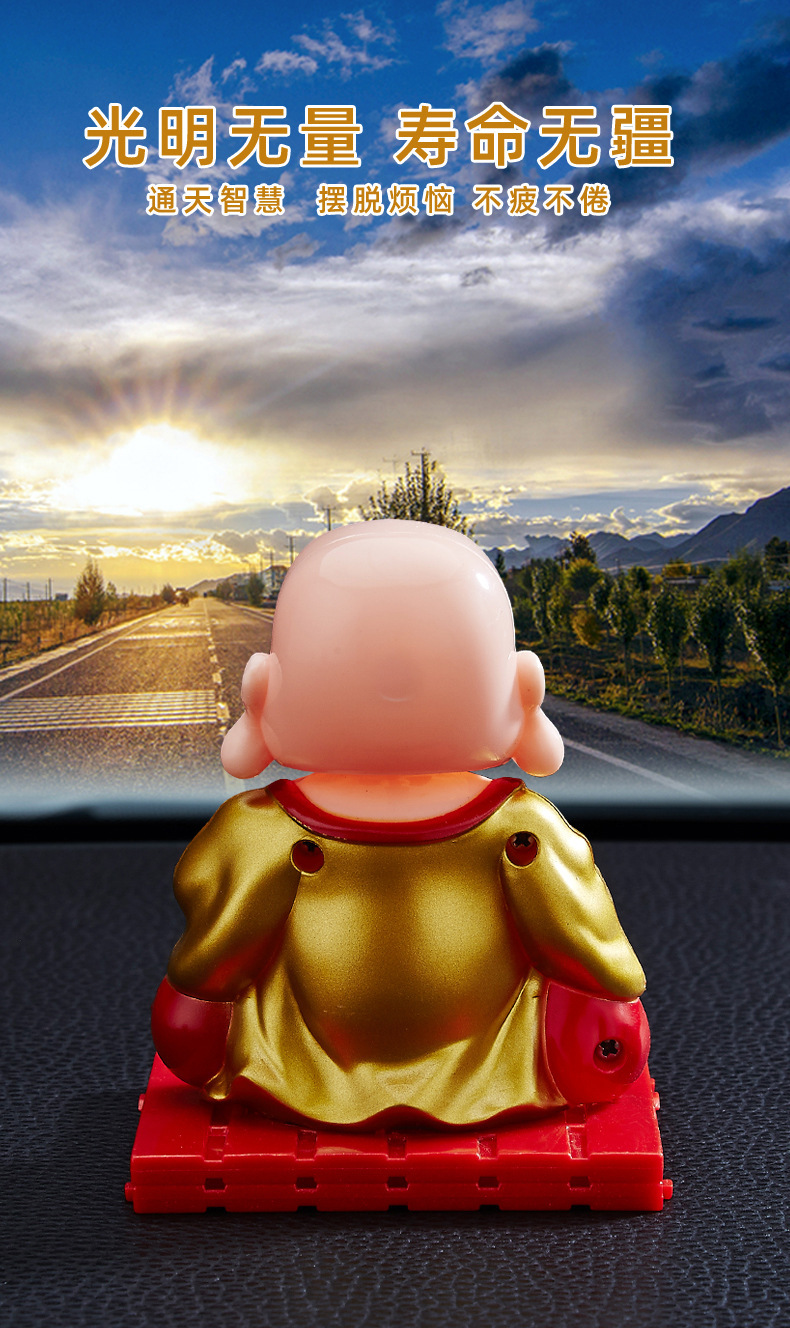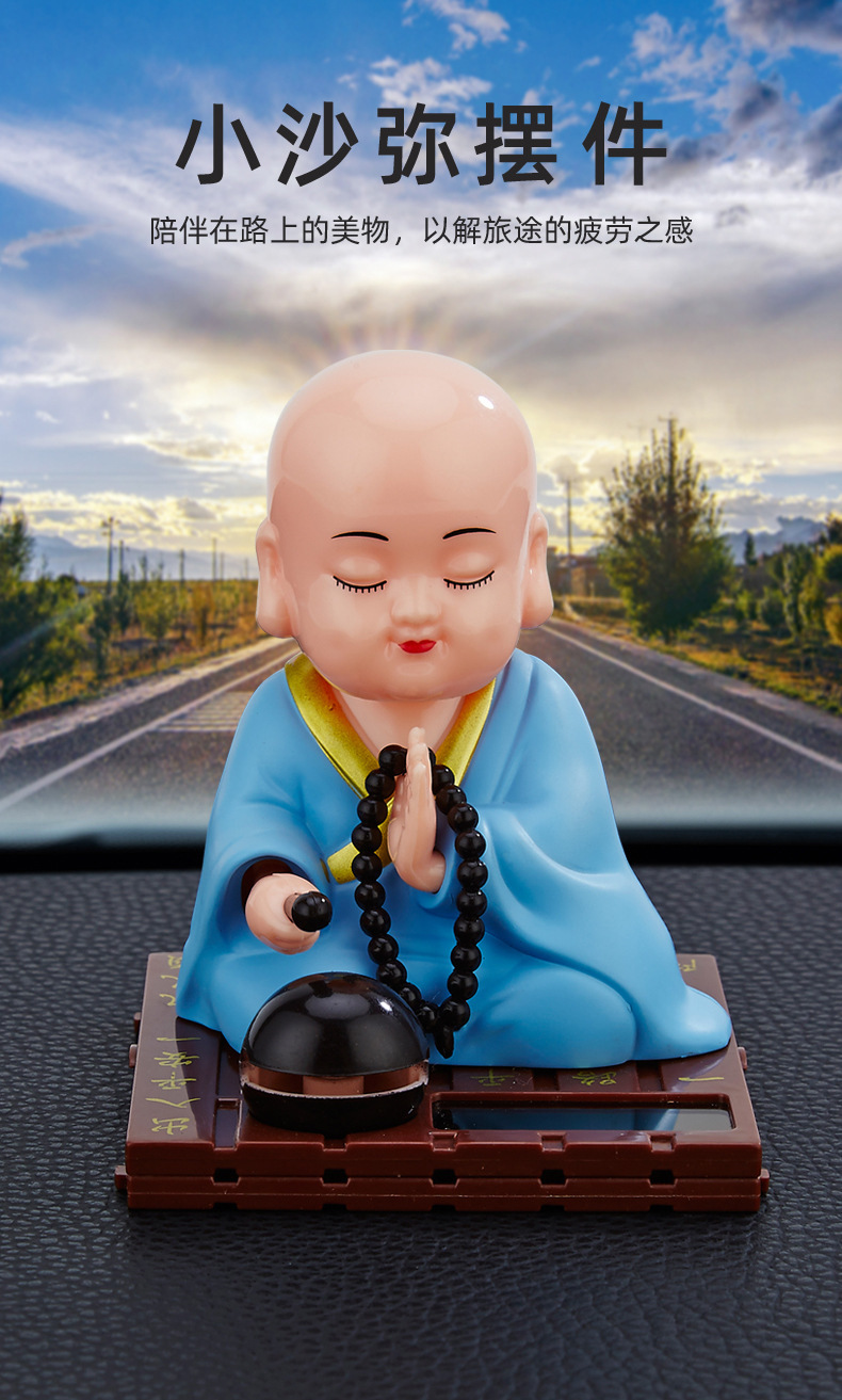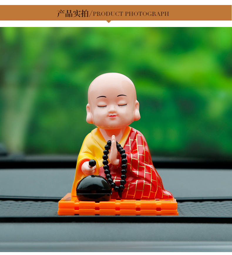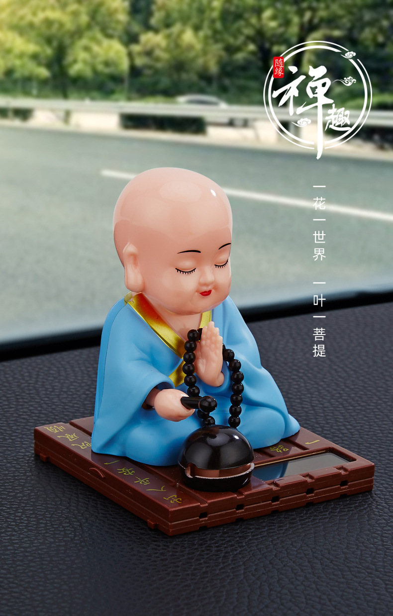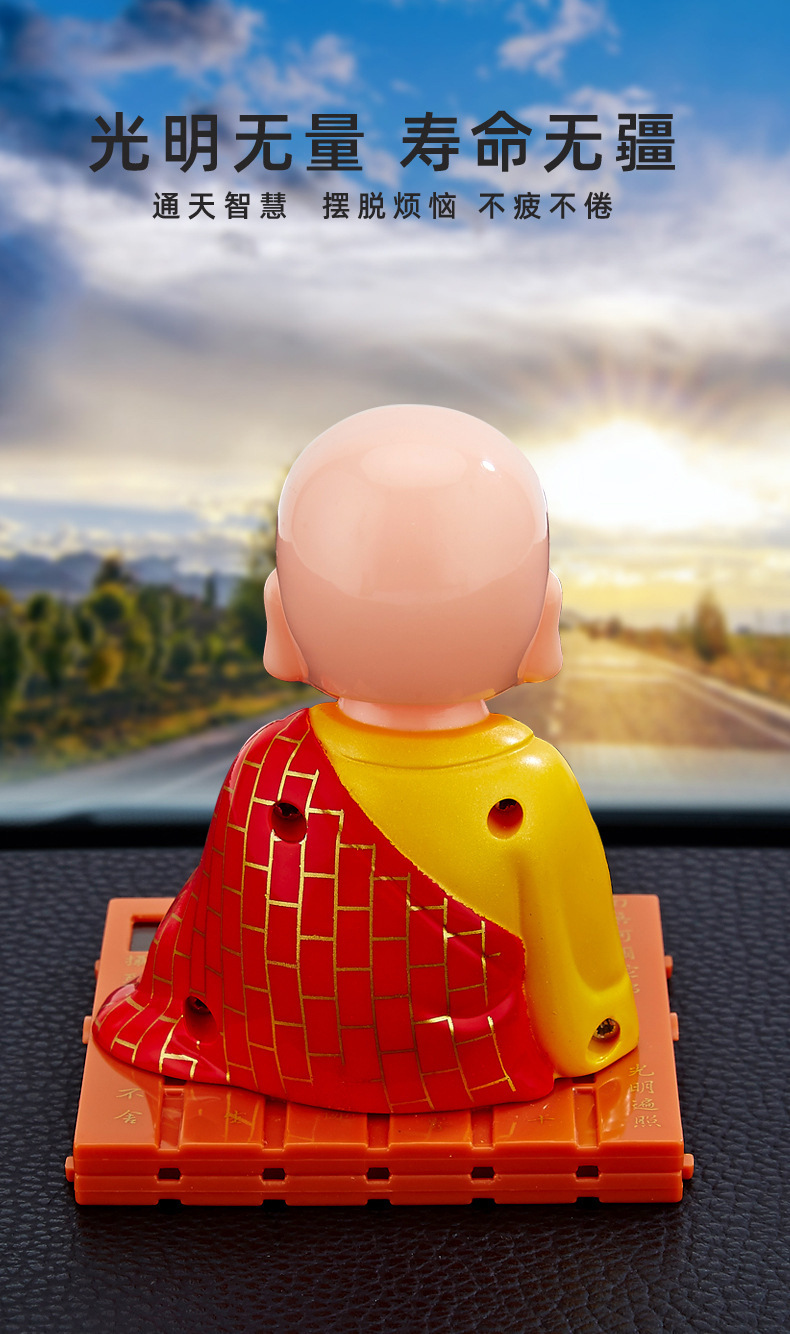 자동차 장식품 인터넷 연예인 귀여운 쉐이크 헤드 차분한 작은 수도사 인형 남성과 여성 자동차 인테리어 장식 태양 에너지
