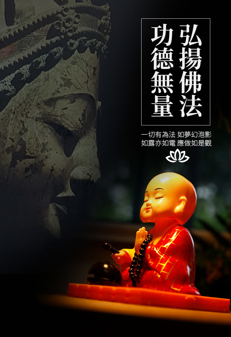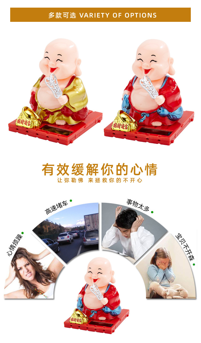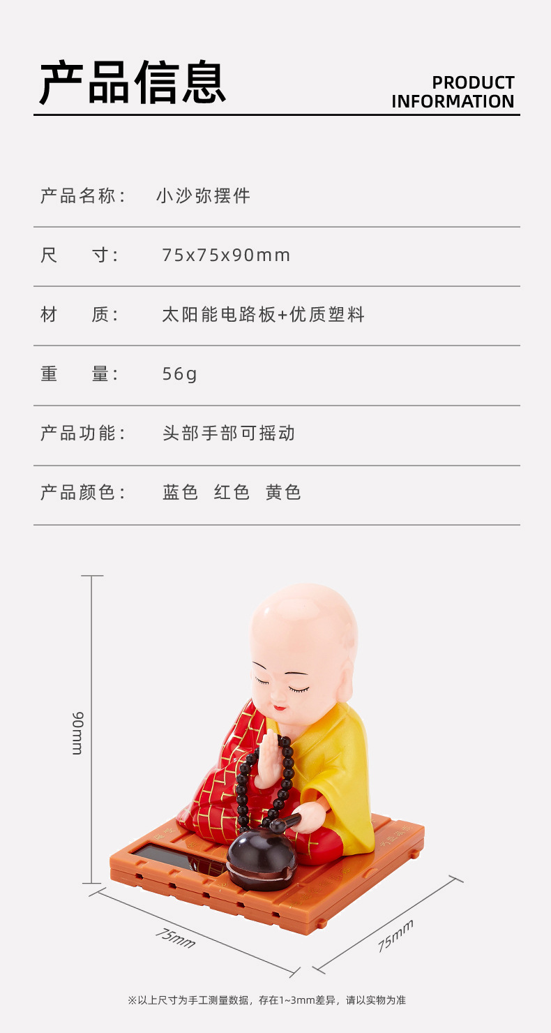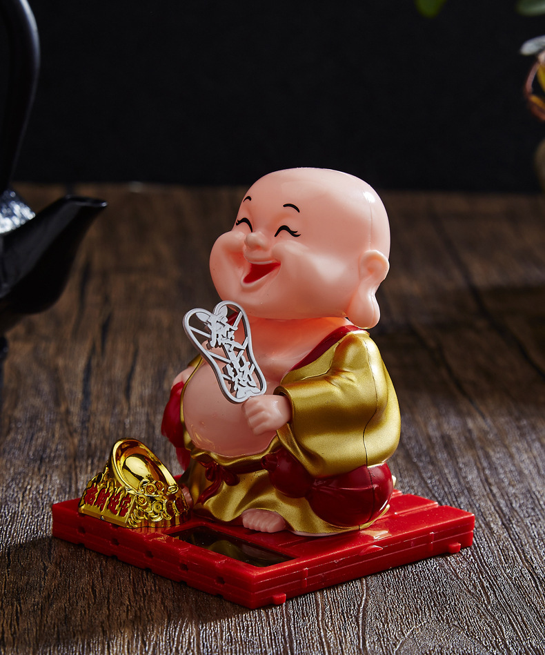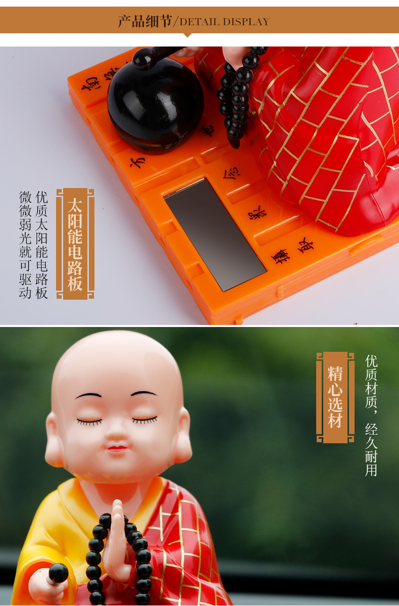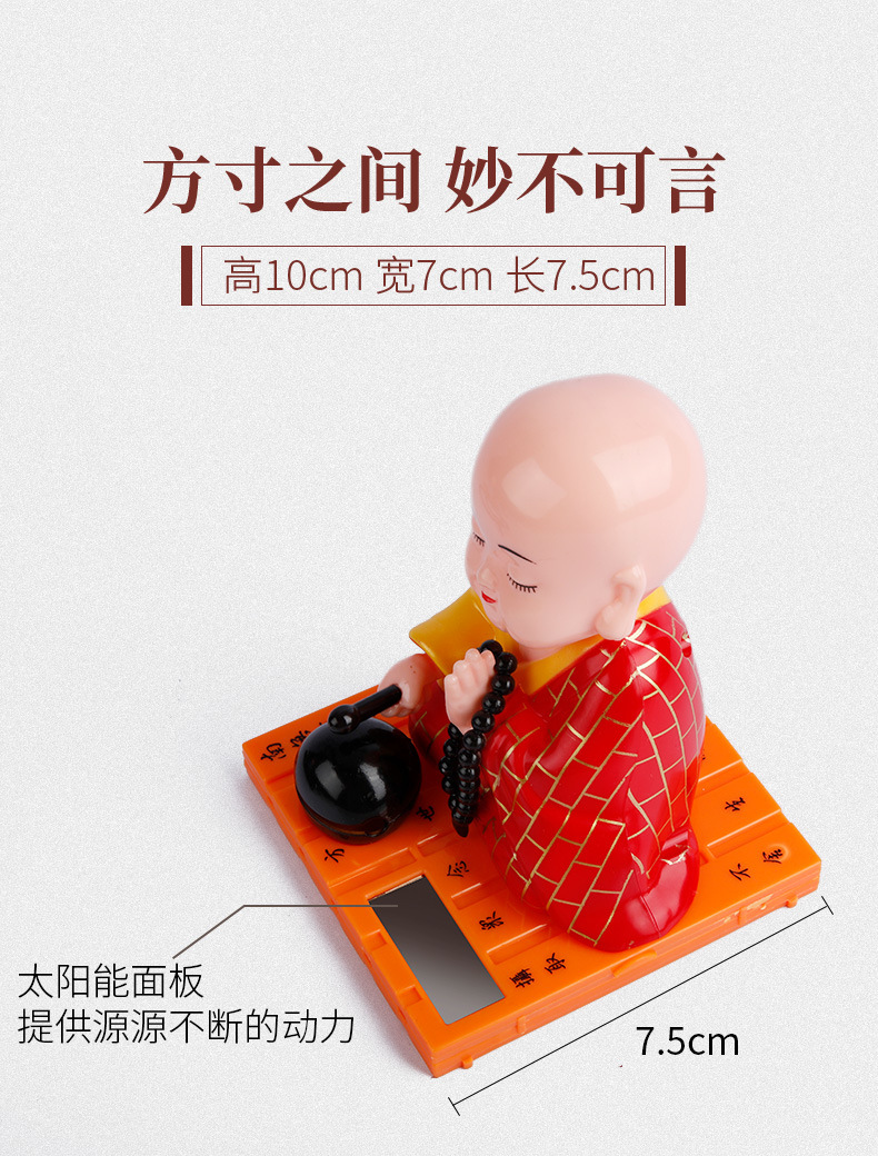 자동차 장식품 인터넷 연예인 귀여운 쉐이크 헤드 차분한 작은 수도사 인형 남성과 여성 자동차 인테리어 장식 태양 에너지