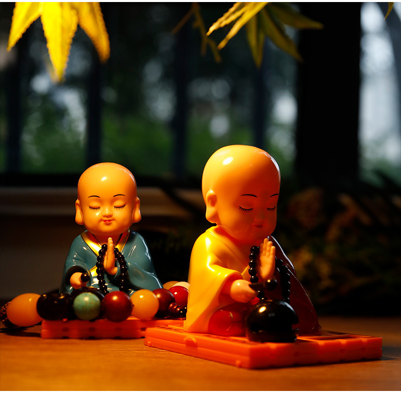 자동차 장식품 인터넷 연예인 귀여운 쉐이크 헤드 차분한 작은 수도사 인형 남성과 여성 자동차 인테리어 장식 태양 에너지스토어 가기
