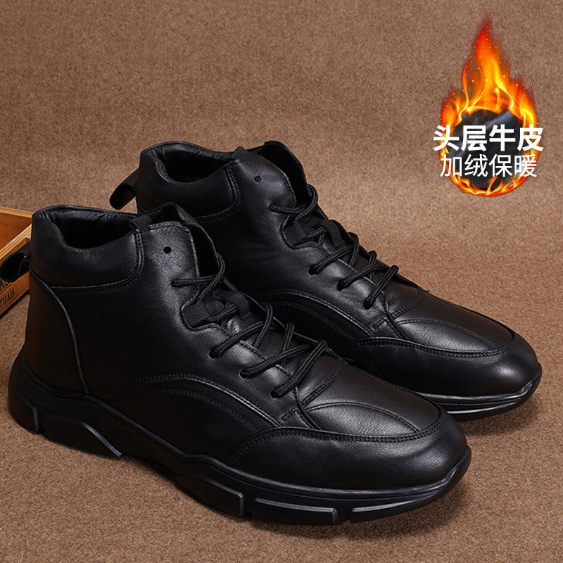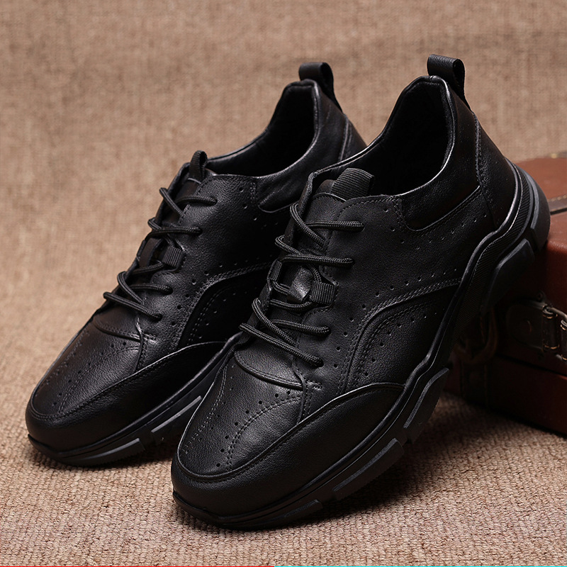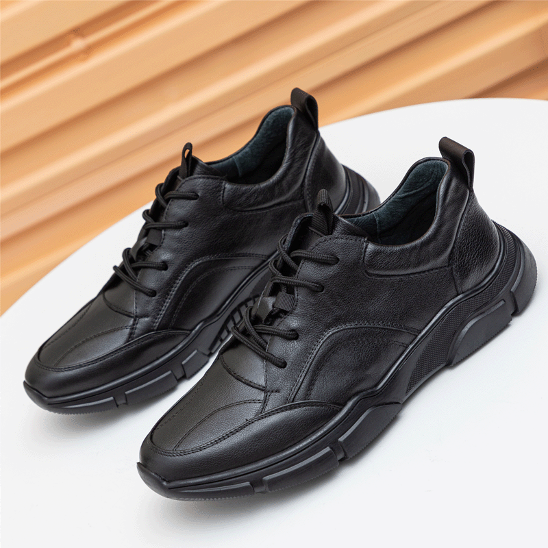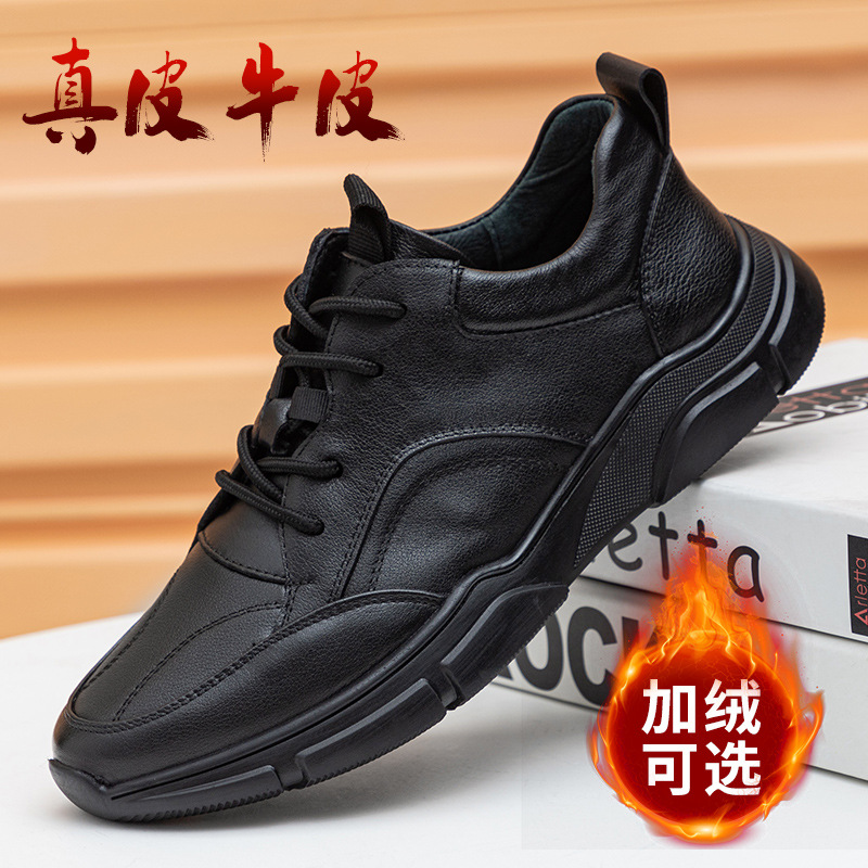 남성용 플리스 안감 편안한 운동화 런닝화 블랙 앞끈 비즈니스 천연 소가죽 로우컷 라운드토 캐주얼화