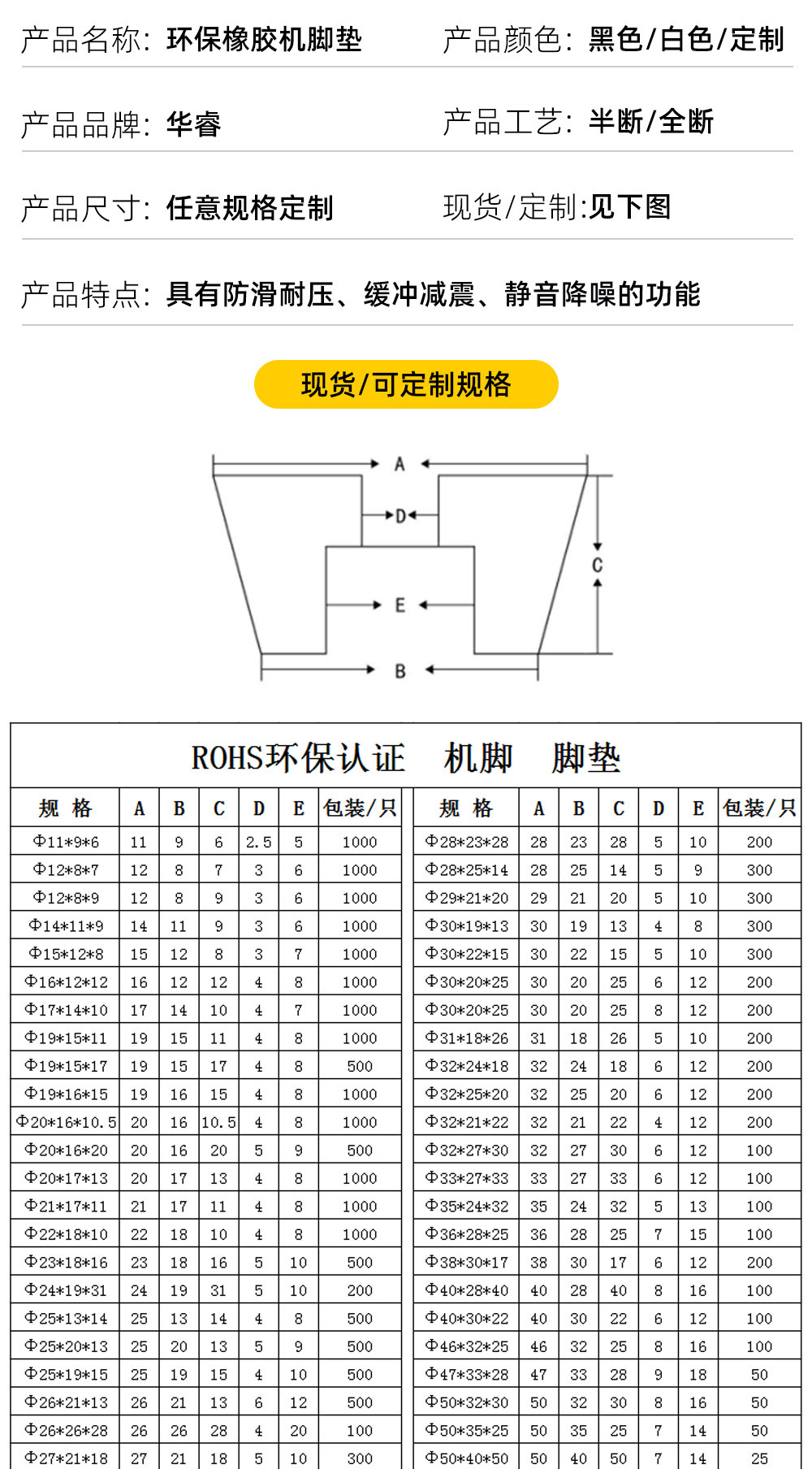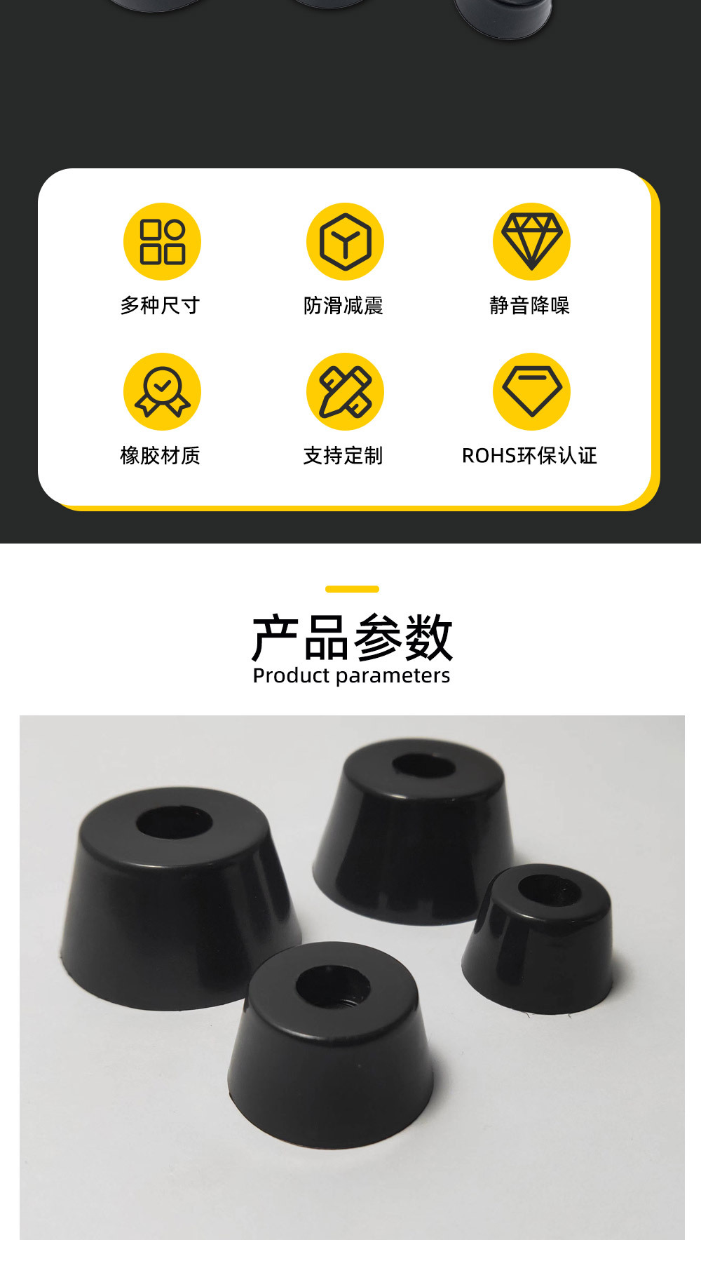 환경 보호 블랙 고무 발 패드 오디오 섀시 미끄럼 방지 버퍼 충격 패드 내마모성 원추형 실리콘 고무 기계 발 패드스토어 가기