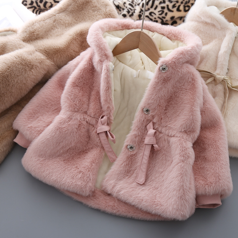 2326 어린이 모조 모피 스웨터 여자 후드 모피 코트 따뜻한 코트 코튼 패딩 재킷을 대신하여 아동복스토어 가기