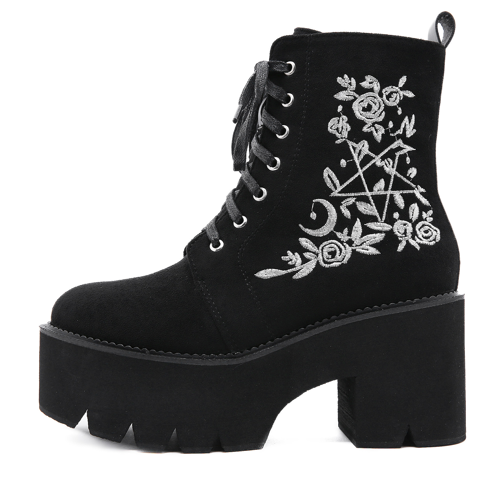 2025 겨울 유럽과 미국의 앞 레이스 업 여성 부츠 아마존 패션 자수 사이드 지퍼 여성용 두꺼운 밑창 마틴 부츠스토어 가기