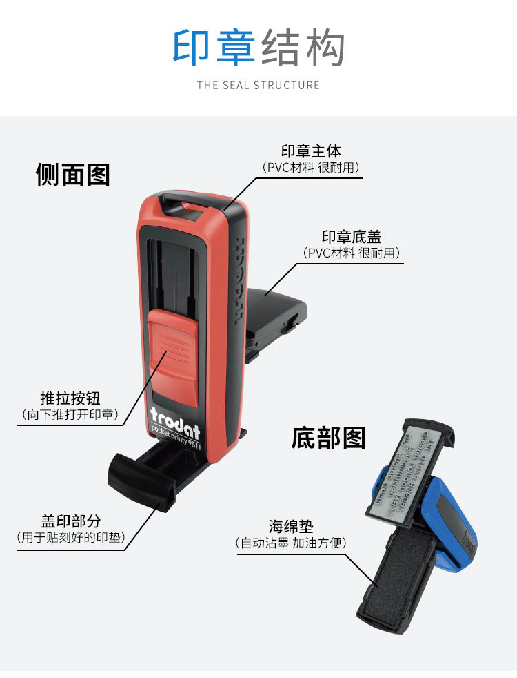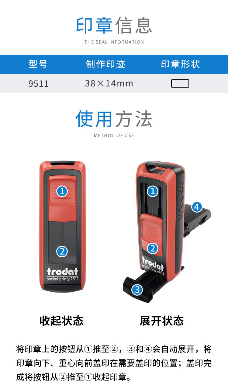 Zhuoda 잉크 씰 휴대용 스탬프 9511 인감 재료 도매 휴대용 포켓 씰 재료스토어 가기