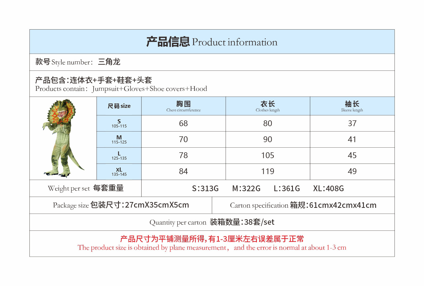 할로윈 키즈 의상 쥬라기 세계 트리케라톱스 코스프레 귀여운 공룡 동물 놀이 의상
