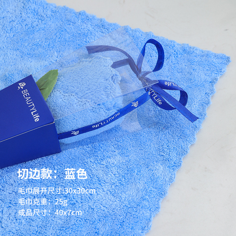 • 박스형 타월 꽃 "블루" 잠금 가장자리 농축