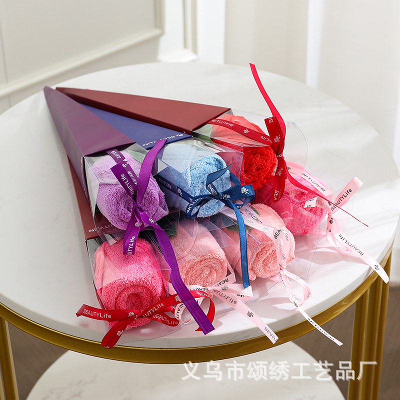 창조적 인 수건 꽃 싱글 발렌타인 데이 장미 꽃다발 교사의 날 선물과 선물 결혼식 동반 행사 프로모션스토어 가기