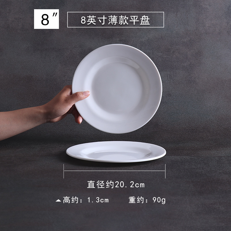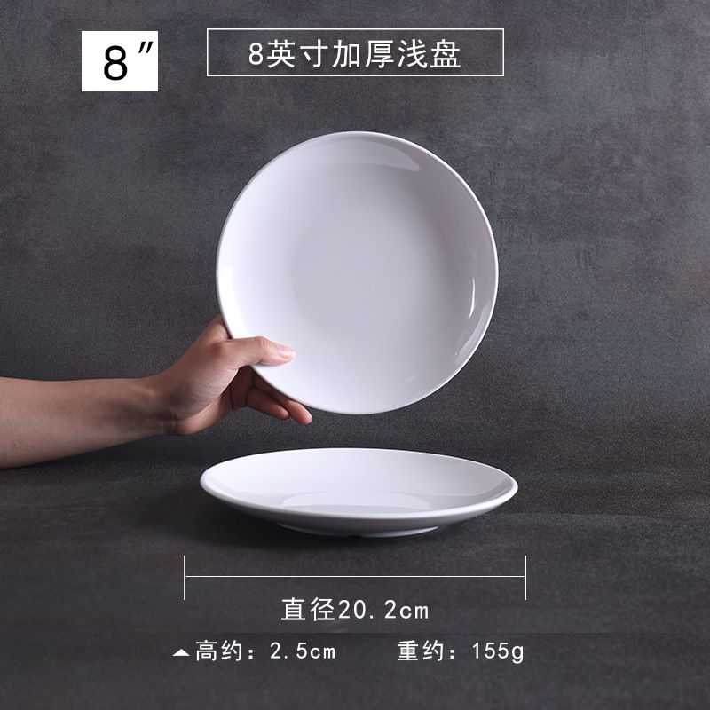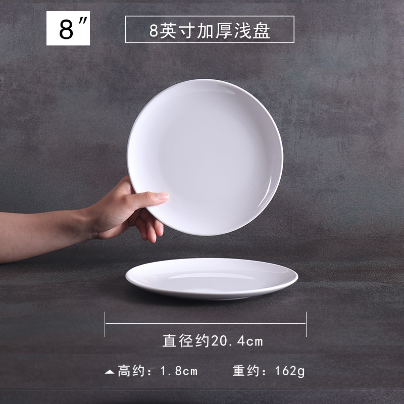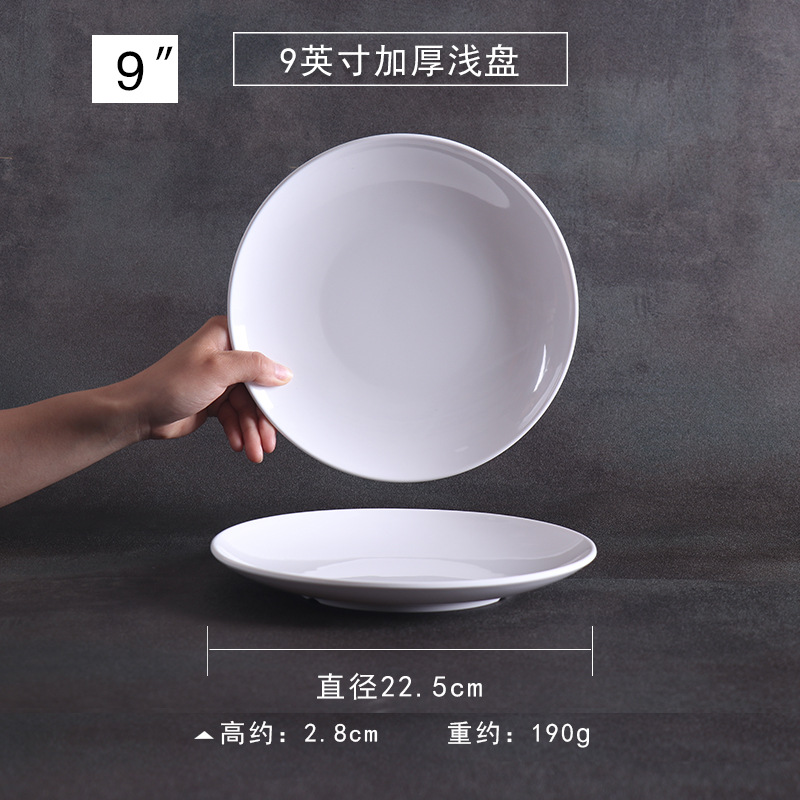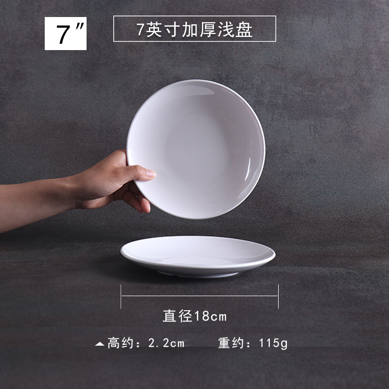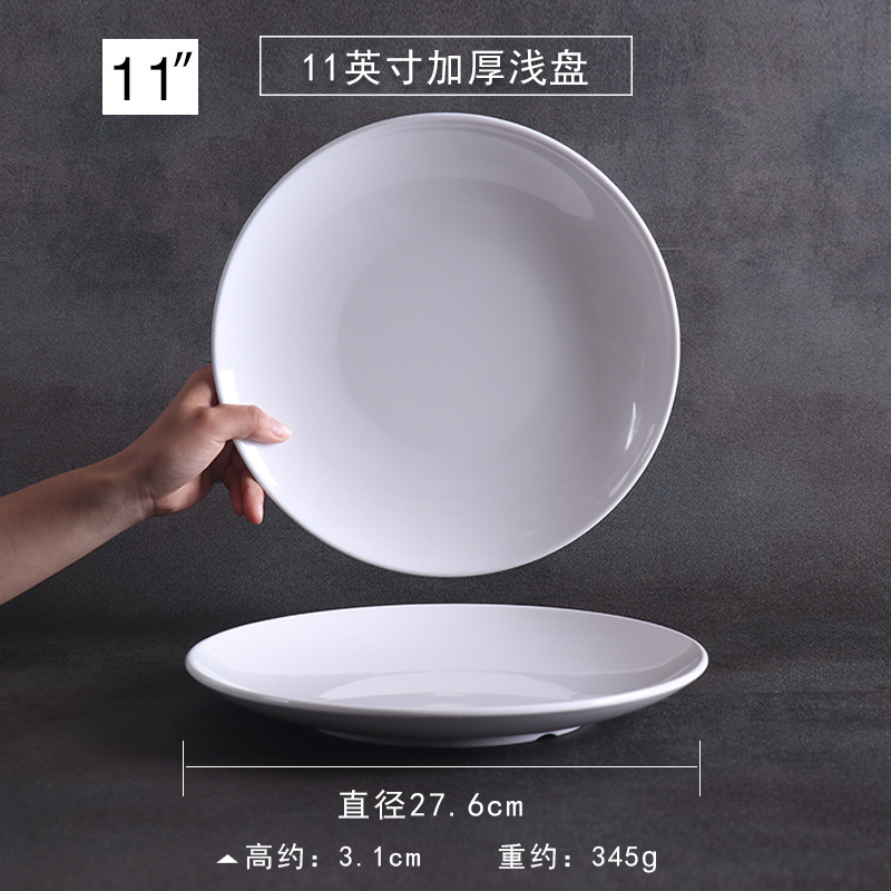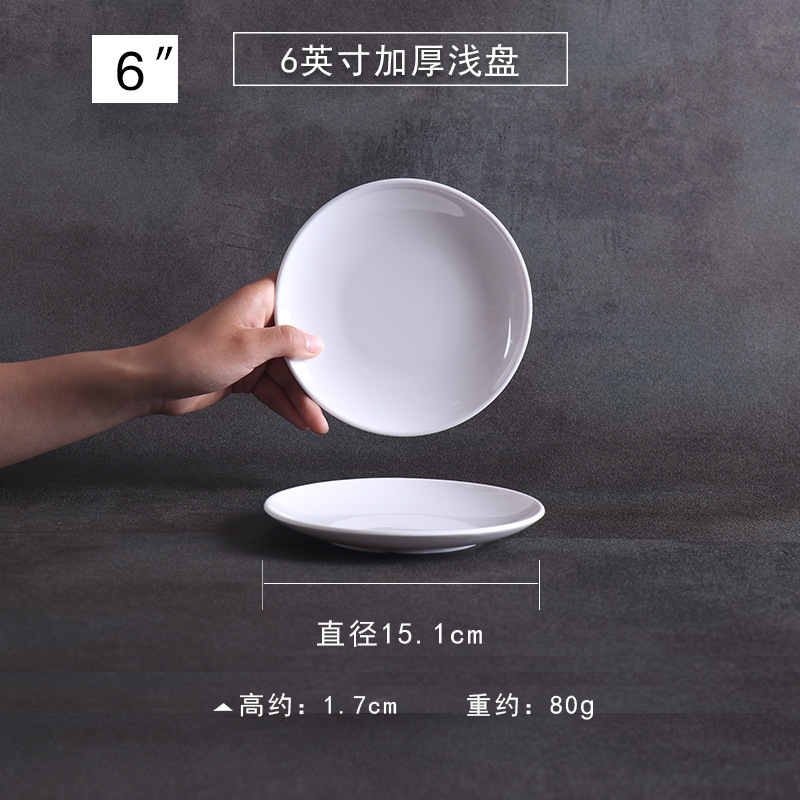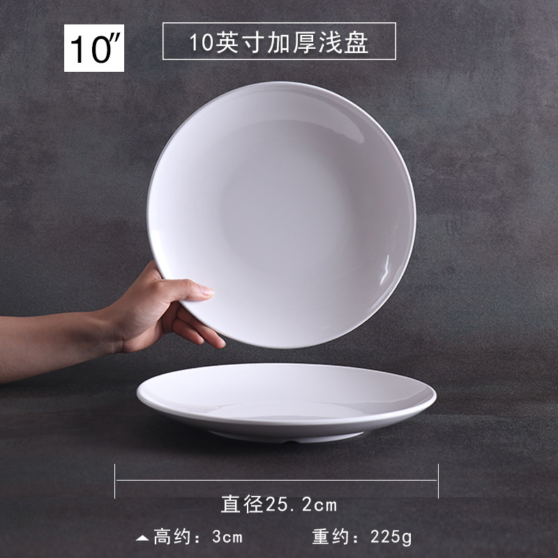 멜라민 디스크 모조 도자기 식기 뼈 접시 원형 접시 플라스틱 흰색 평면 접시 패스트 푸드 접시 뷔페 요리 상업스토어 가기