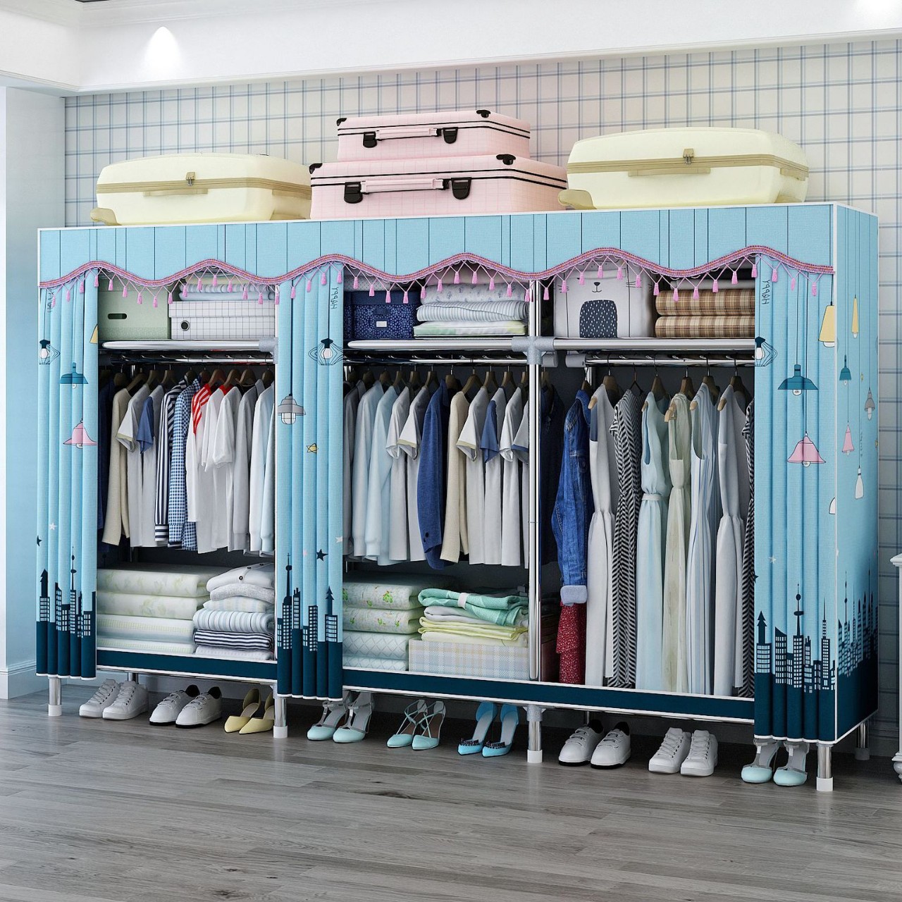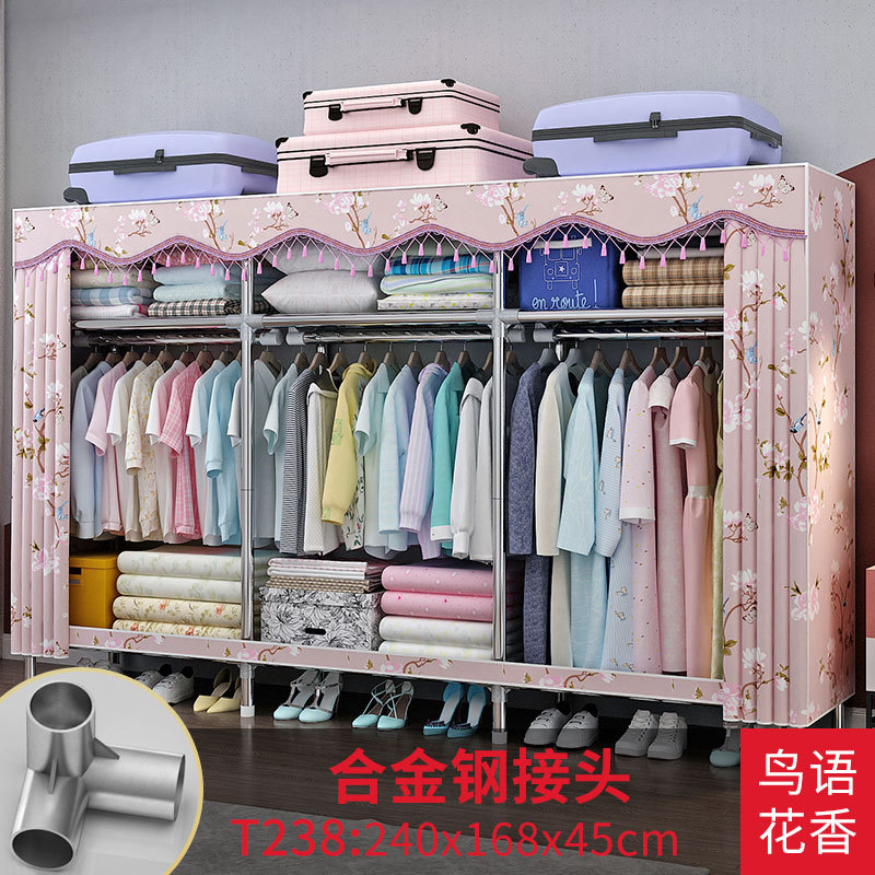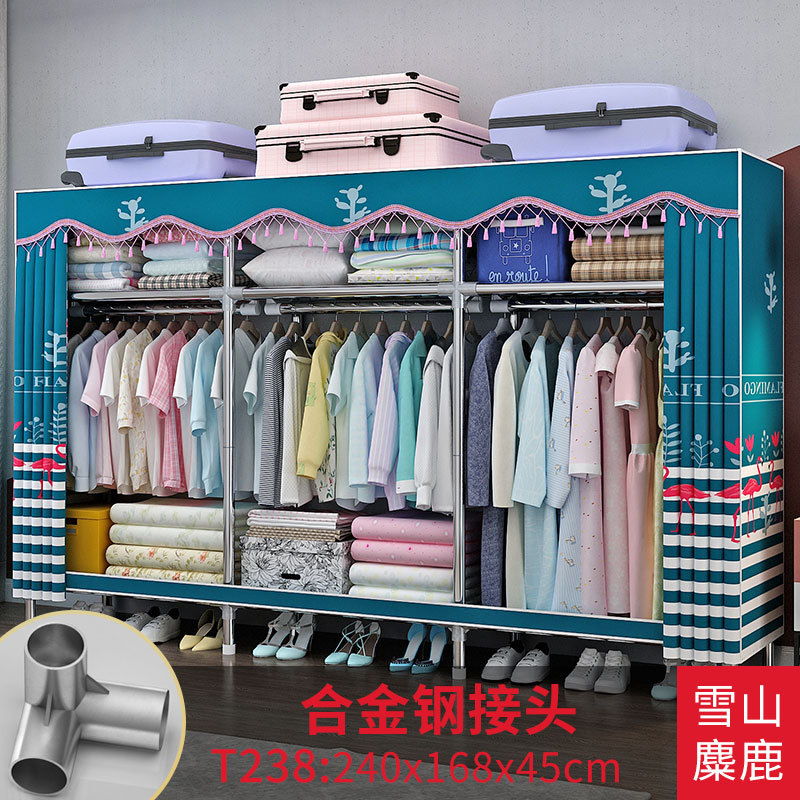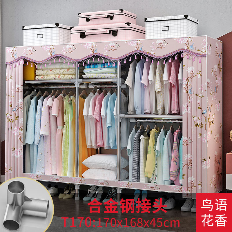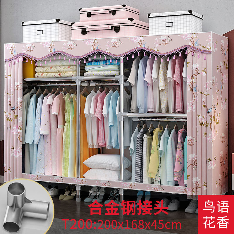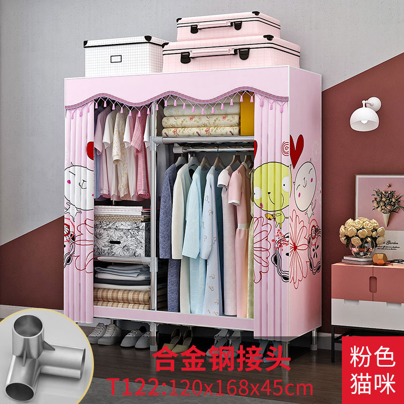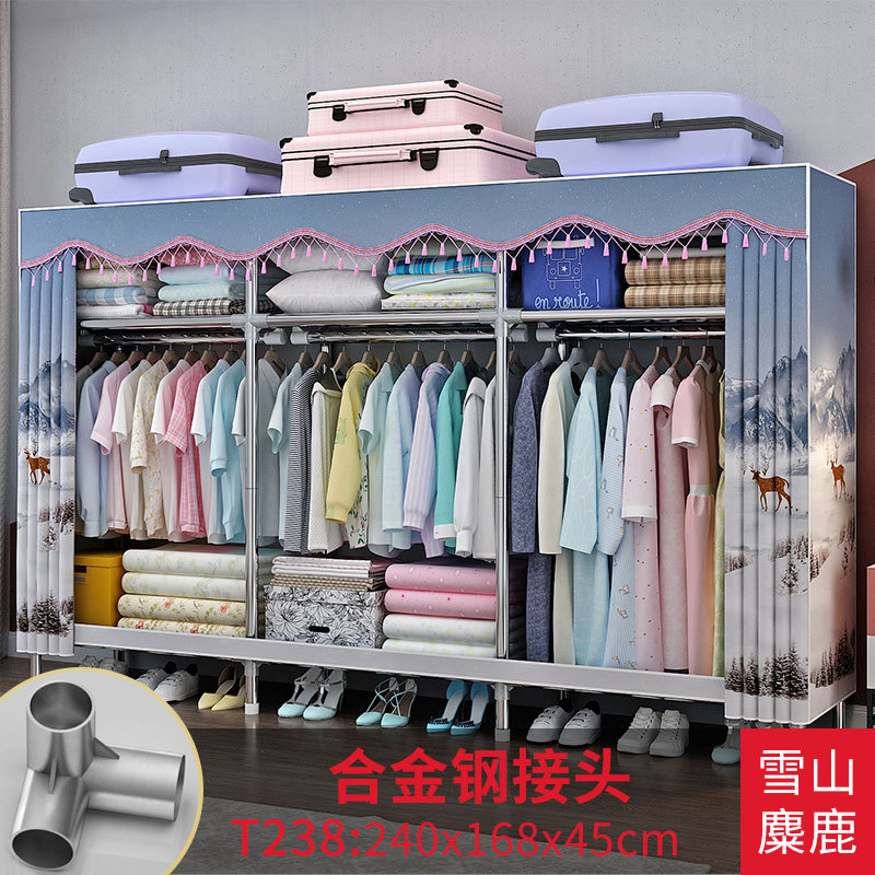 25 파이프 스틸 조인트 옷장 간단한 천 옷장 강철 파이프 두꺼운 강화 전체 강철 프레임 홈 임대 룸 교수형 옷장스토어 가기