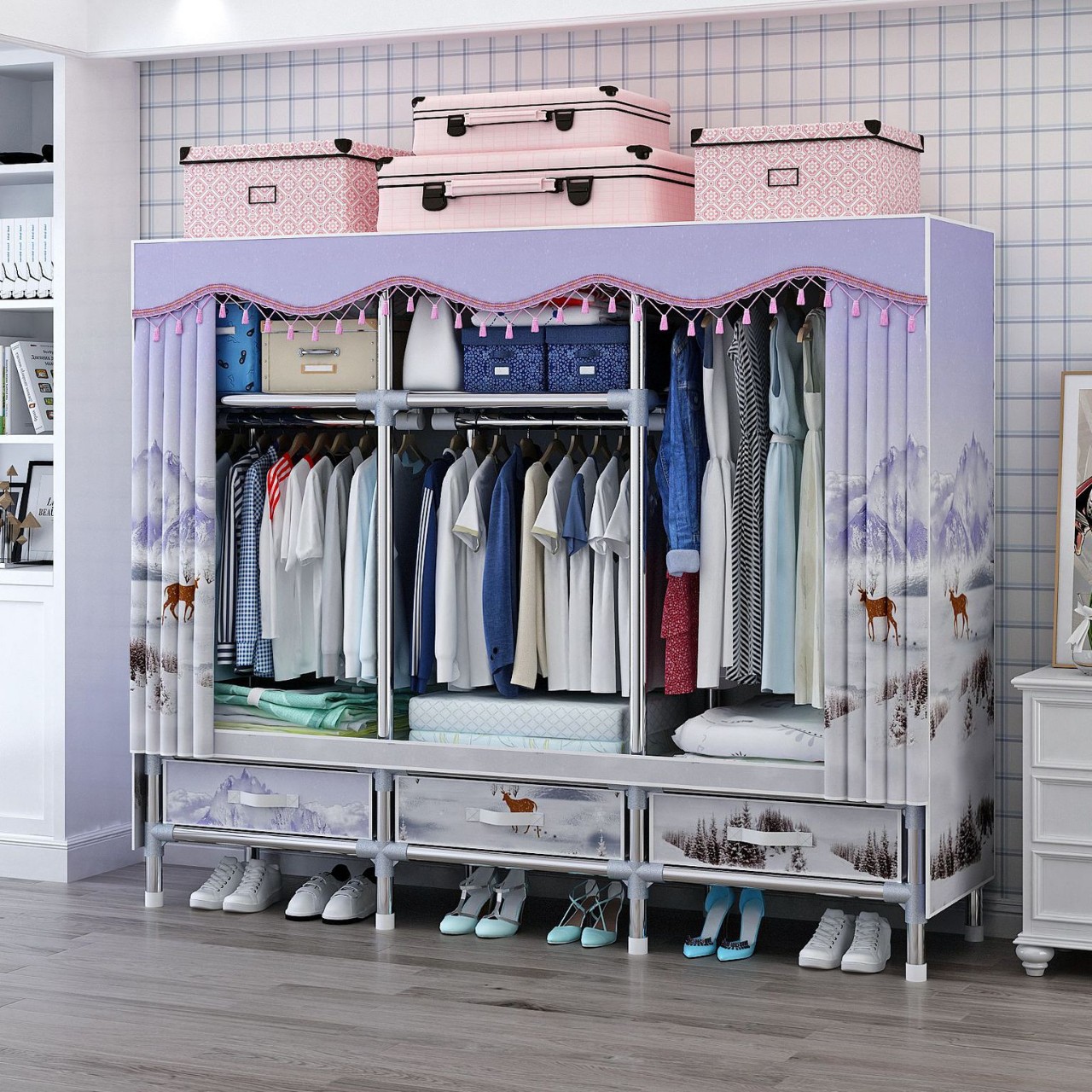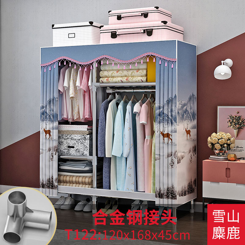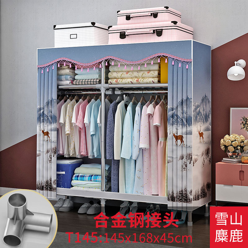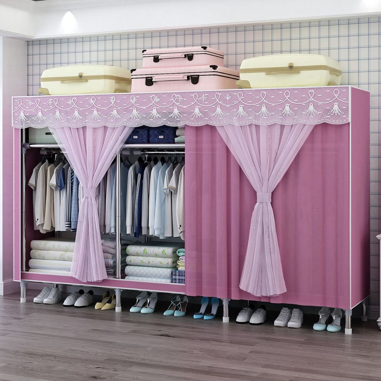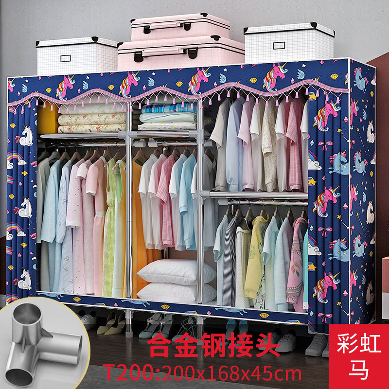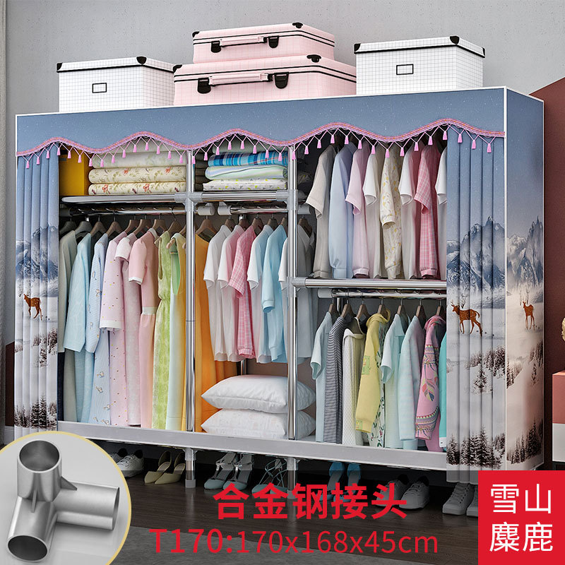 25 파이프 스틸 조인트 옷장 간단한 천 옷장 강철 파이프 두꺼운 강화 전체 강철 프레임 홈 임대 룸 교수형 옷장스토어 가기