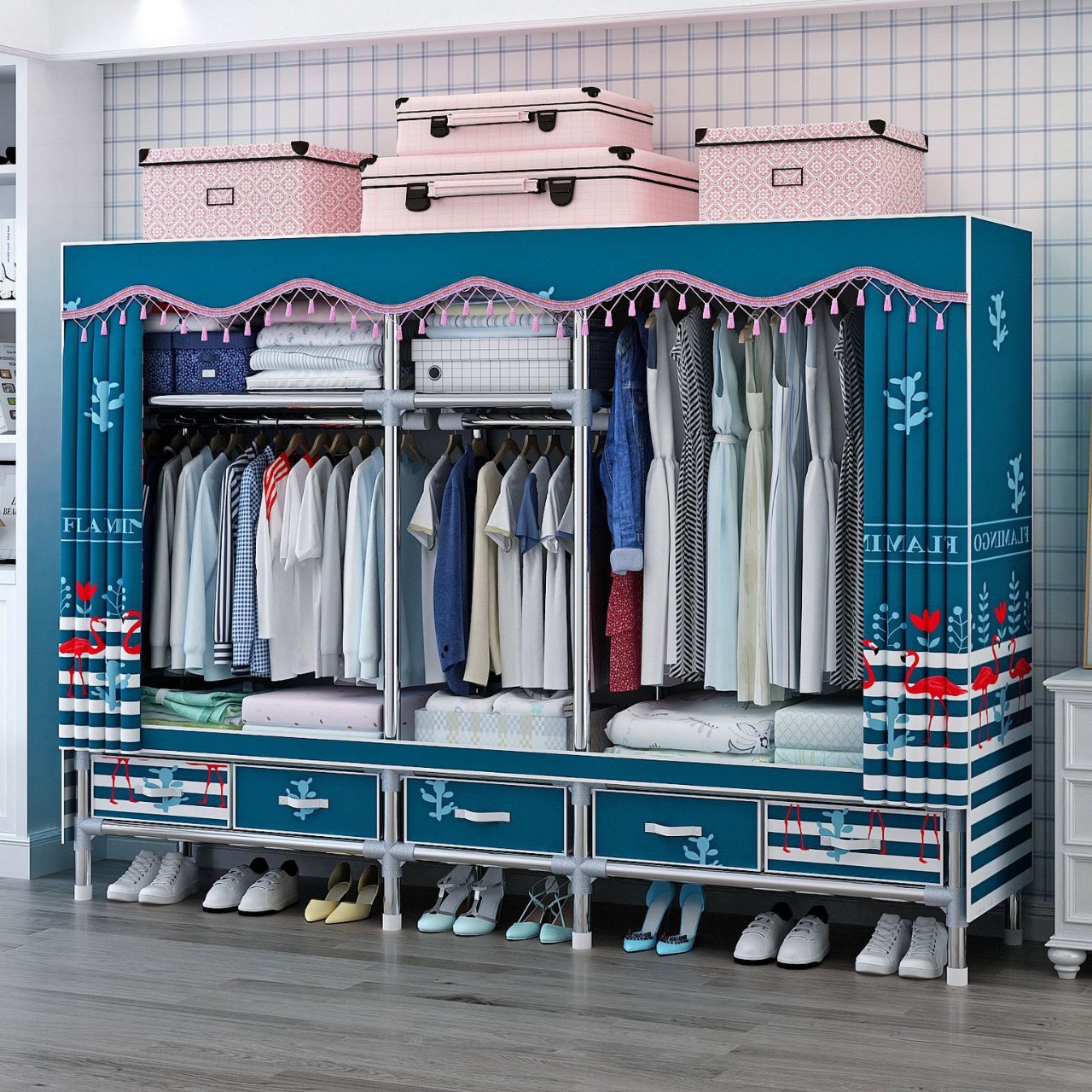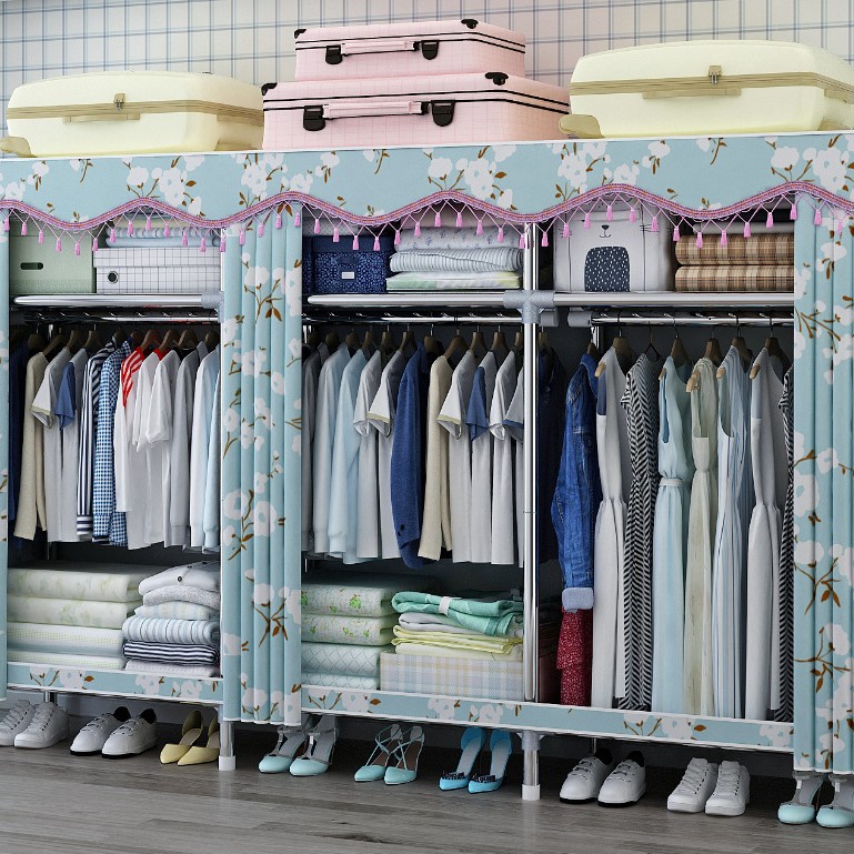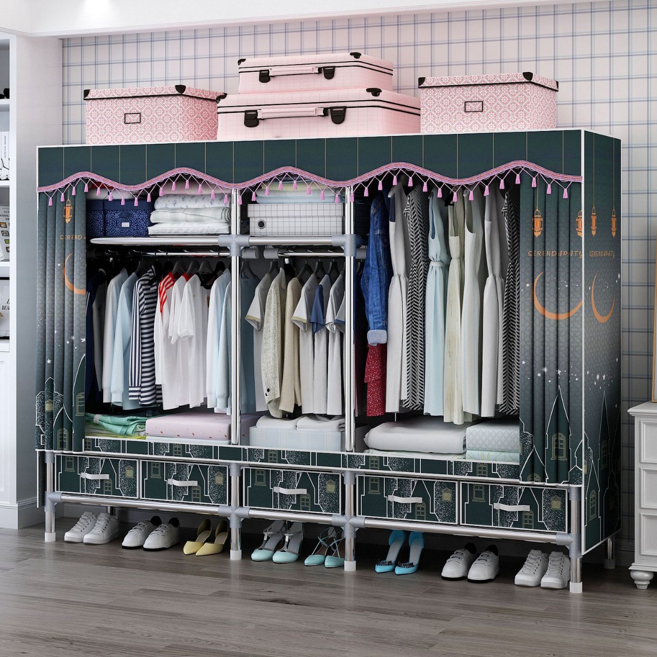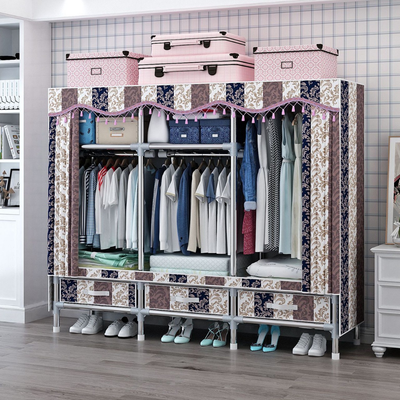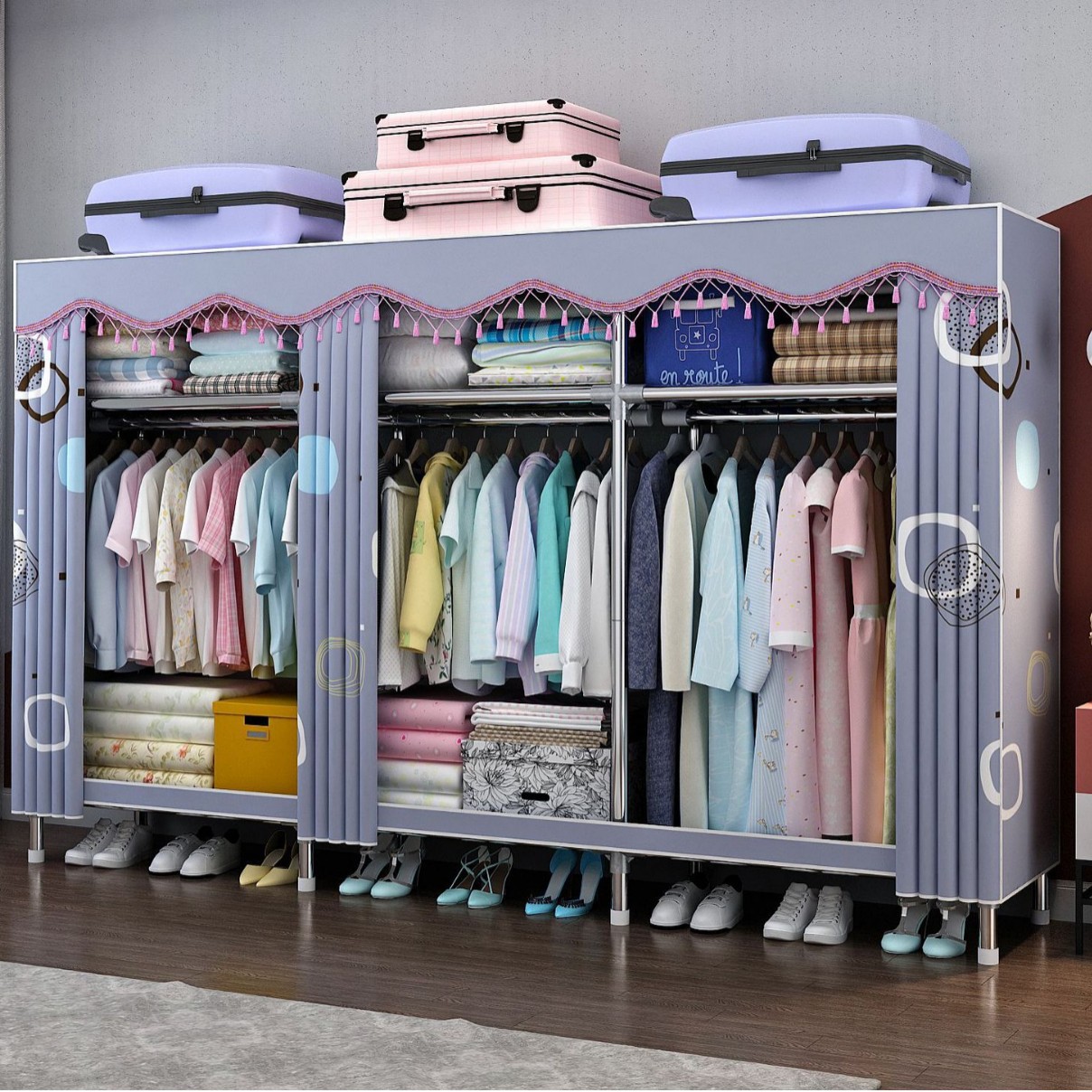 25 파이프 스틸 조인트 옷장 간단한 천 옷장 강철 파이프 두꺼운 강화 전체 강철 프레임 홈 임대 룸 교수형 옷장스토어 가기