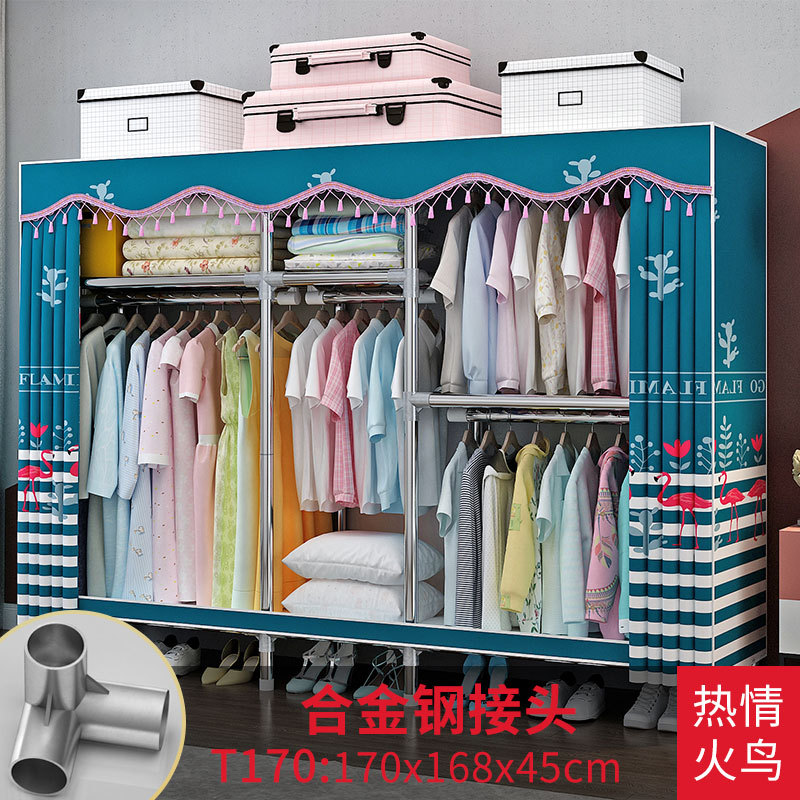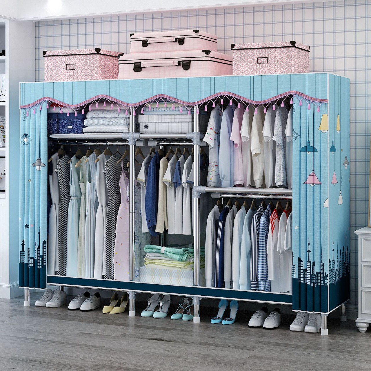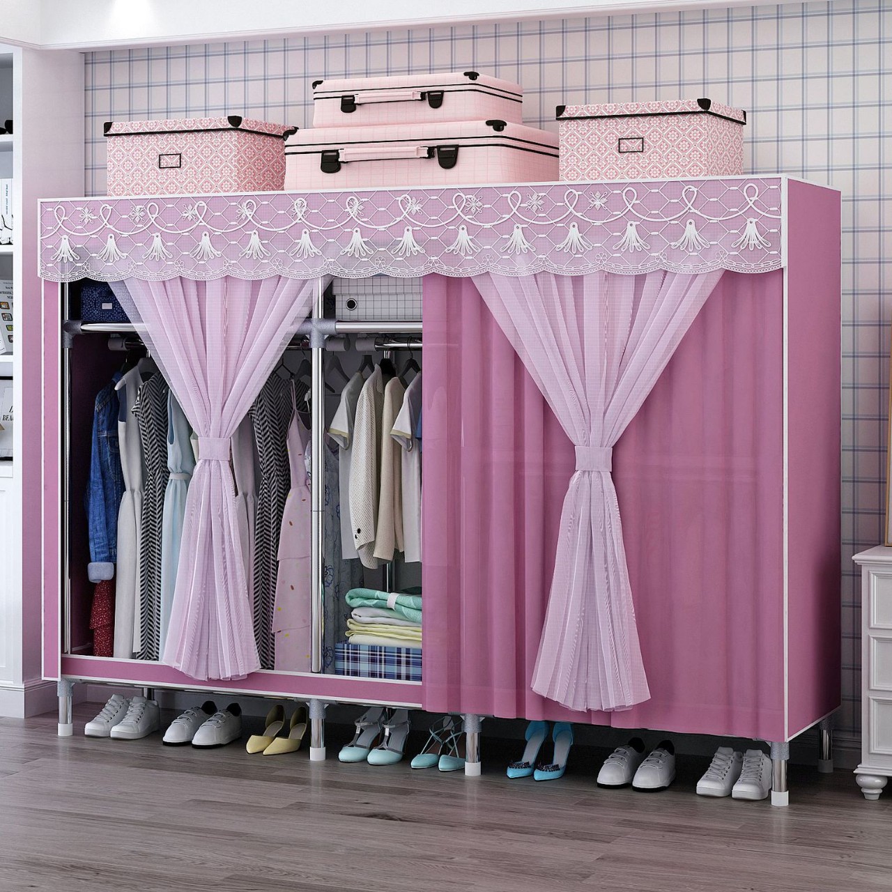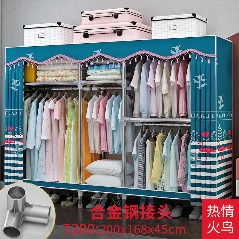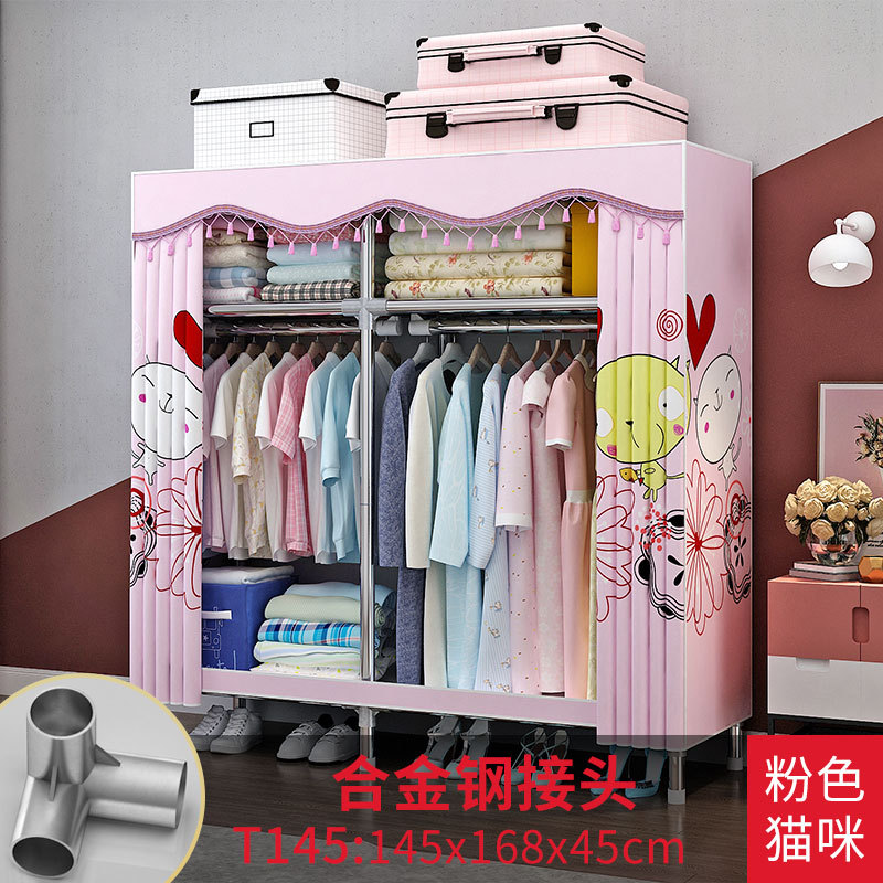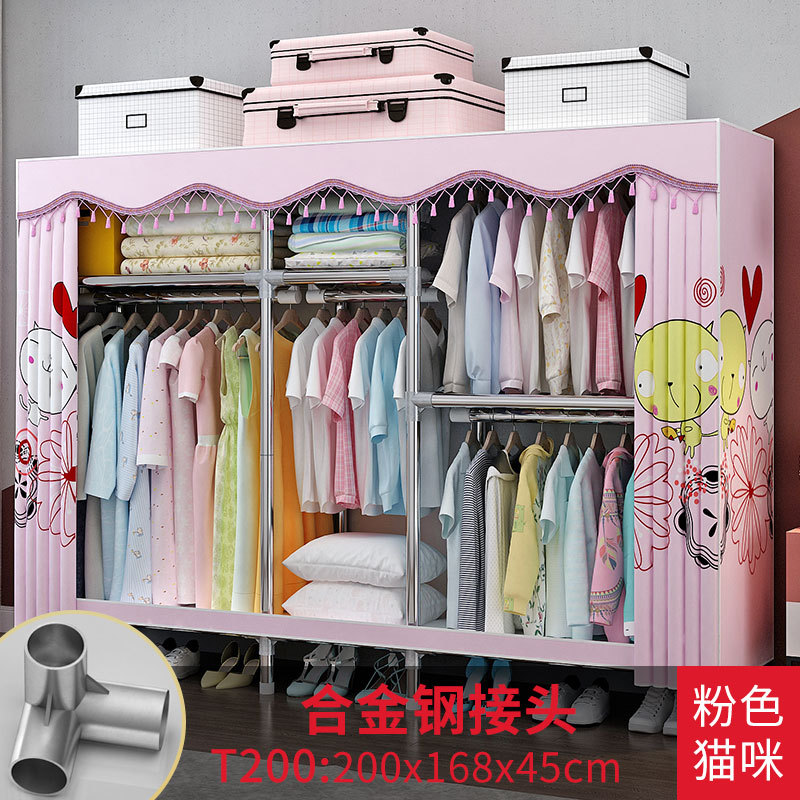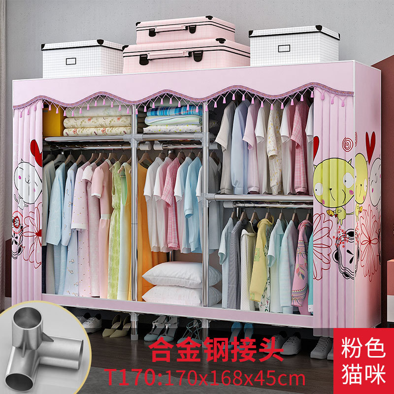 25 파이프 스틸 조인트 옷장 간단한 천 옷장 강철 파이프 두꺼운 강화 전체 강철 프레임 홈 임대 룸 교수형 옷장