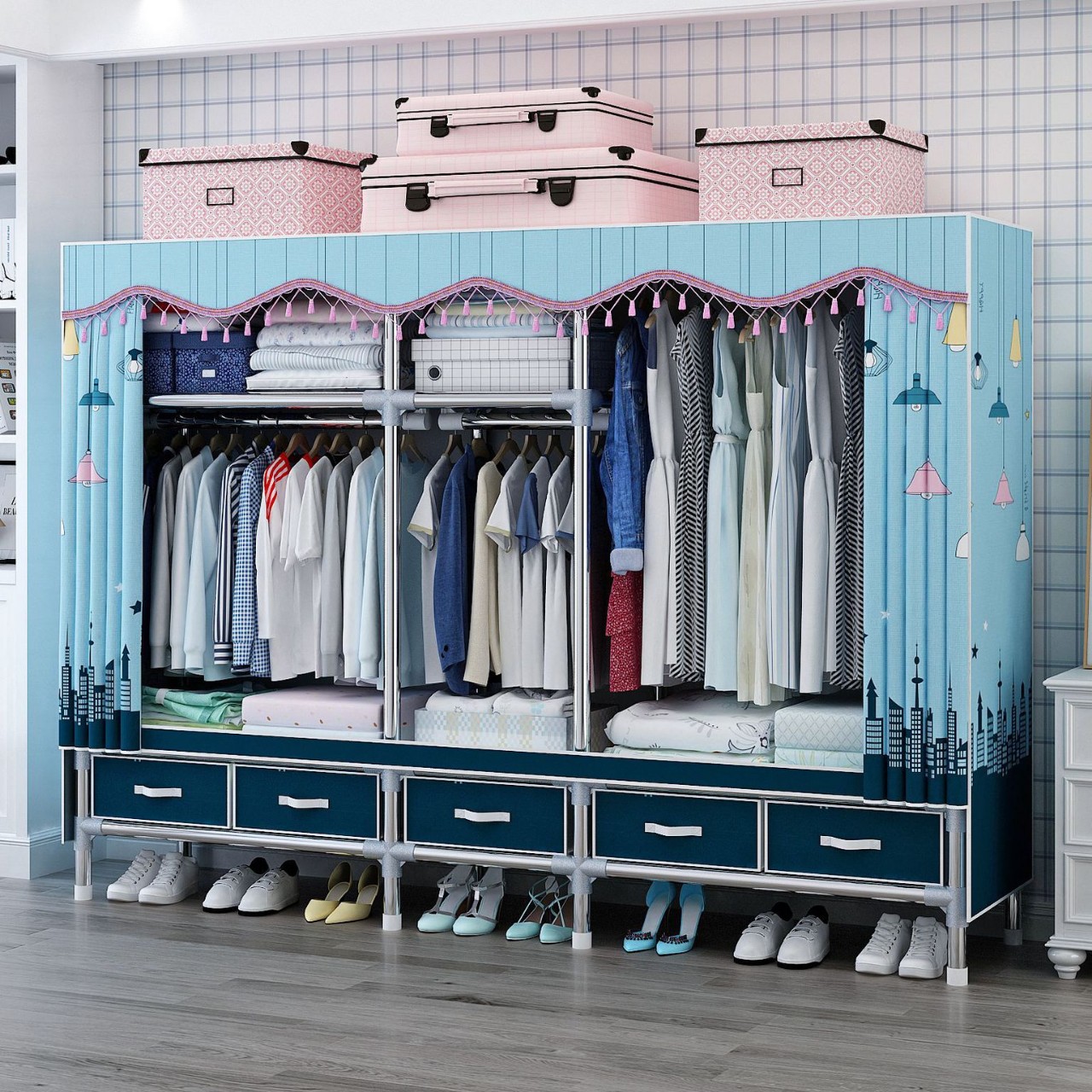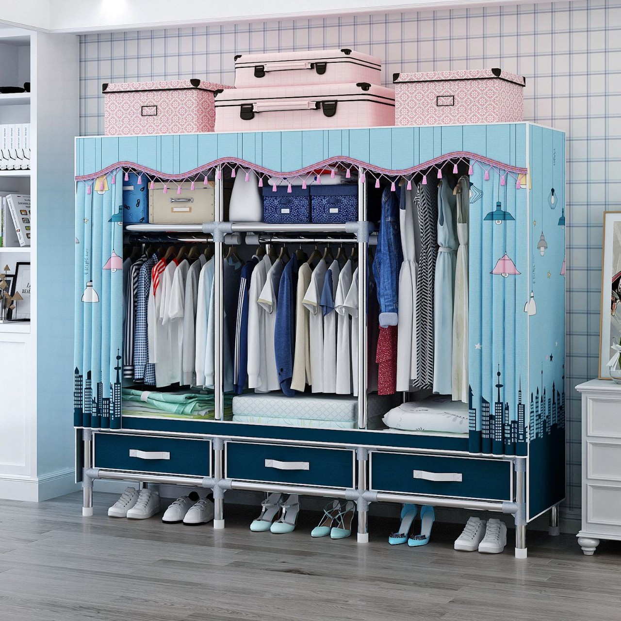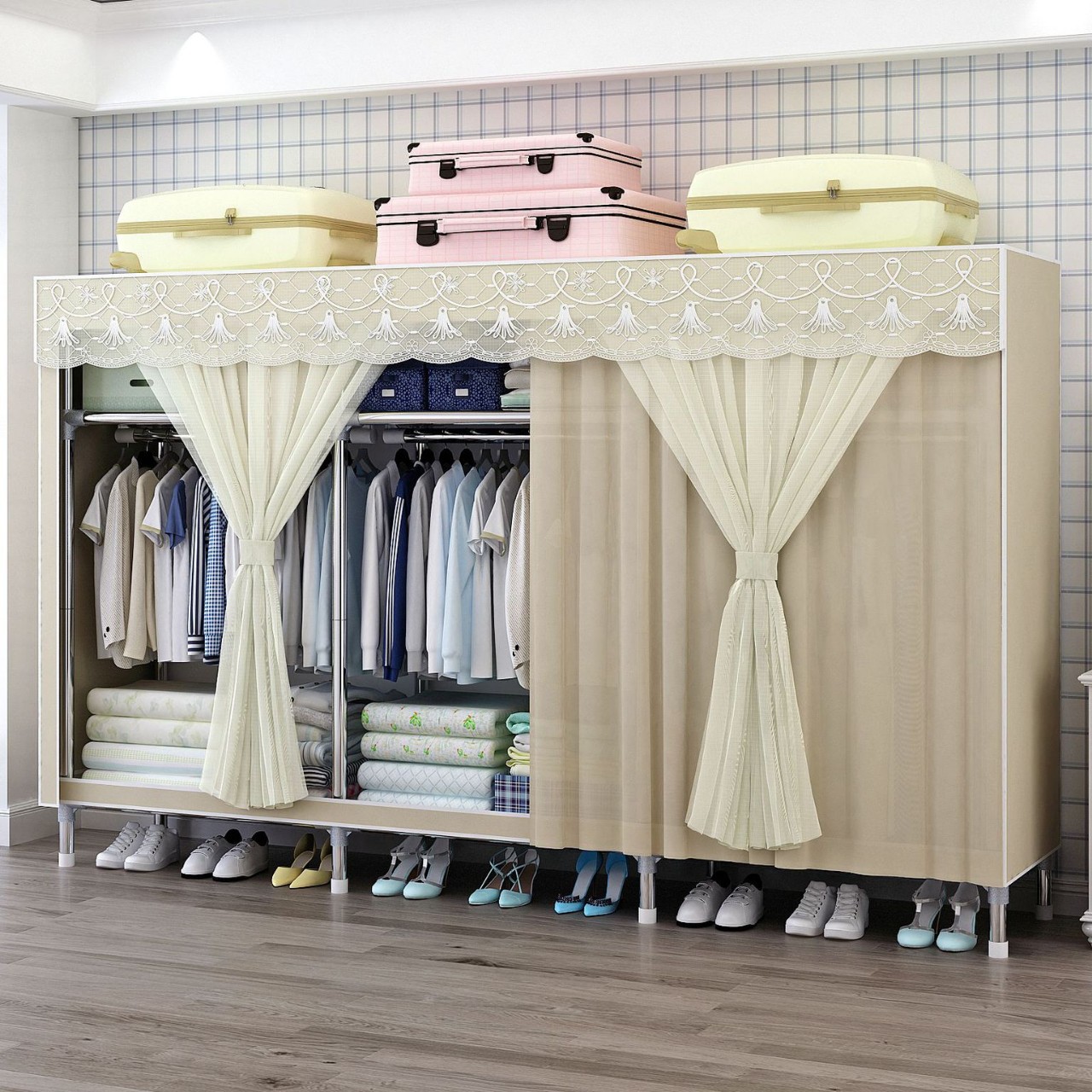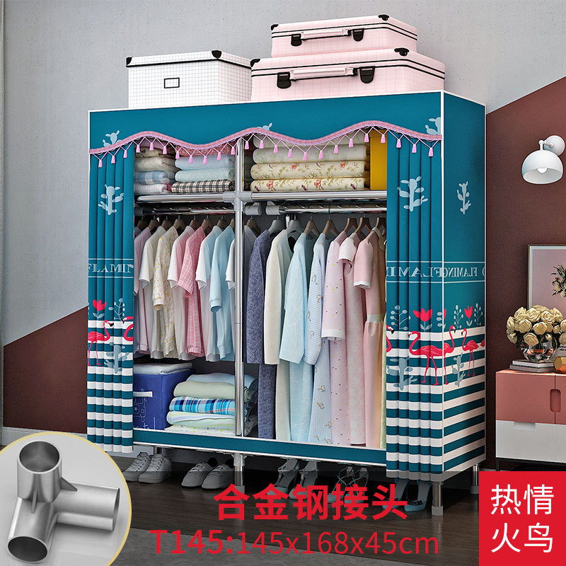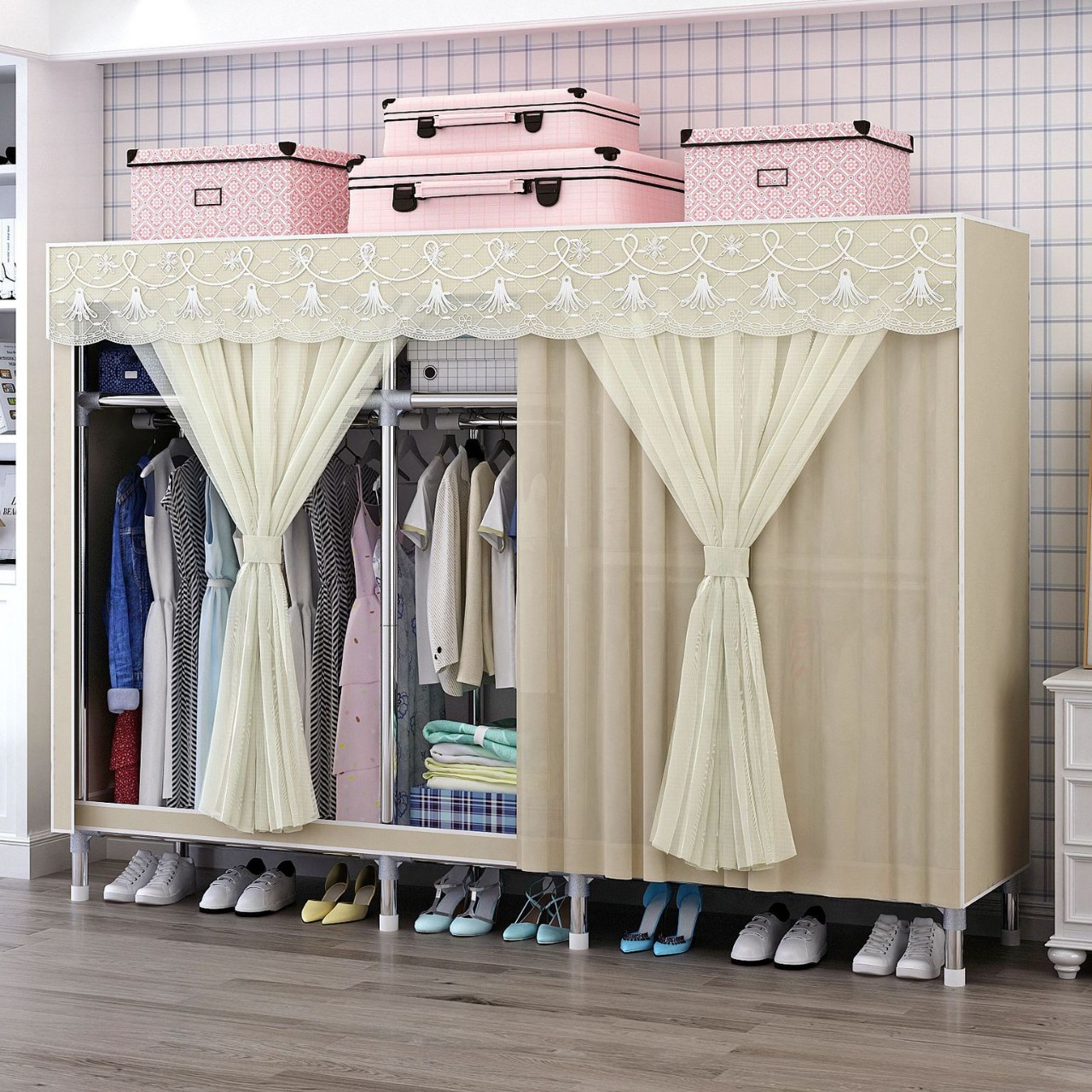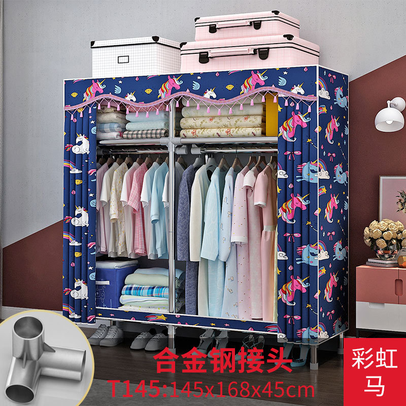25 파이프 스틸 조인트 옷장 간단한 천 옷장 강철 파이프 두꺼운 강화 전체 강철 프레임 홈 임대 룸 교수형 옷장