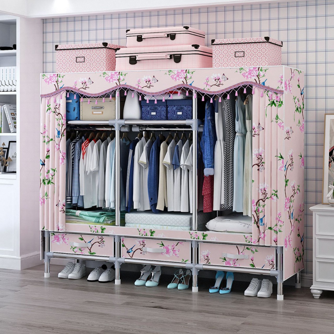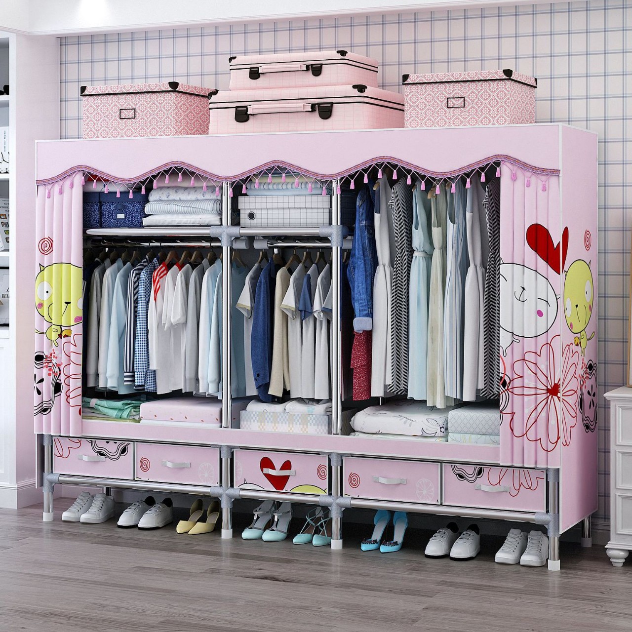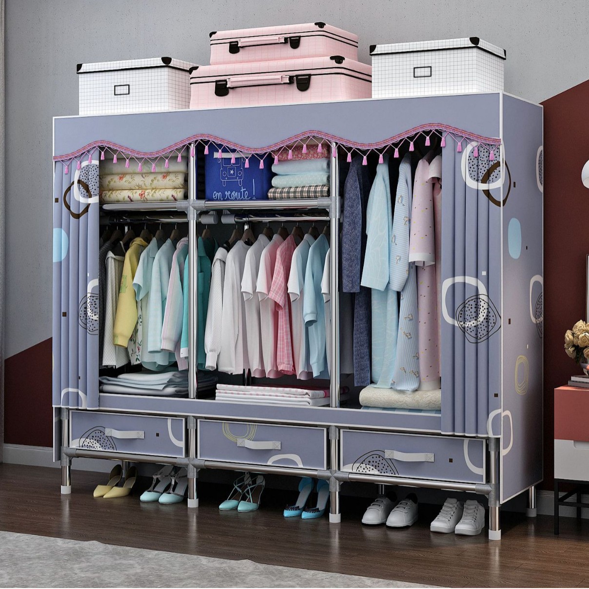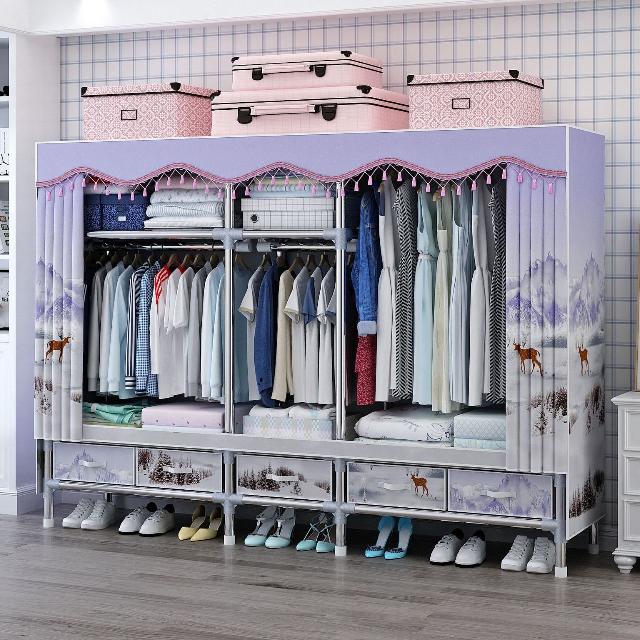 25 파이프 스틸 조인트 옷장 간단한 천 옷장 강철 파이프 두꺼운 강화 전체 강철 프레임 홈 임대 룸 교수형 옷장