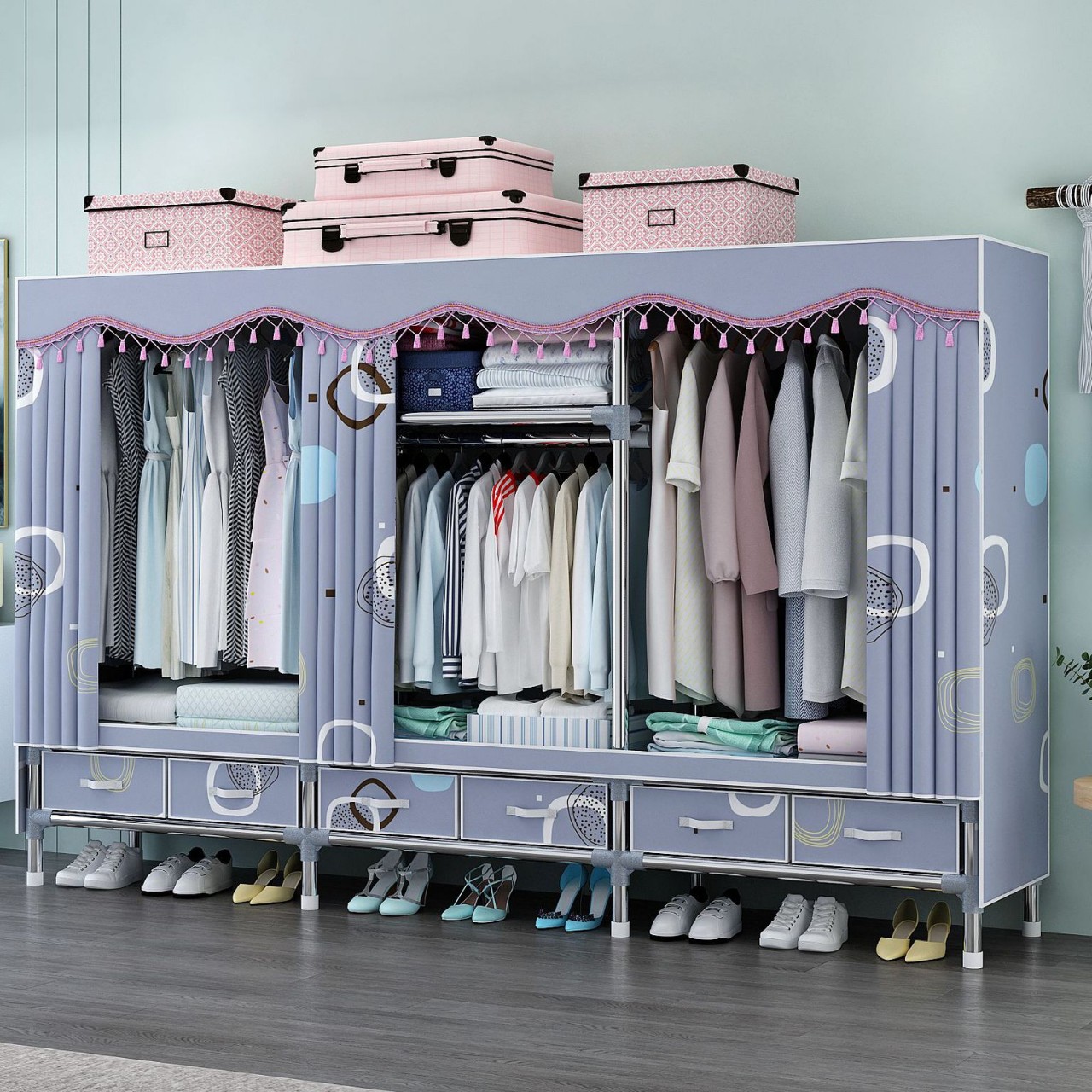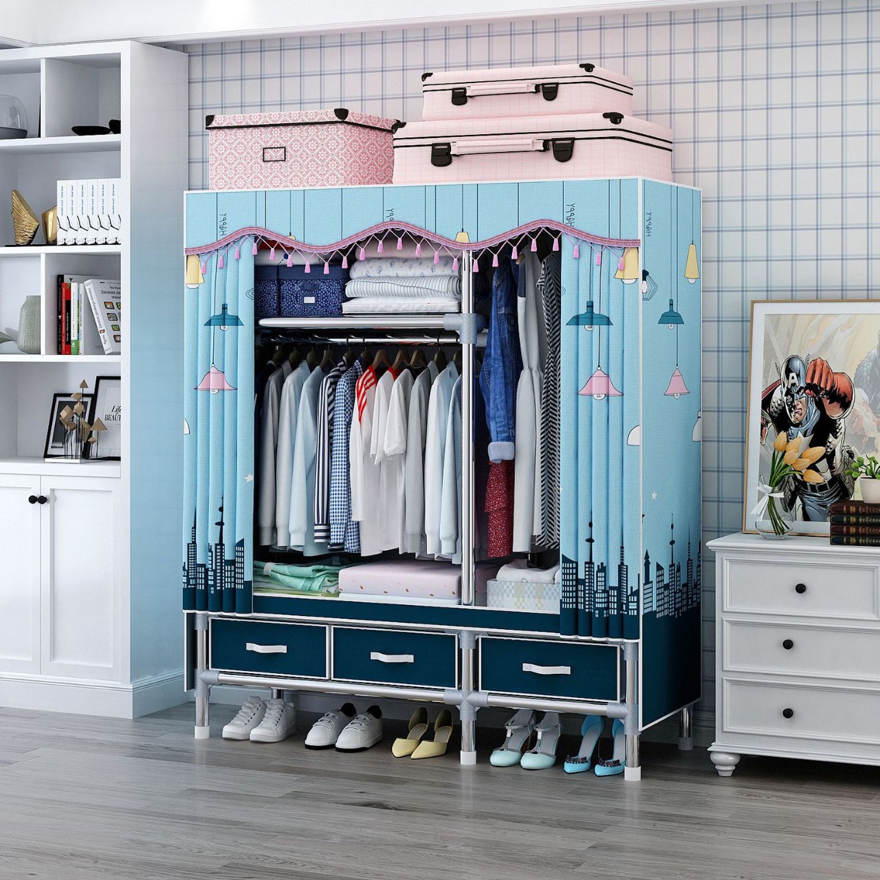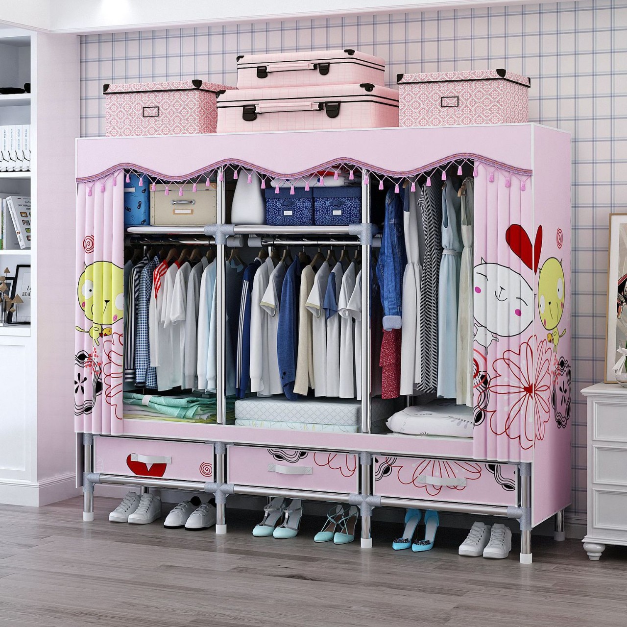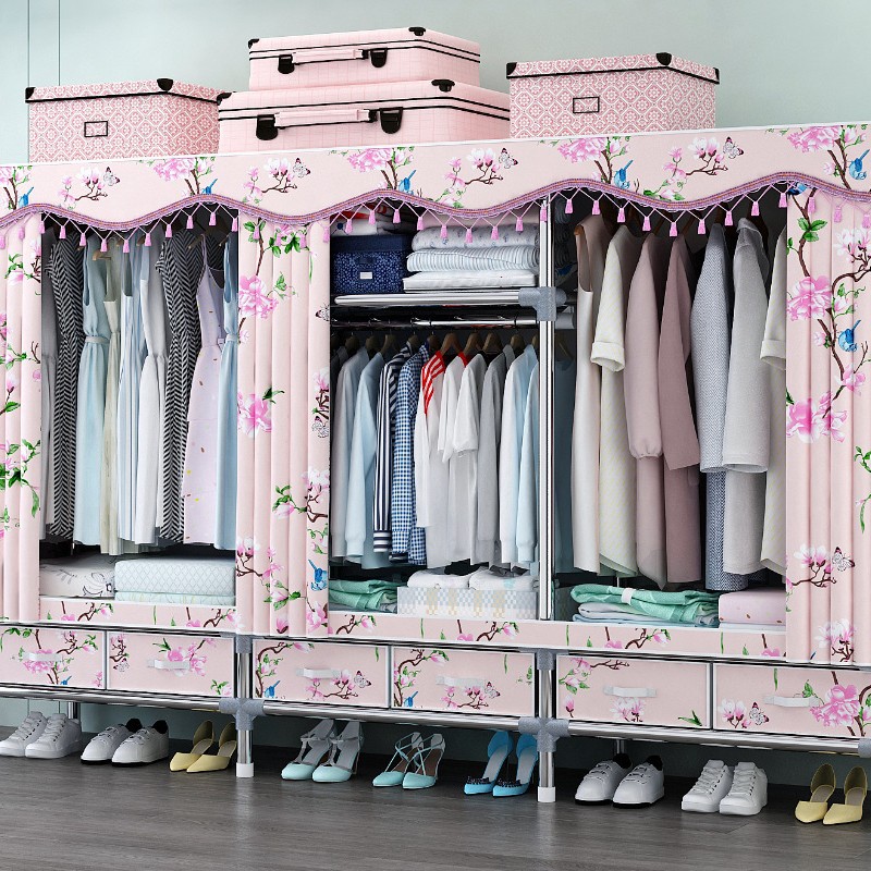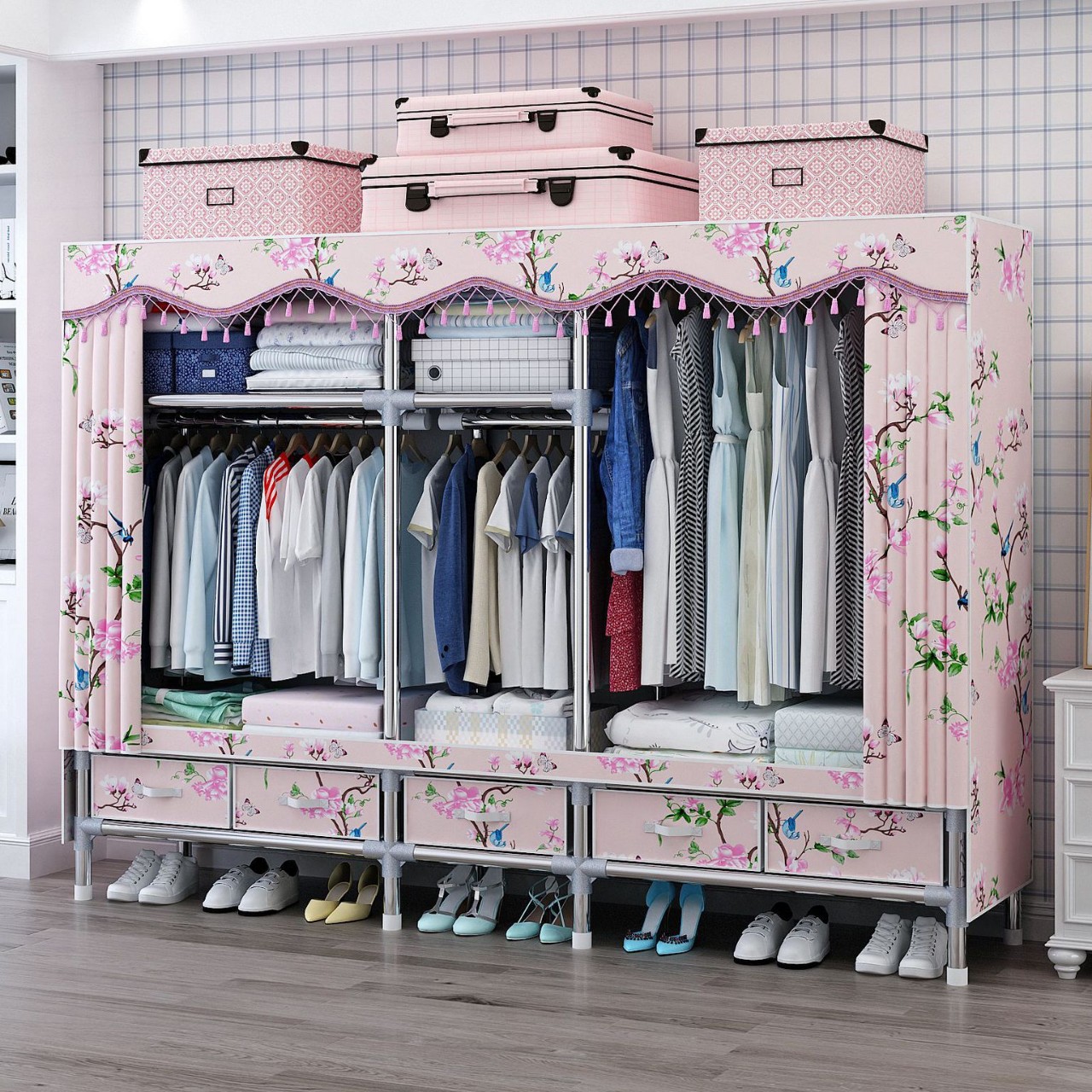 25 파이프 스틸 조인트 옷장 간단한 천 옷장 강철 파이프 두꺼운 강화 전체 강철 프레임 홈 임대 룸 교수형 옷장