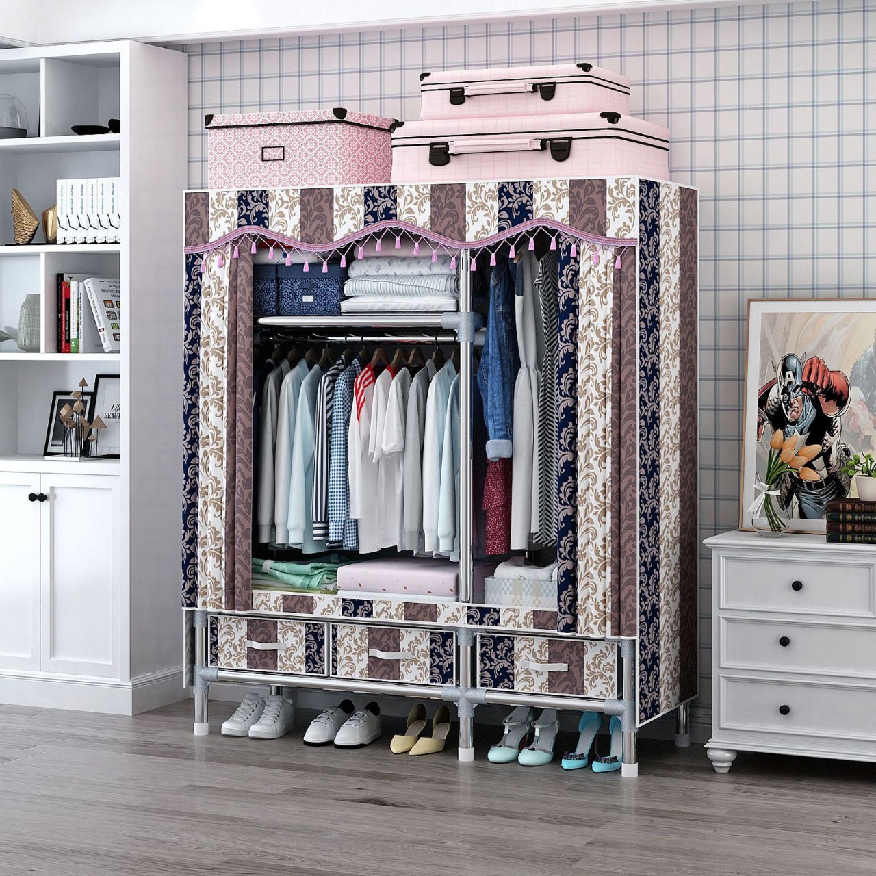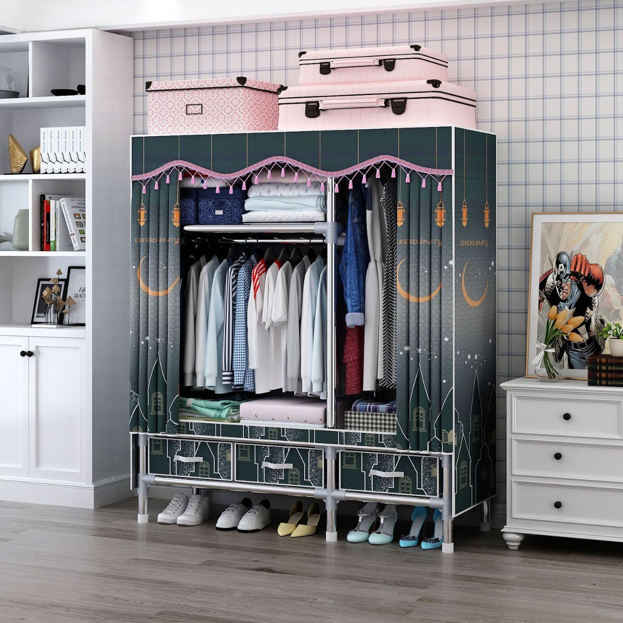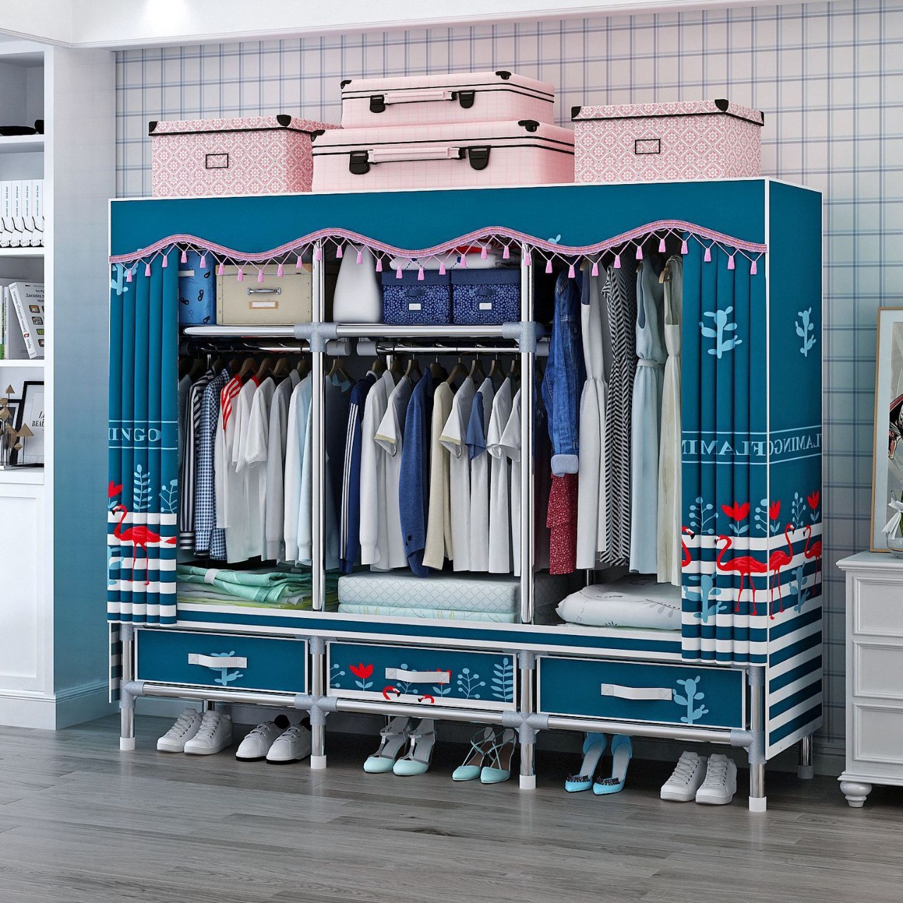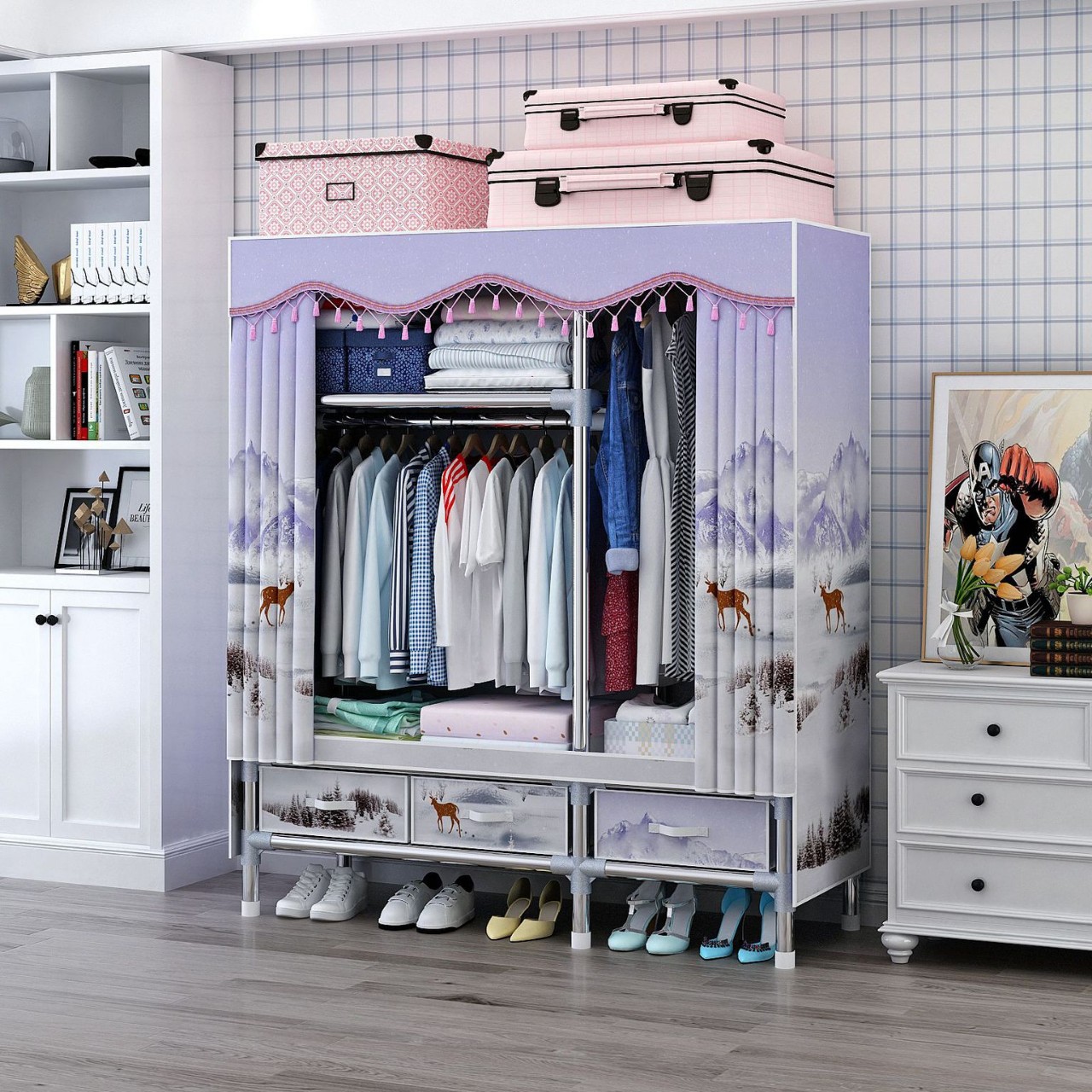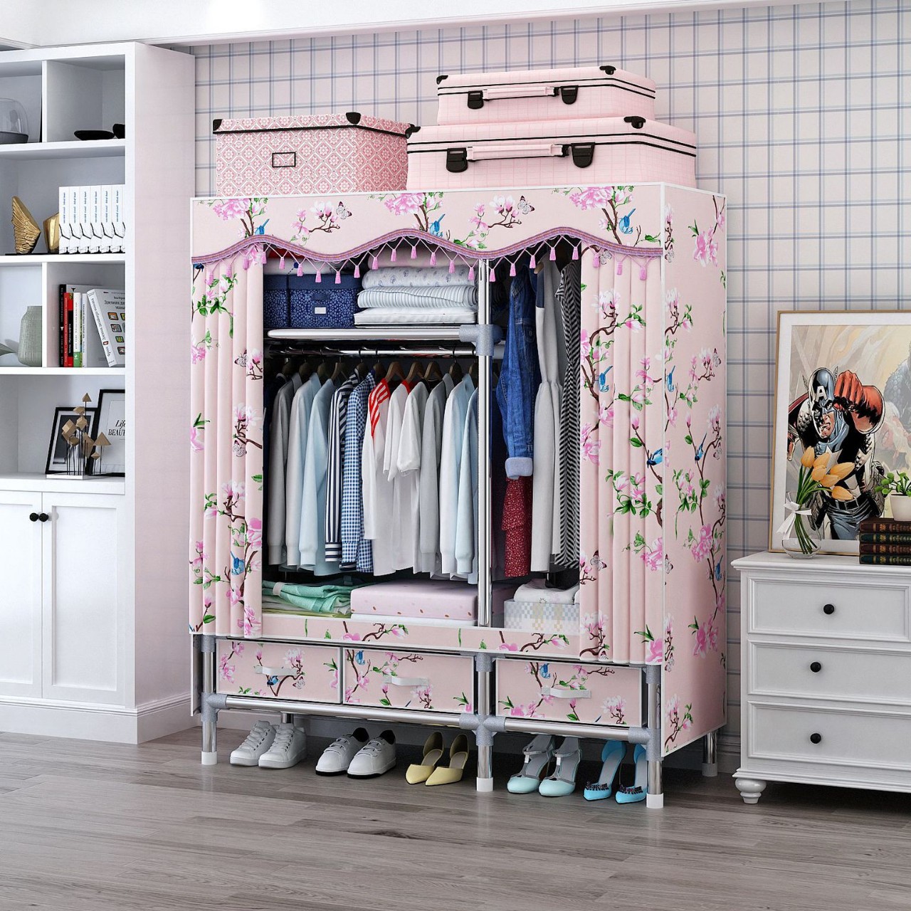 25 파이프 스틸 조인트 옷장 간단한 천 옷장 강철 파이프 두꺼운 강화 전체 강철 프레임 홈 임대 룸 교수형 옷장