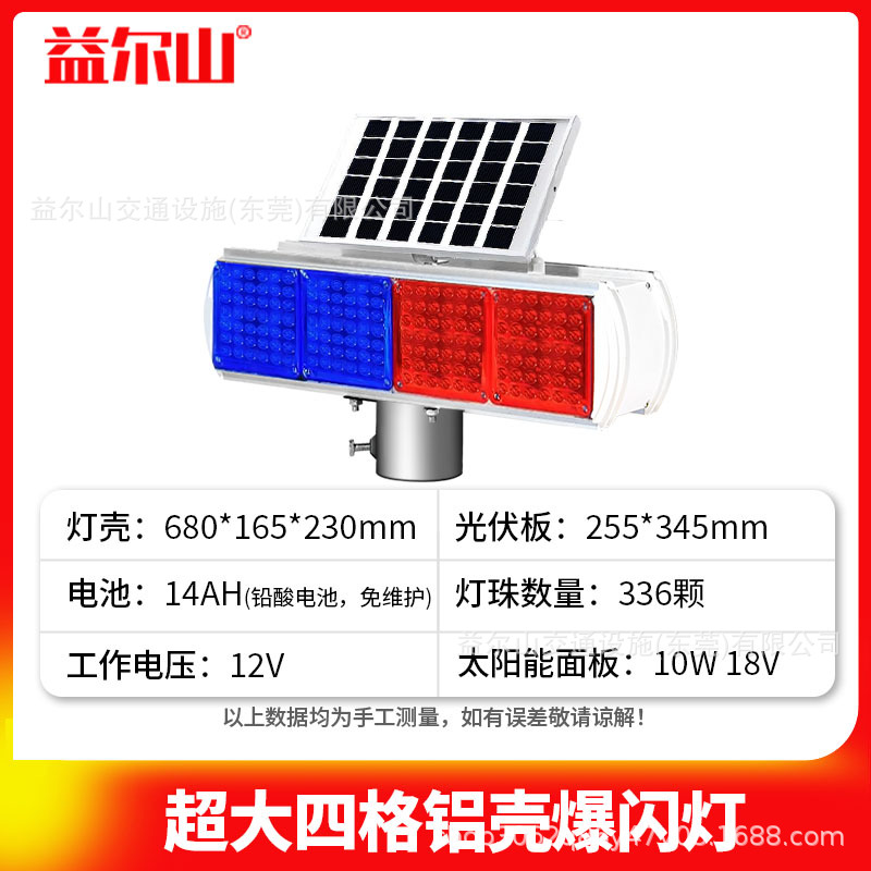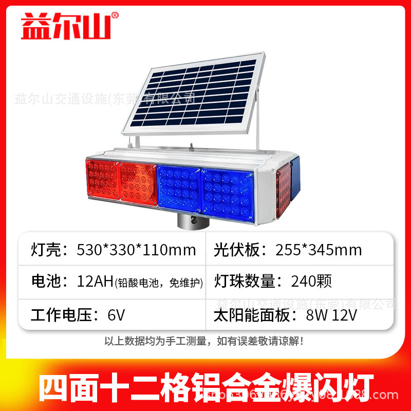 태양 플래시 라이트 교통 안전 경고 일체형 보초 상자 건설 신호 라이트 레드 및 블루 도로 배리어 라이트 알루미늄 쉘