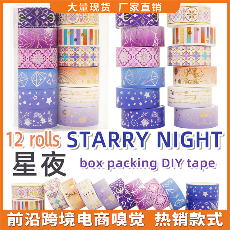 크로스보더 스티커 별빛 금박 와시 테이프 별밤 우주 DIY 장식 수첩 테이프 수출 공급스토어 가기