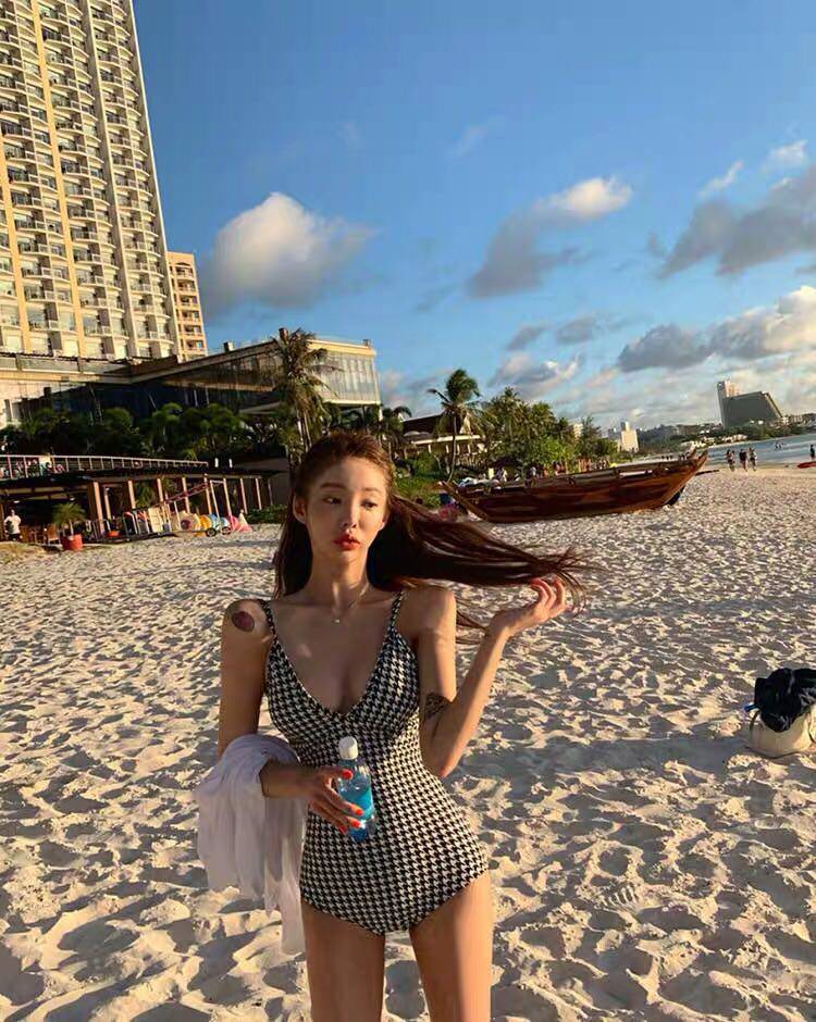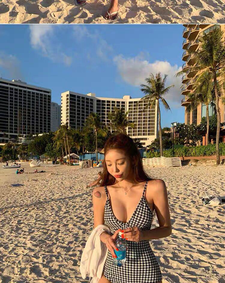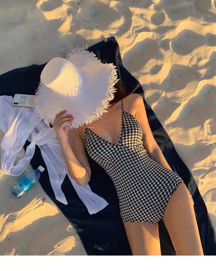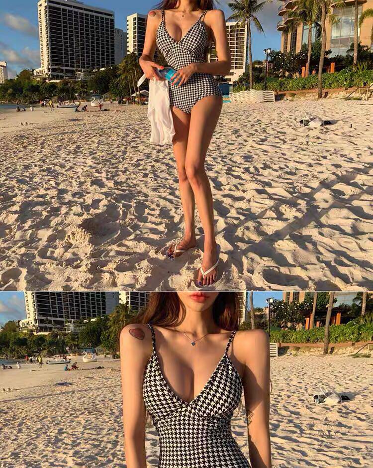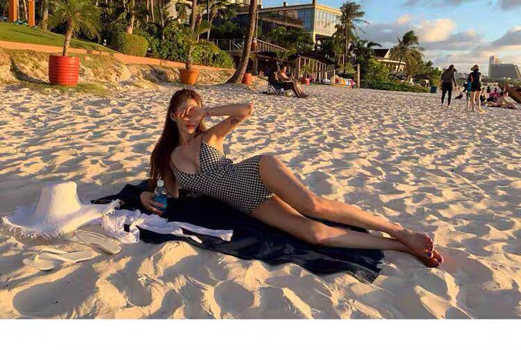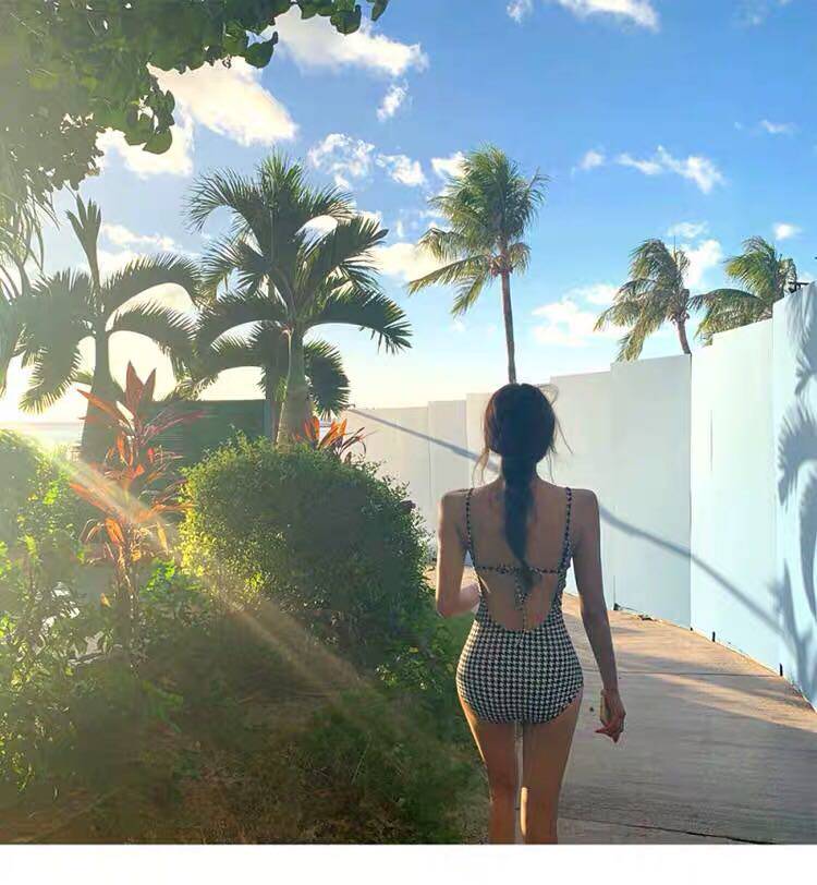 Qianjiao 격자 여름 새로운 온천 수영복 여자의 여행 고기 덮여 한국 슈퍼 요정 스타일 요정 팬스토어 가기