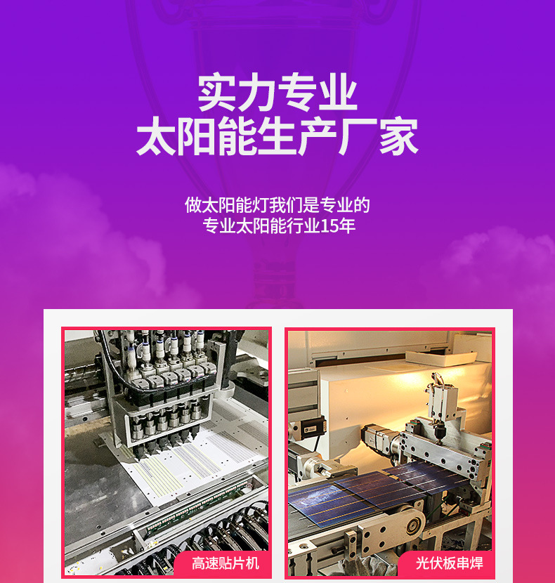 本工厂专业生产太阳能路灯、LED投光灯、太阳能庭院灯、LED路灯等户外照明产品;支持市电&太阳能双供模式路灯定制;