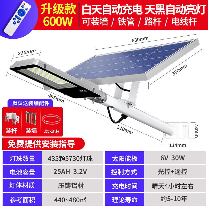 태양 가로등 새로운 시골 6 미터 야외 정원 빛 지능형 조명 제어 인체 유도 도로 조명 제조 업체스토어 가기