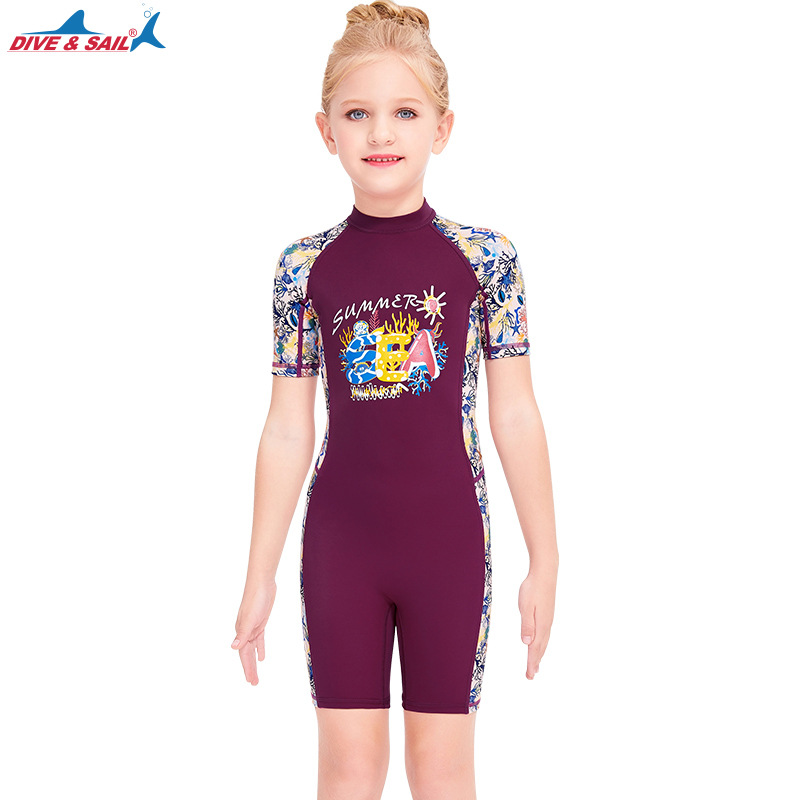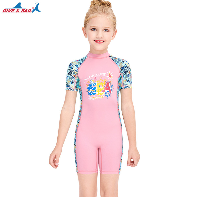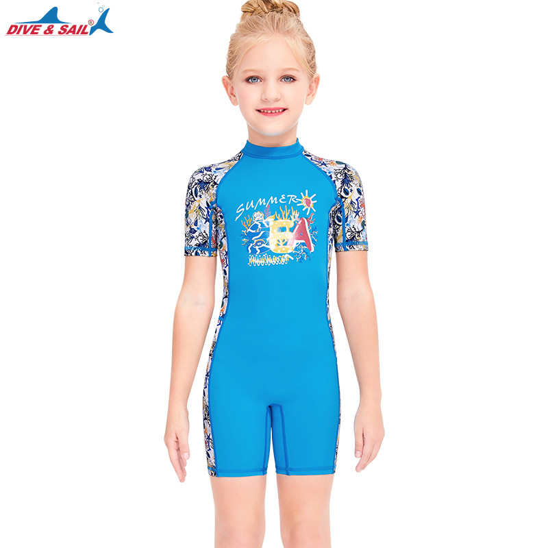 DIVE & SAIL 어린이 수영복 여아 자외선 차단제 비치 다이빙 세트 원피스 반팔 어린이 속건 해파리 세트스토어 가기