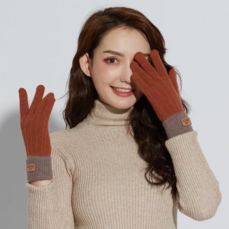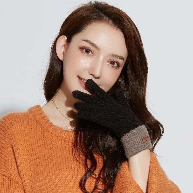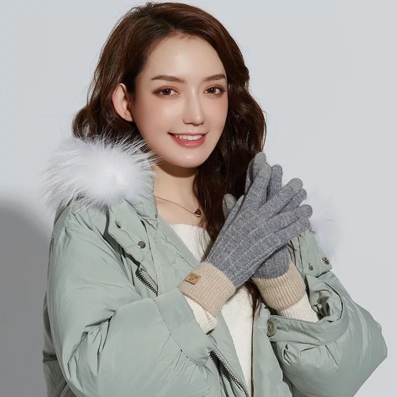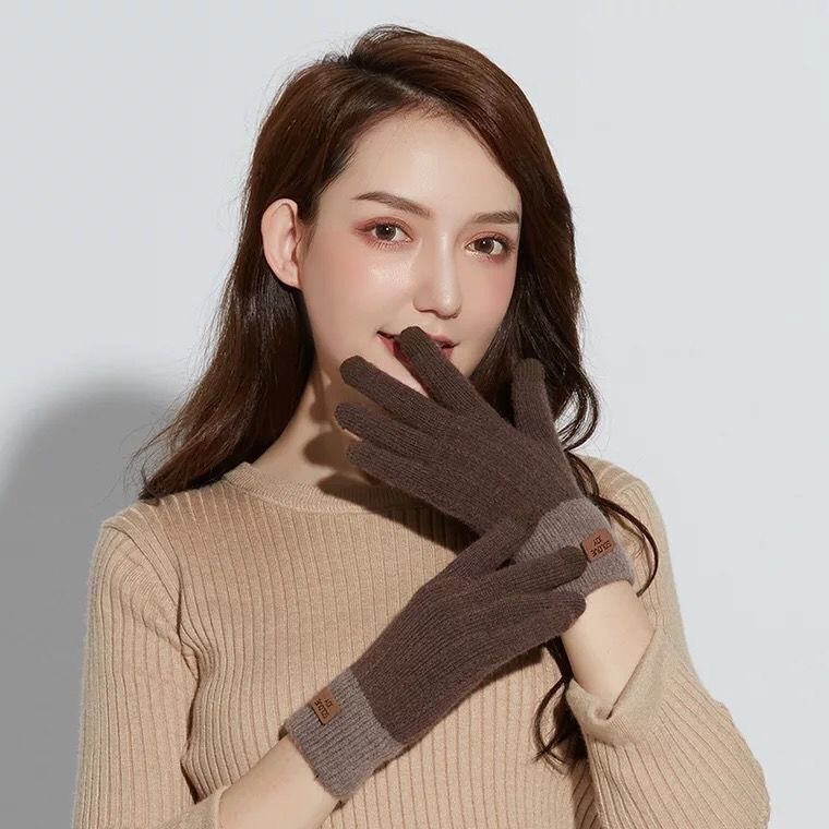 니트 터치스크린 장갑 여성용 가을 겨울용 플러스 벨벳 두꺼운 야외 라이딩 방한 울 장갑 크로스보더스토어 가기