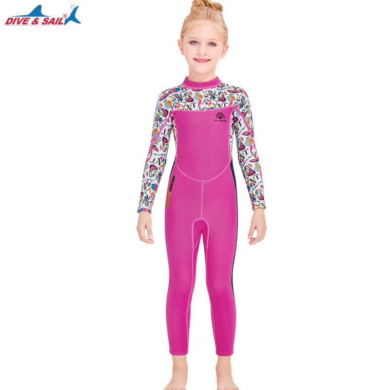 새로운 2.5mm 어린이 따뜻한 다이빙 세트 원피스 두꺼운 수영복 긴팔 어린이 스노클링 서핑 수영복스토어 가기