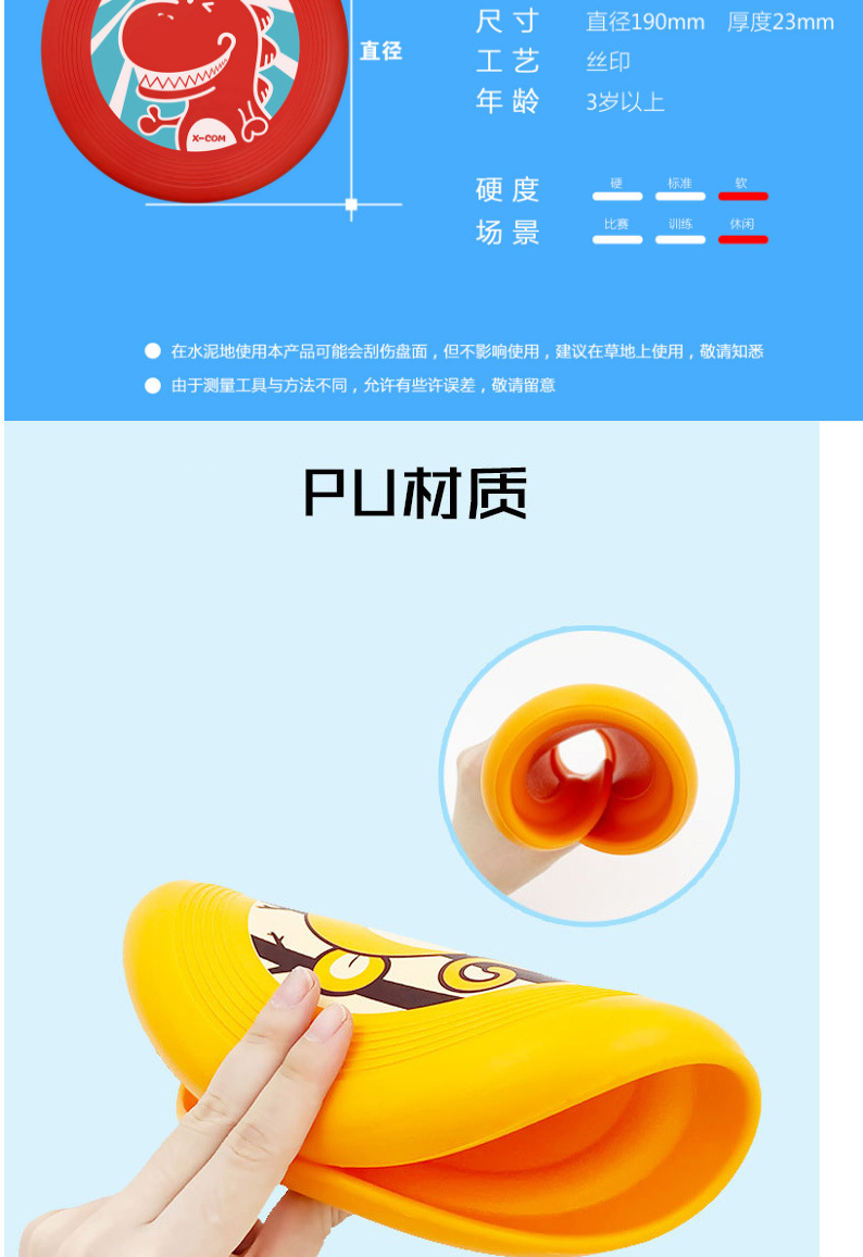 아이크 어린이용 PU 소프트 프리스비 유치원 전문 손 던지기 장난감 애완동물 프리스비 부모-자녀 스포츠 야광 디자인