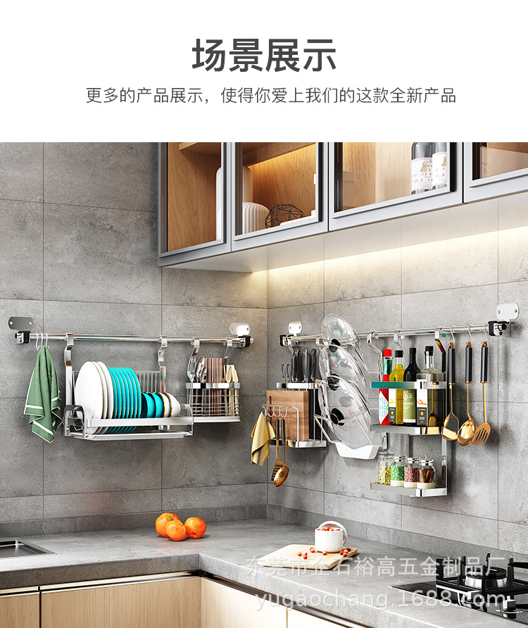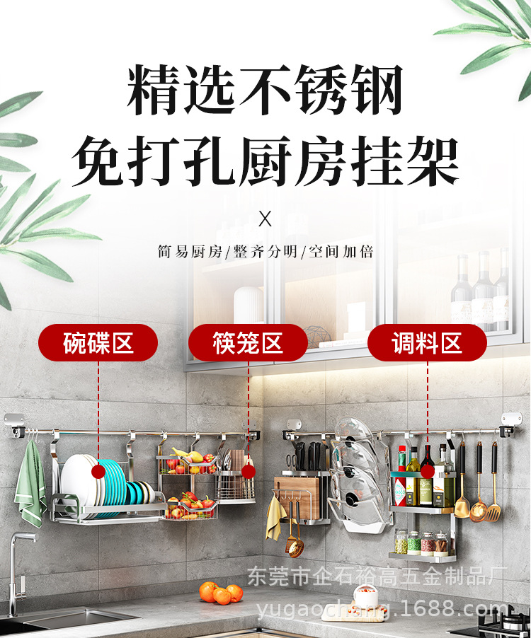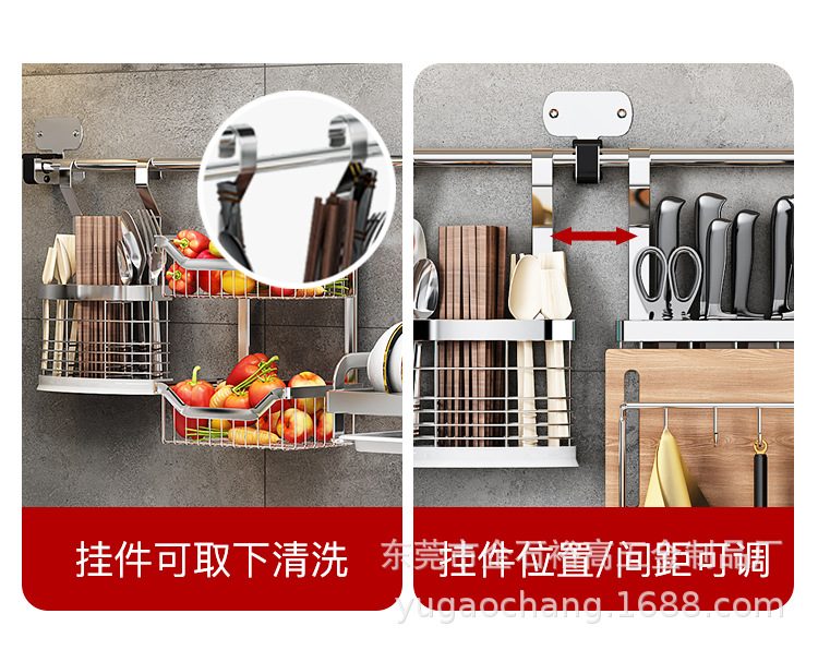 벽걸이 형 주방 수납 랙 스테인레스 스틸 펜던트 펀치 프리 나이프 홀더 젓가락 홀더 냄비 홀더 배수 접시 랙 보관 랙스토어 가기