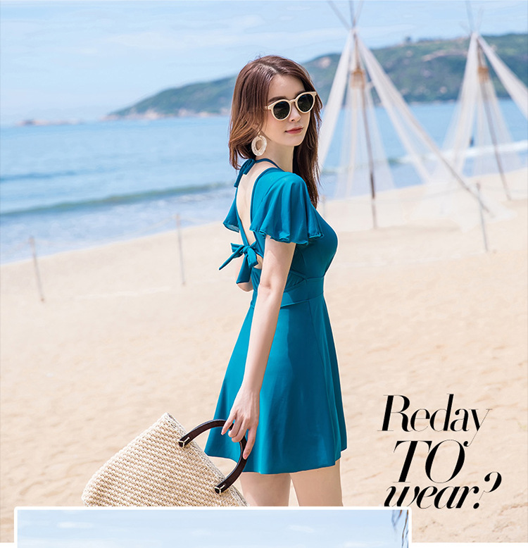 Sanqi 원피스 수영복 여성용 온천 보수적 인 블랙 원피스 수영복 등이없는 배꼽 덮음 슬리밍 수집 수영복 여성