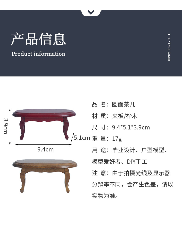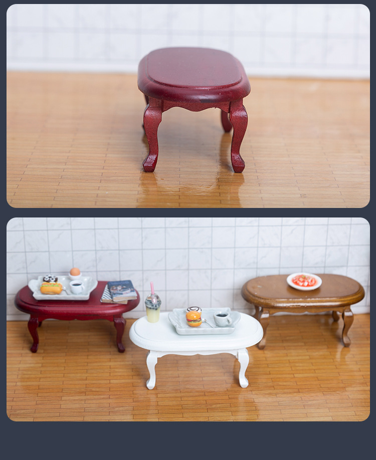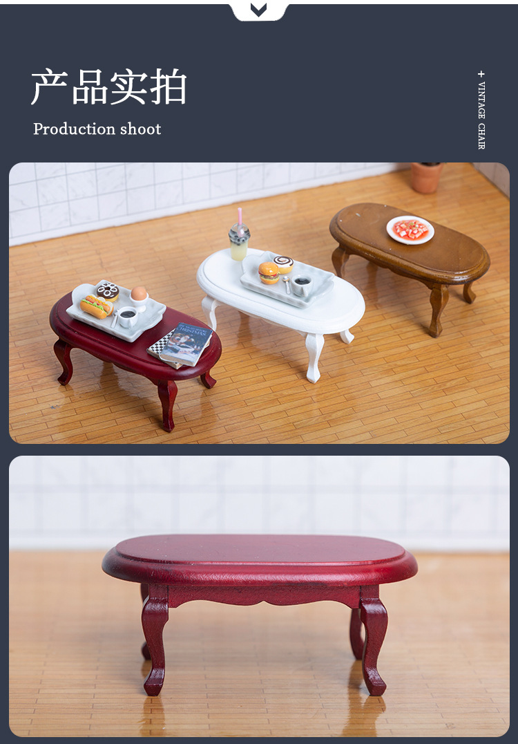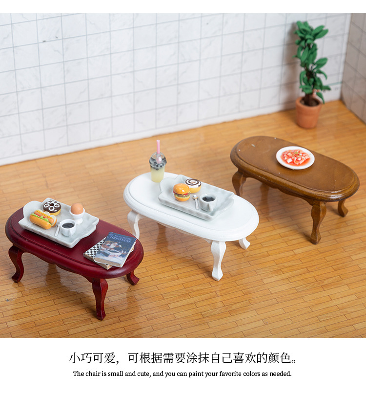 1:12 인형 집 액세서리 빌라 DIY 미니어처 플레이 하우스 미니 가구 모델 타원형 커피 테이블 유럽 복고풍스토어 가기