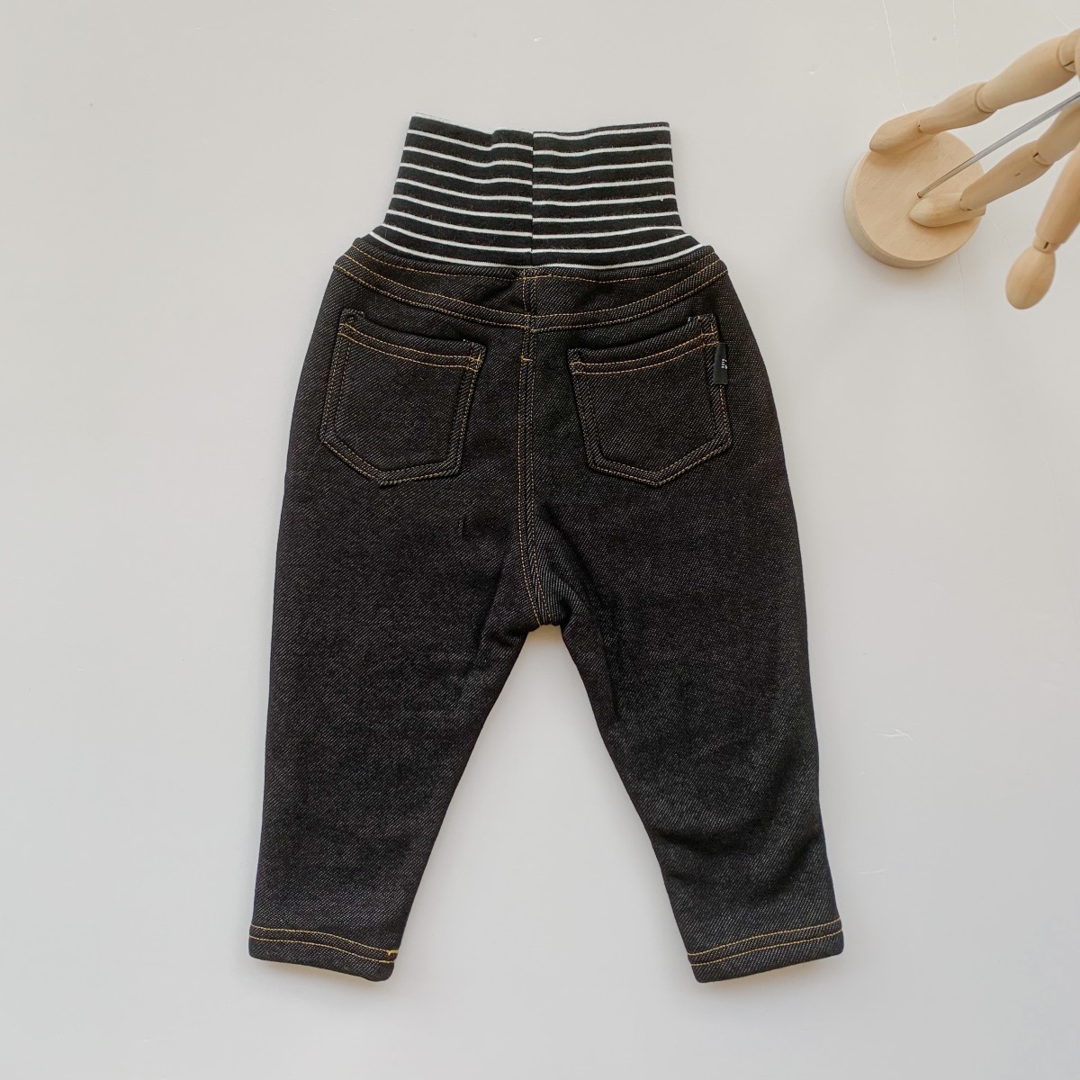 如果冬款还没买加绒的裤子,我建议入这个。 针织牛仔不倒绒面料本身是不需要水洗的, 但是这款我做了柔顺水洗。 手感软的不要不要滴。 护肚部分用的是QUAN棉拉架磨毛面料。 弹力适中而且还很服帖。 护肚裤可以护住宝宝的肚子不会受凉哦。