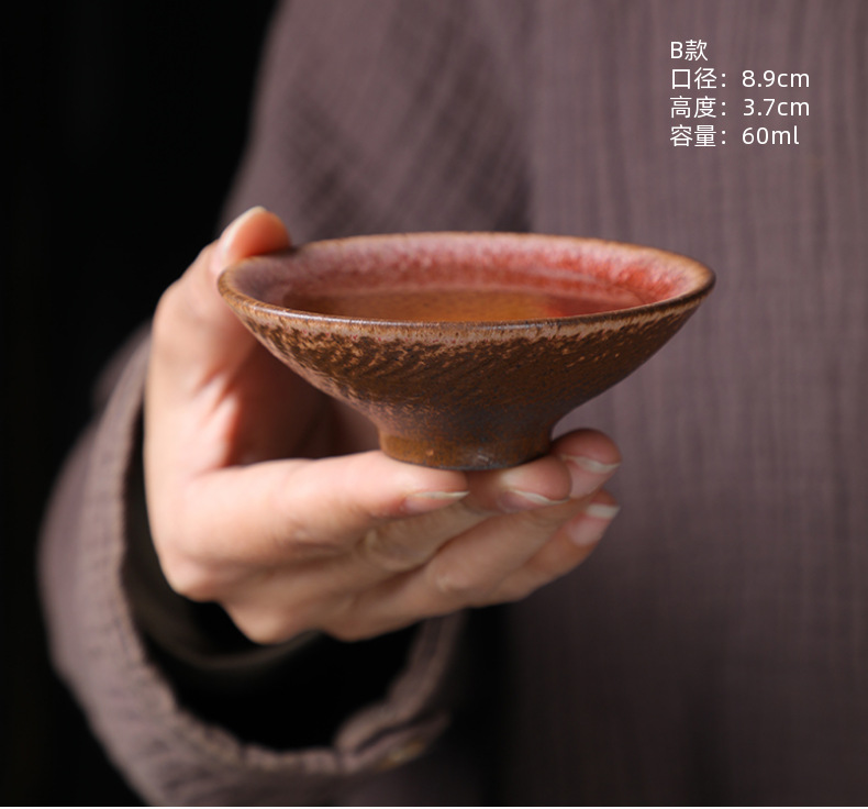 • H 고대 점토 찻잔 75ml-가마가 빨간색으로 변합니다.
