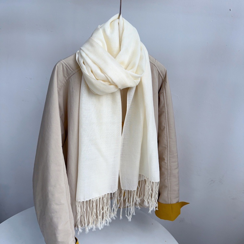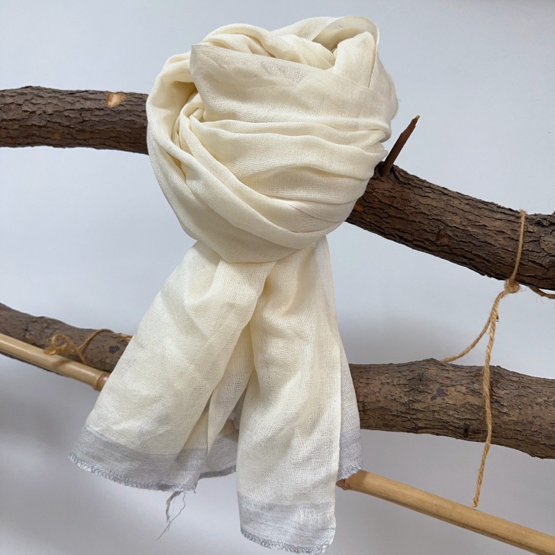퓨어 화이트 80 울 스카프 수동 식물 염색 화이트 스카프 여성 가을과 겨울 따뜻한 스카프 도매스토어 가기