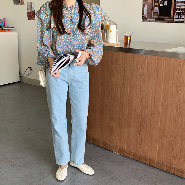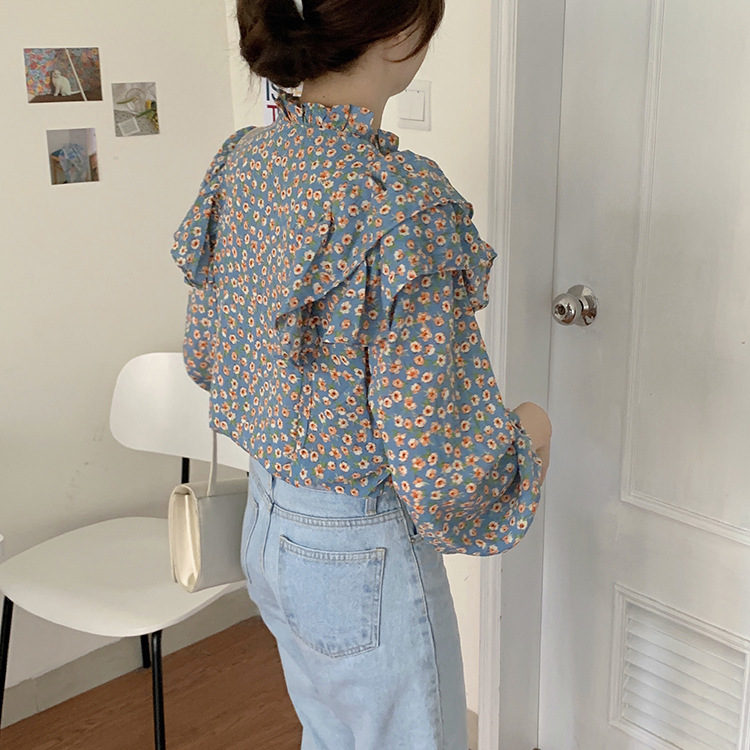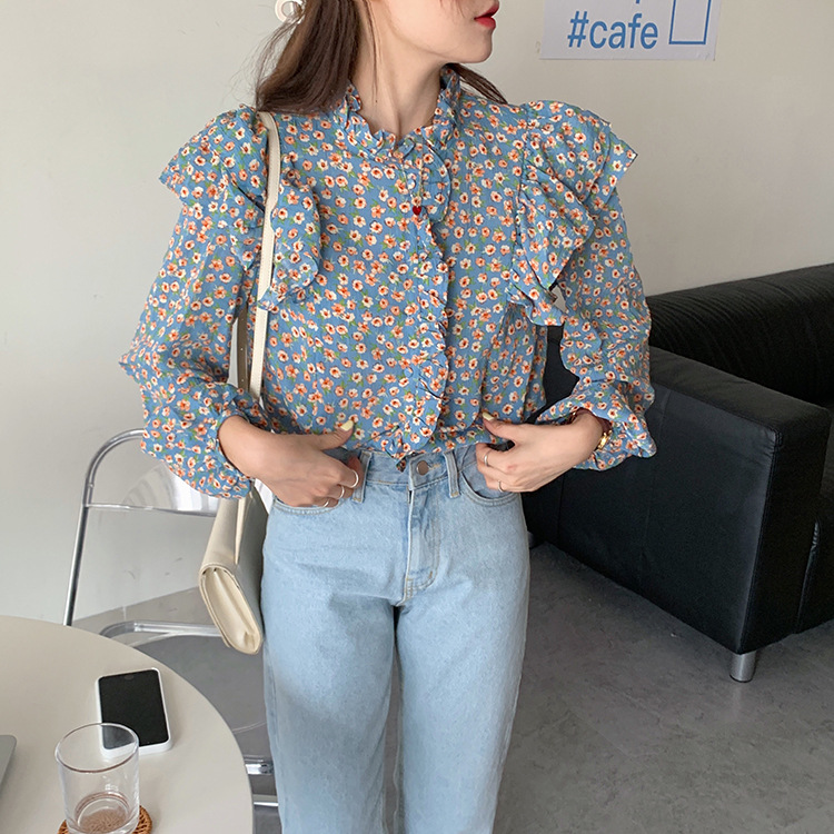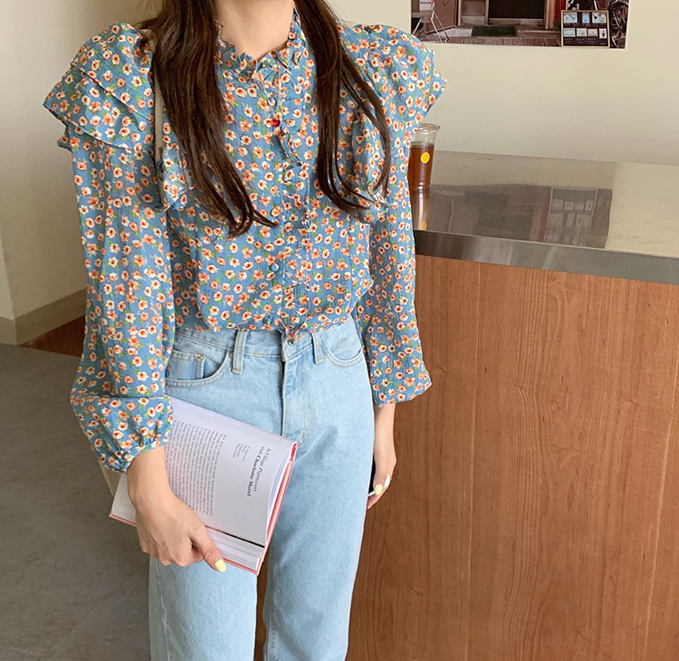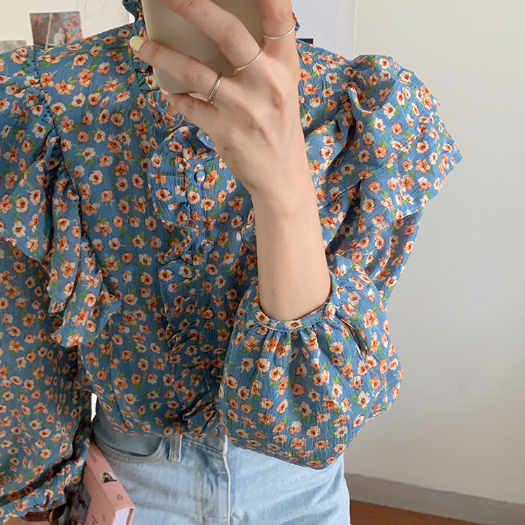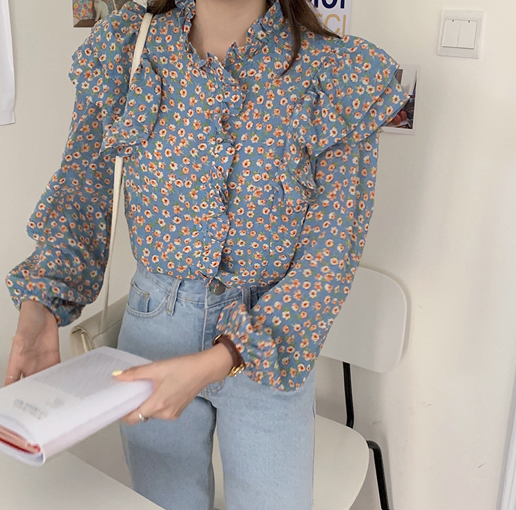 한국 chic2023 가을과 겨울 새로운 스타일 빈티지 빛 성숙한 꽃 탑 긴 소매 쉬폰 셔츠 여성용 셔츠스토어 가기
