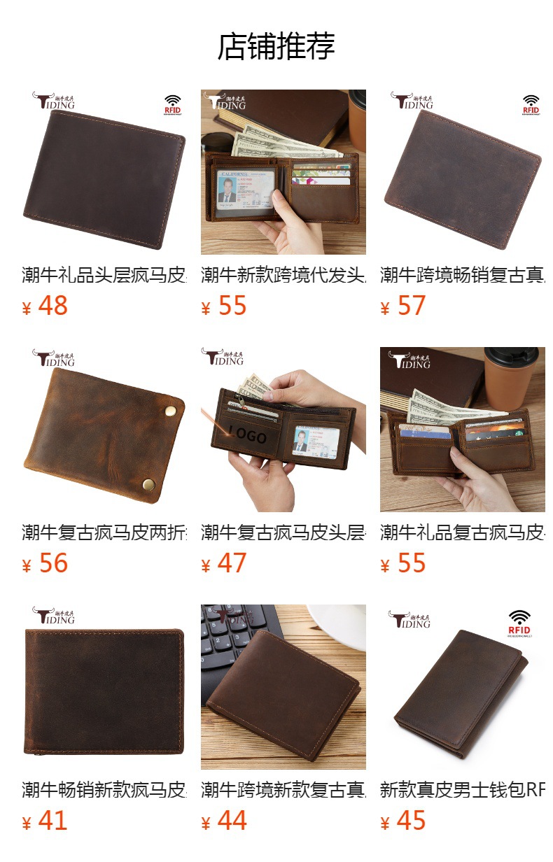 정품 가죽 지갑 느슨한 잎 헤드 레이어와 남자의 비즈니스 짧은 스타일 소가죽 지갑 유행 간단한 지갑 블랙 9307스토어 가기